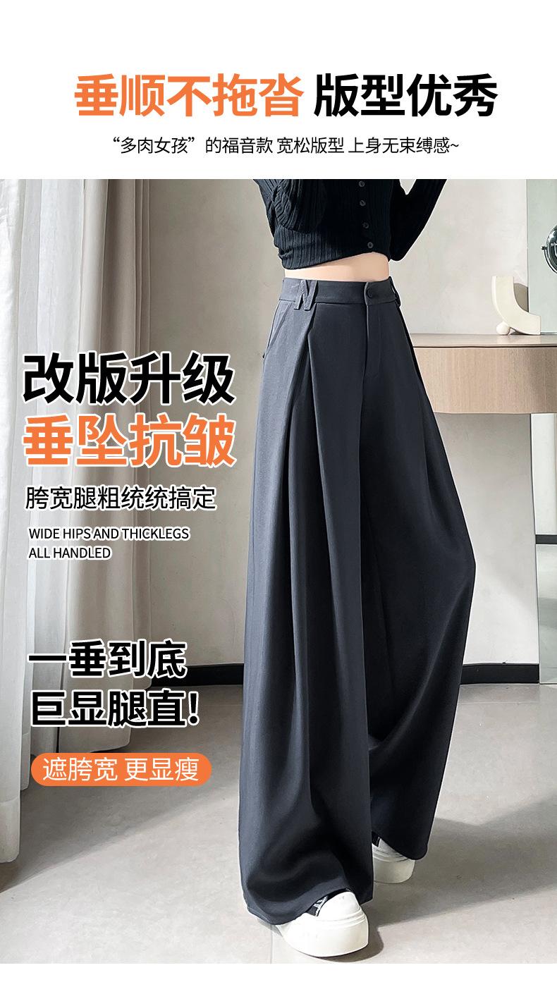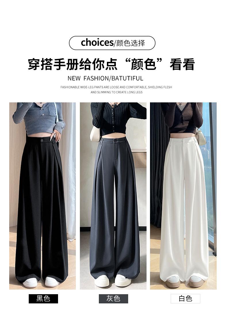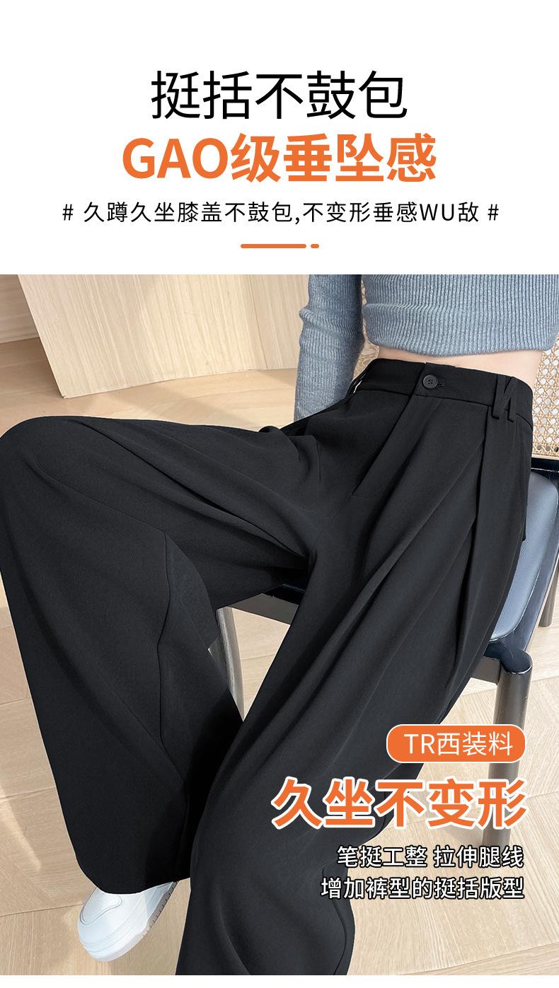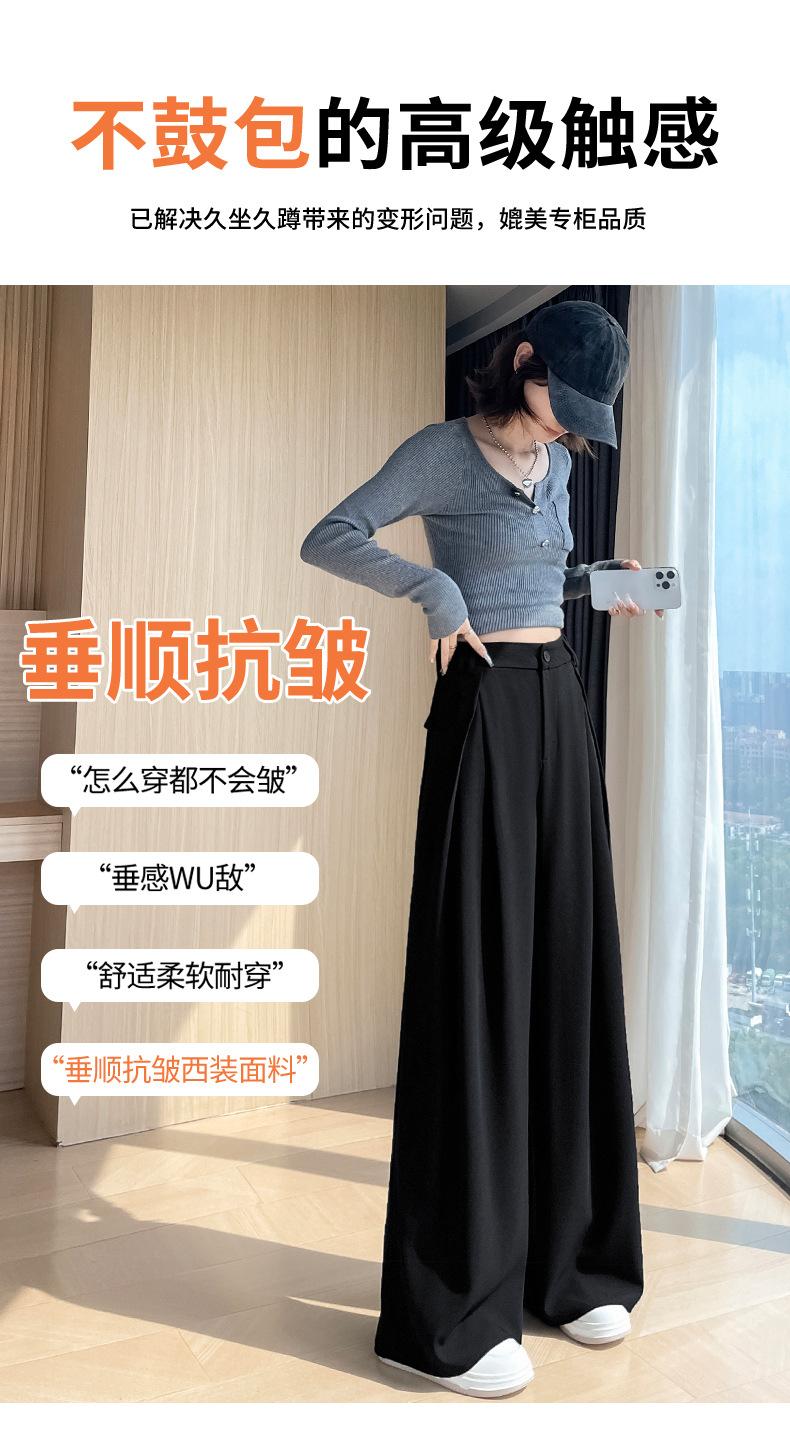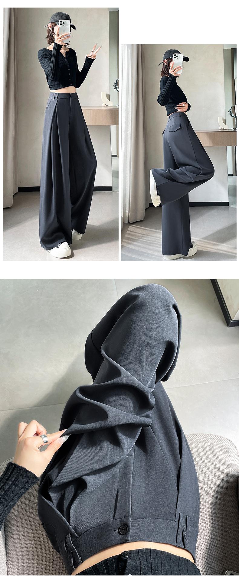 Pantalones de traje negros para mujer primavera y otoño 2025 nuevos de cintura alta plisados adelgazantes sentido de alta gama caída pierna recta casuales pantalones de pierna ancha