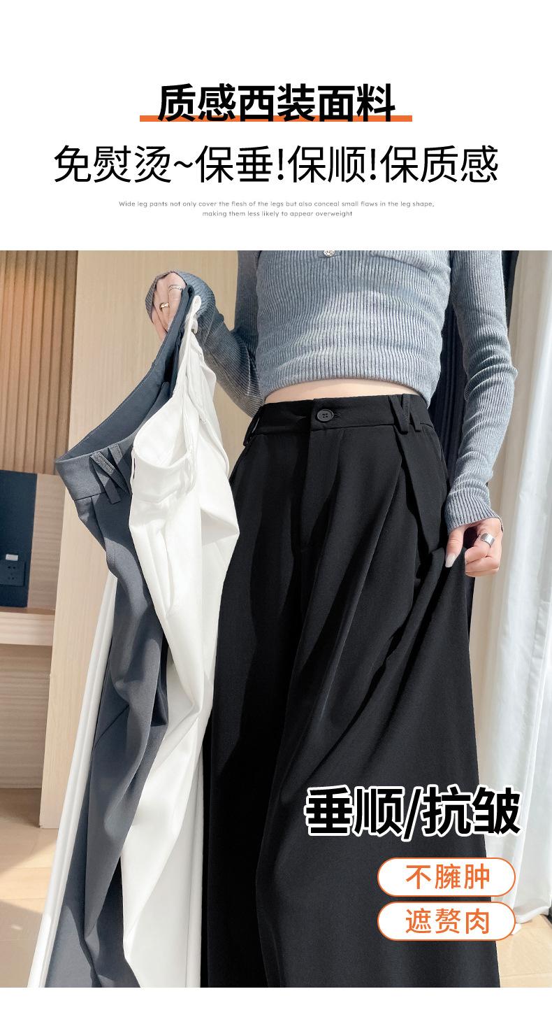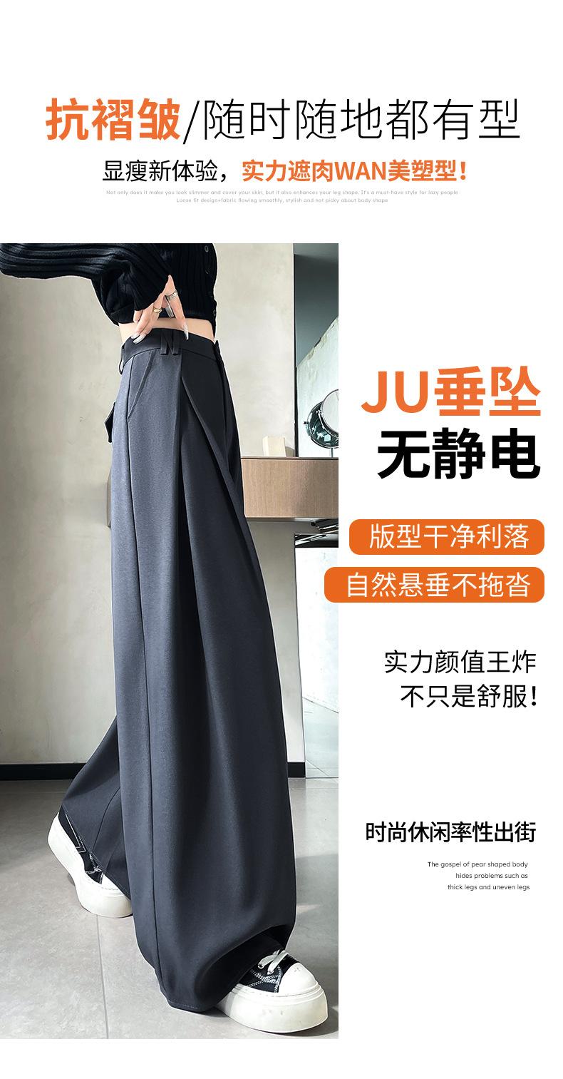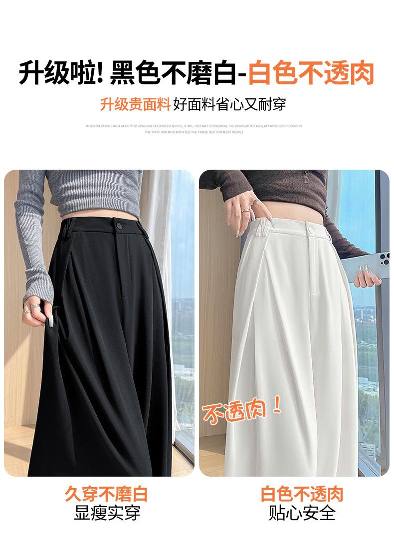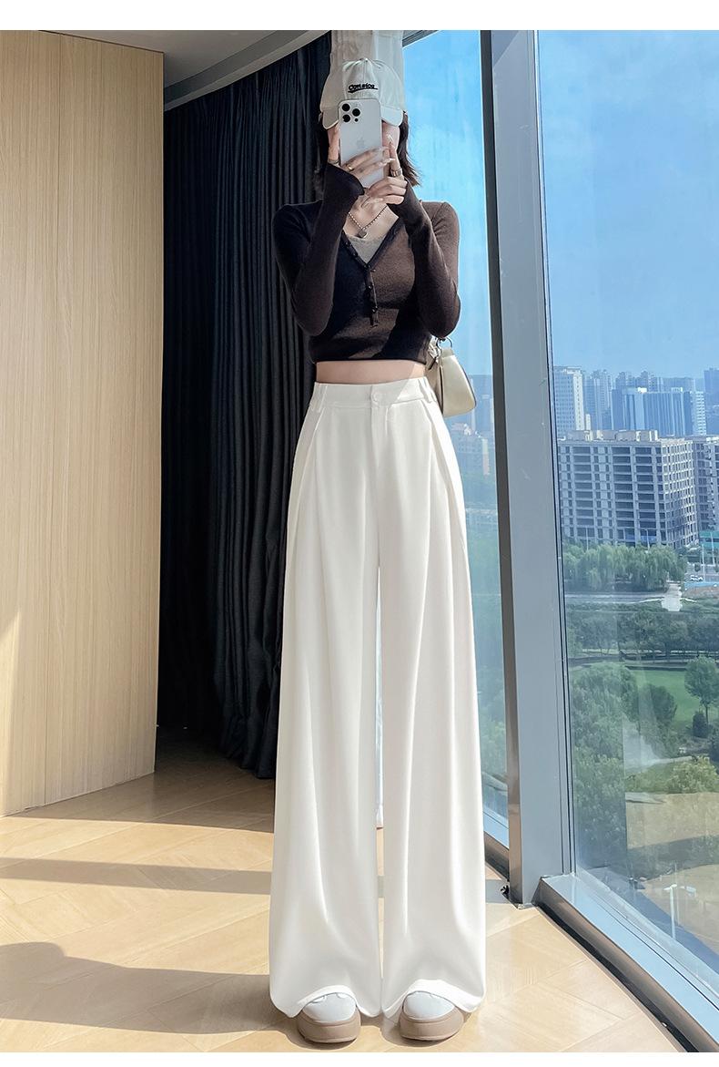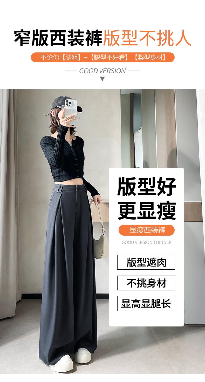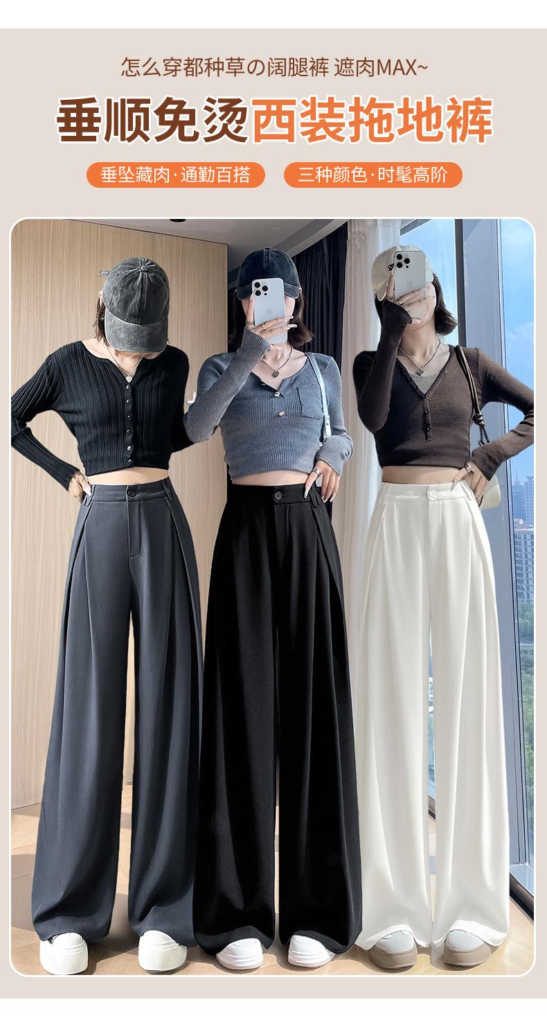 Pantalones de traje negros para mujer primavera y otoño 2025 nuevos de cintura alta plisados adelgazantes sentido de alta gama caída pierna recta casuales pantalones de pierna ancha