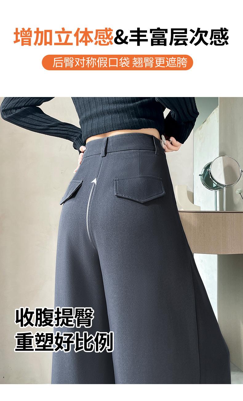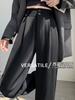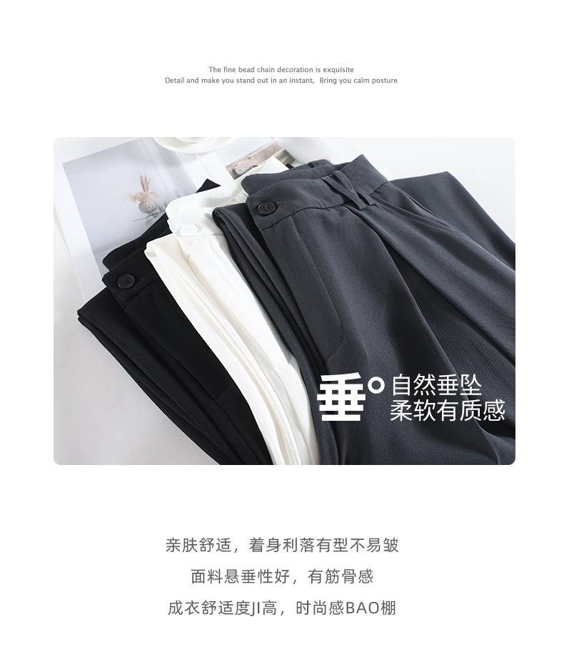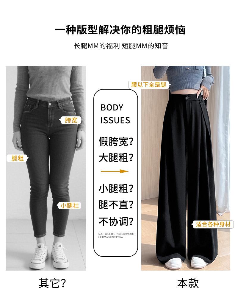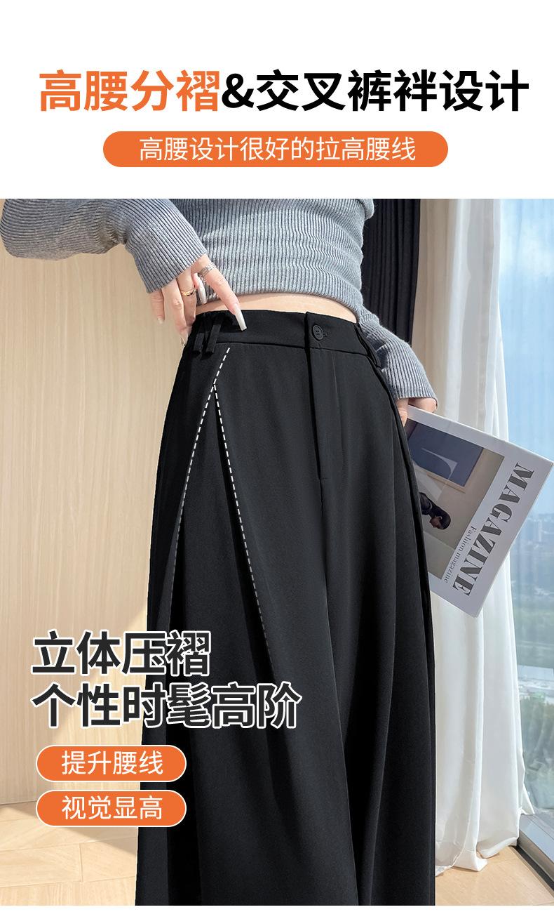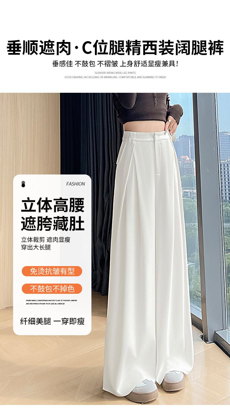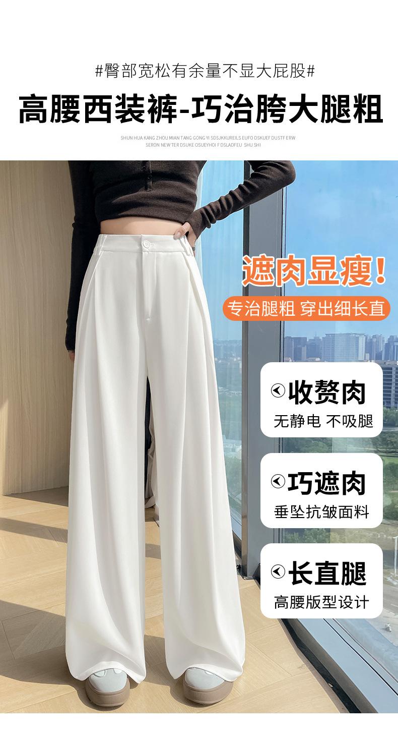Pantalones de traje negros para mujer primavera y otoño 2025 nuevos de cintura alta plisados adelgazantes sentido de alta gama caída pierna recta casuales pantalones de pierna ancha