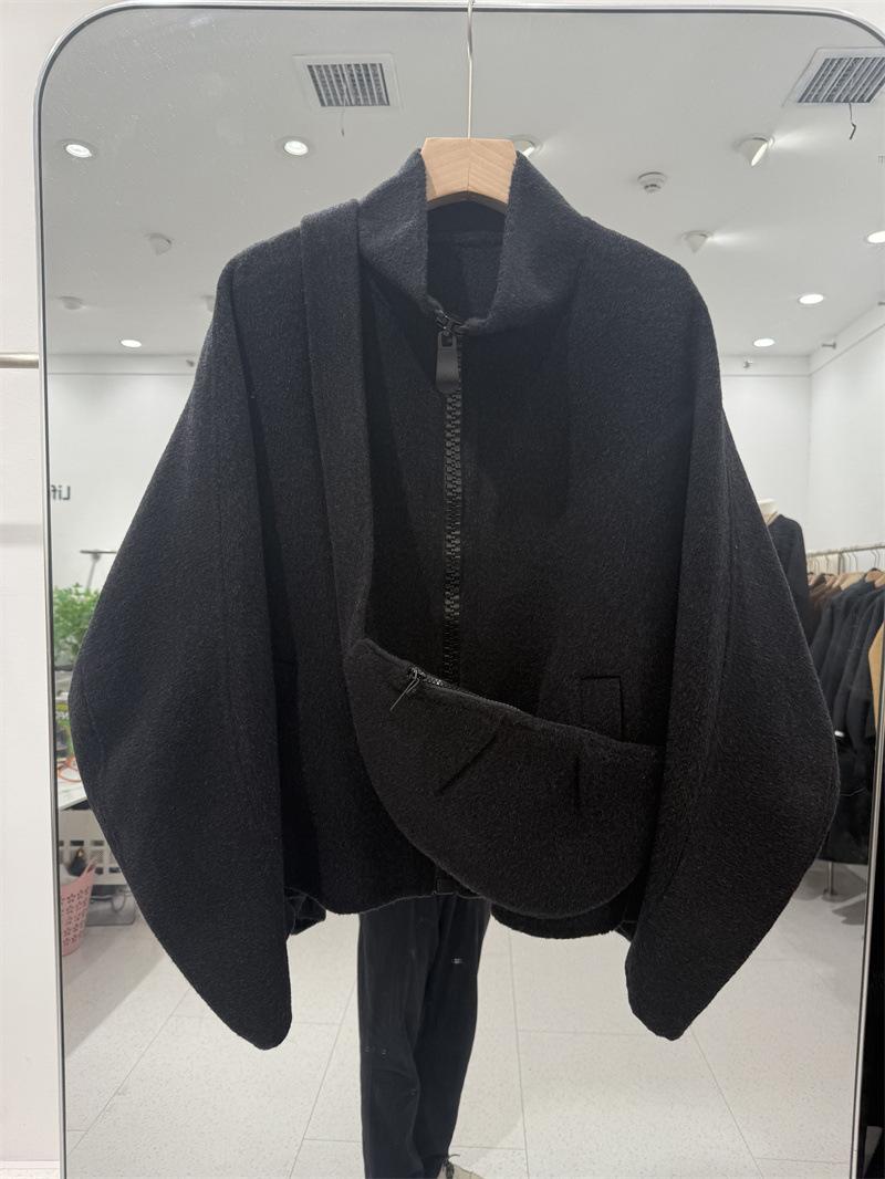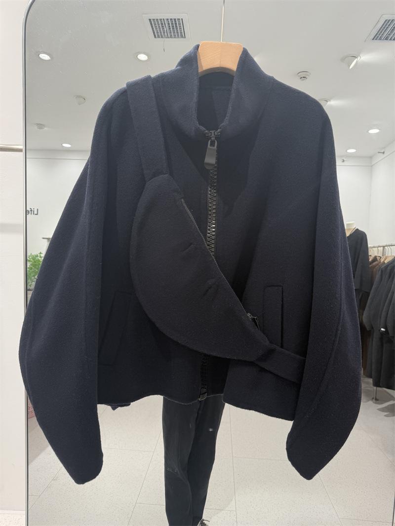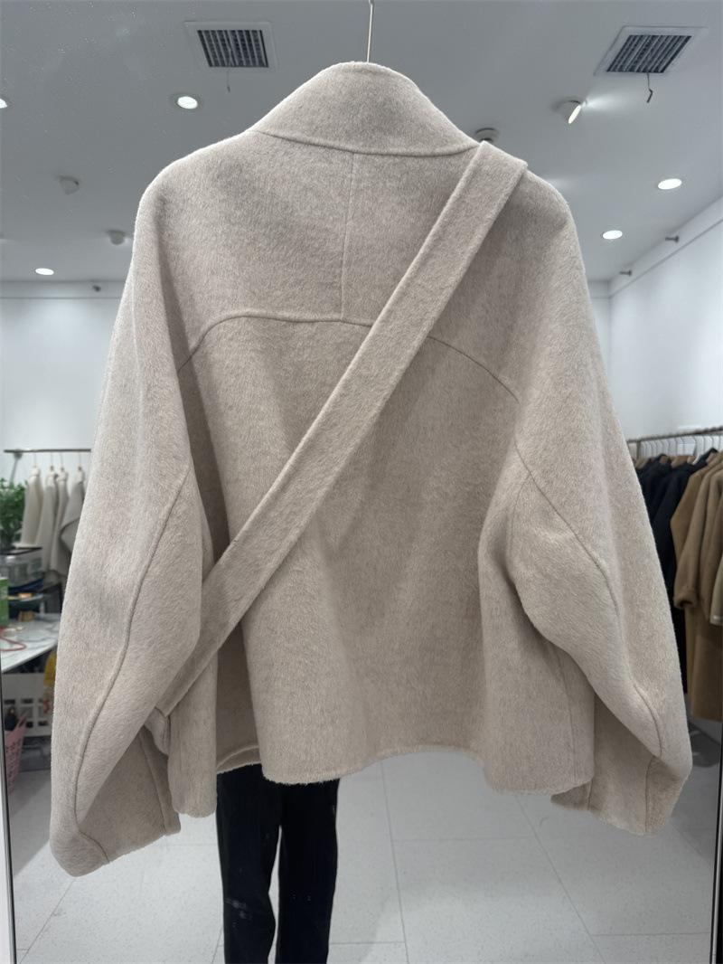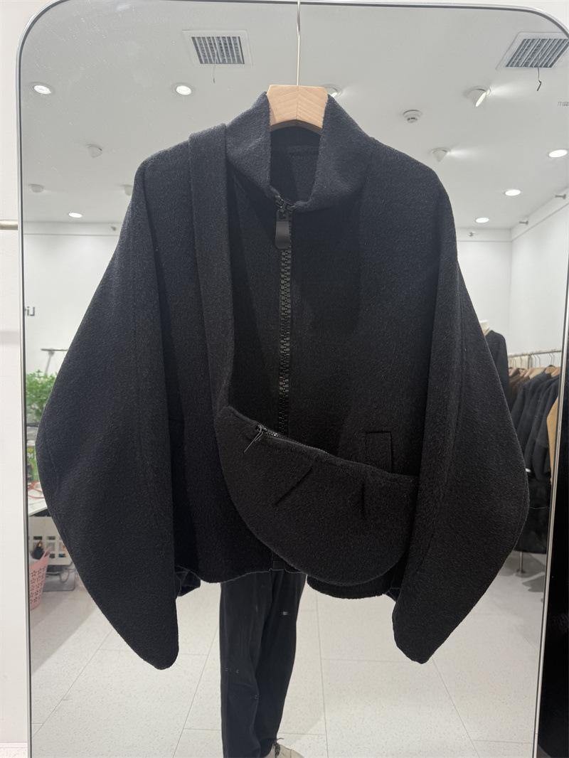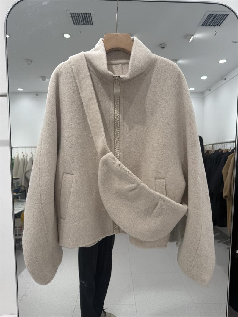 Nuevo Cárdigan de Lana Doble Faz con Cuello Mao Otoño e Invierno Nuevo Abrigo Exterior con Cremallera Top de Manga Larga Bolso Bandolera Estilo Europeo y Coreano