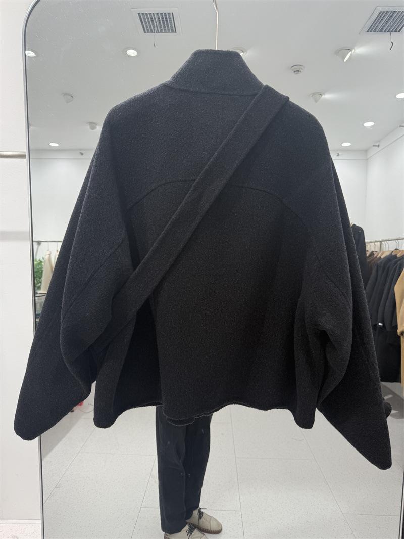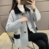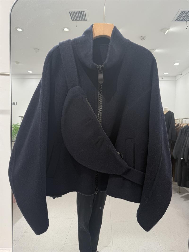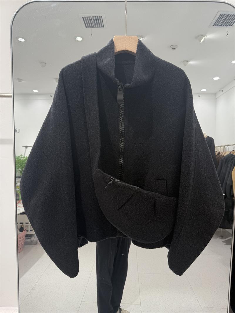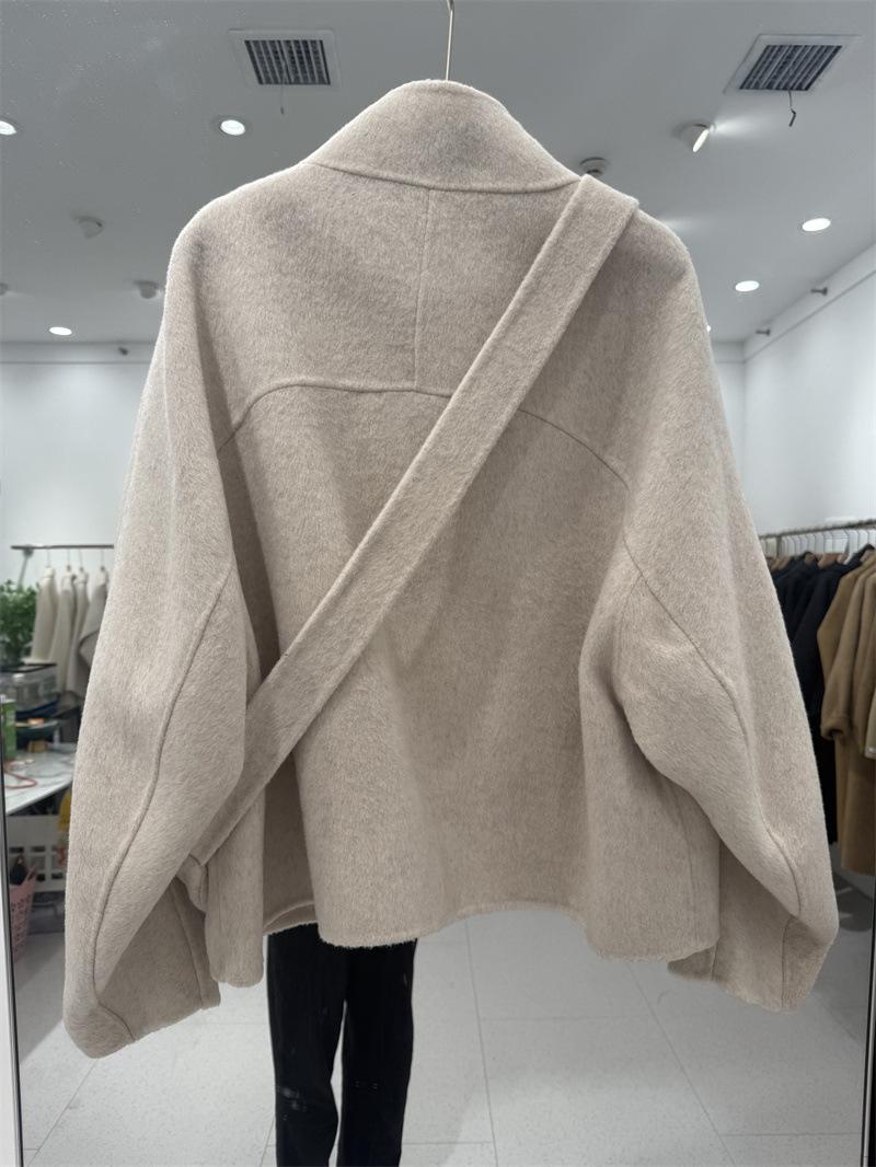 Nuevo Cárdigan de Lana Doble Faz con Cuello Mao Otoño e Invierno Nuevo Abrigo Exterior con Cremallera Top de Manga Larga Bolso Bandolera Estilo Europeo y Coreano