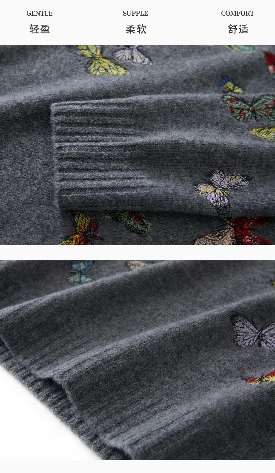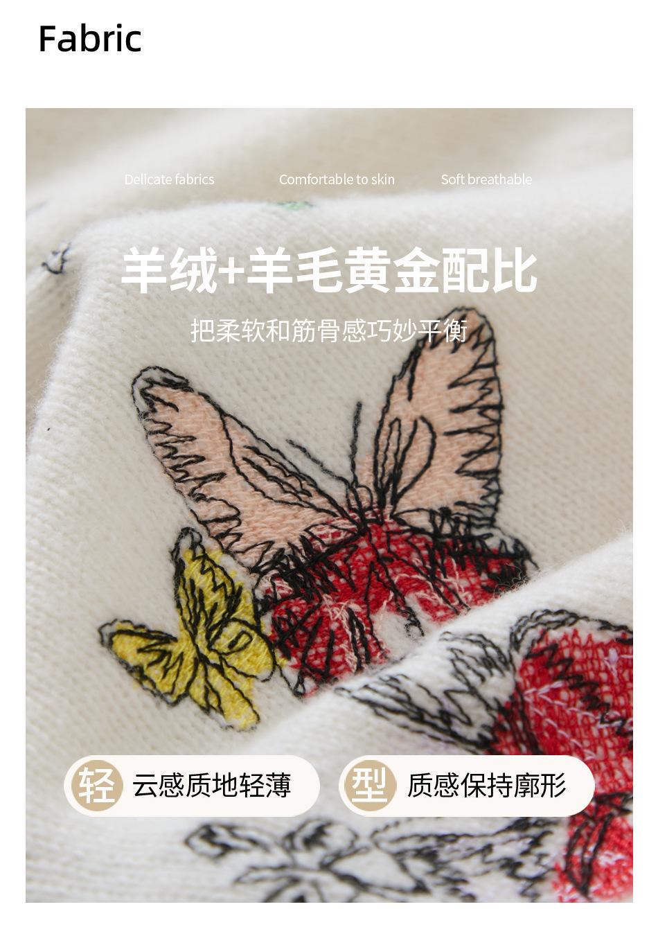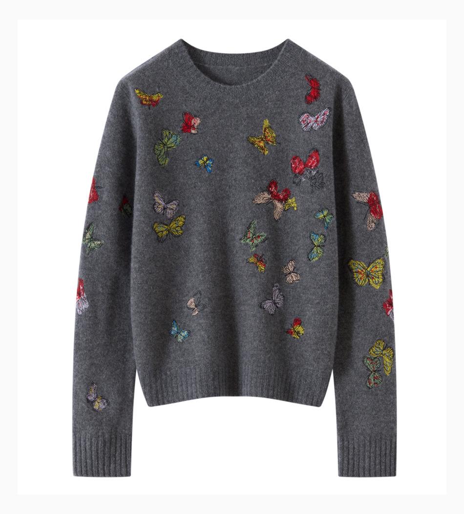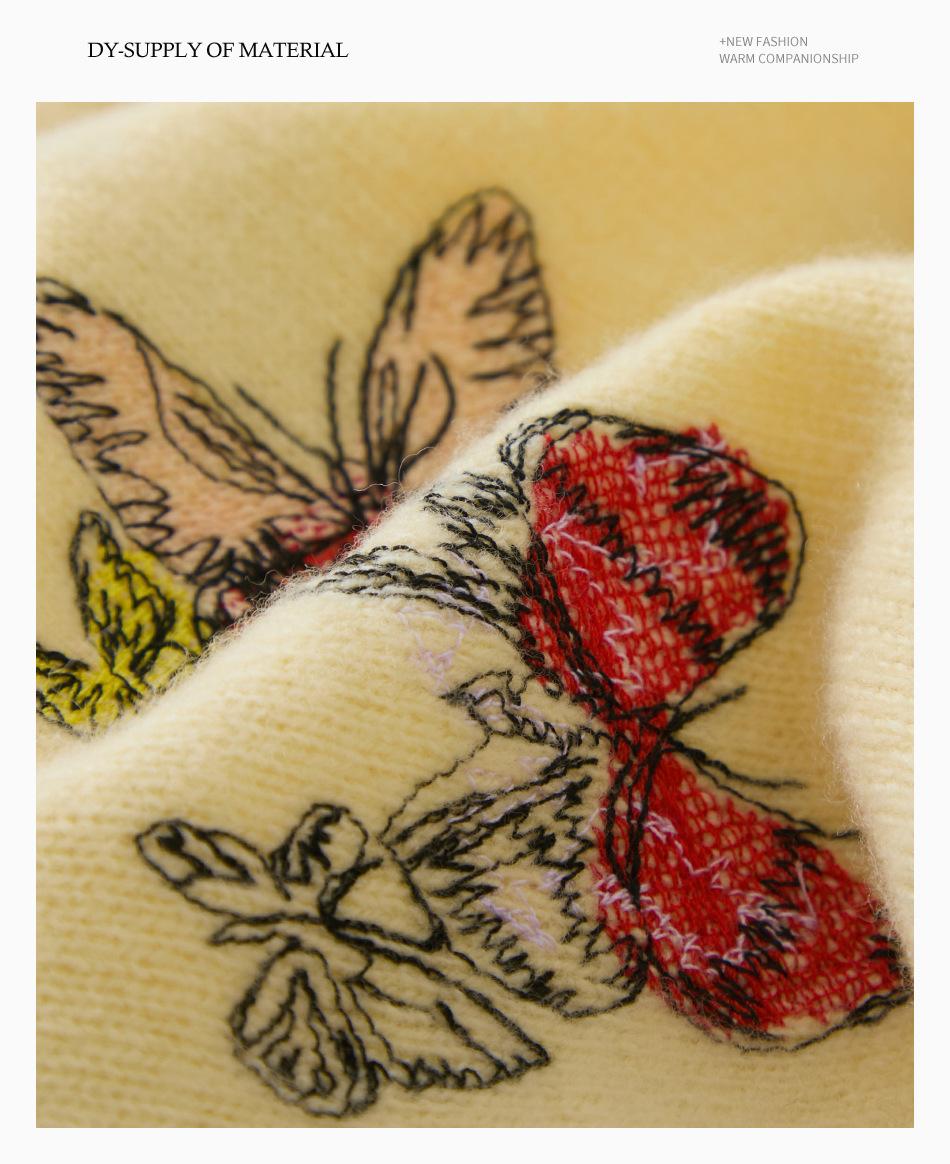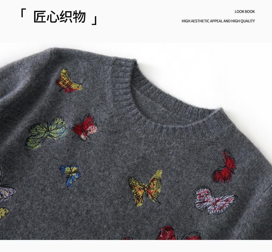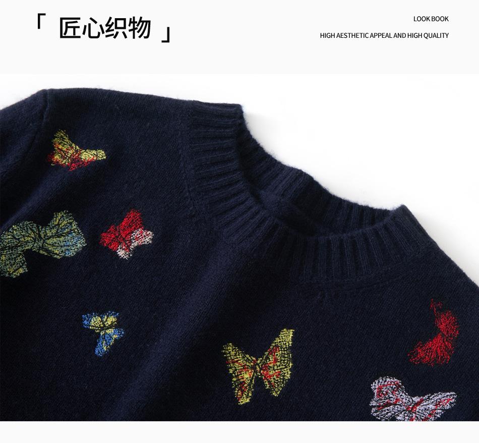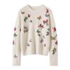 2025 Otoño/Invierno Nuevo Mezcla de Lana Cachemira Cuello Redondo Tejido Manga Larga Diseño de Mariposa Bordado Sentido Capa Base