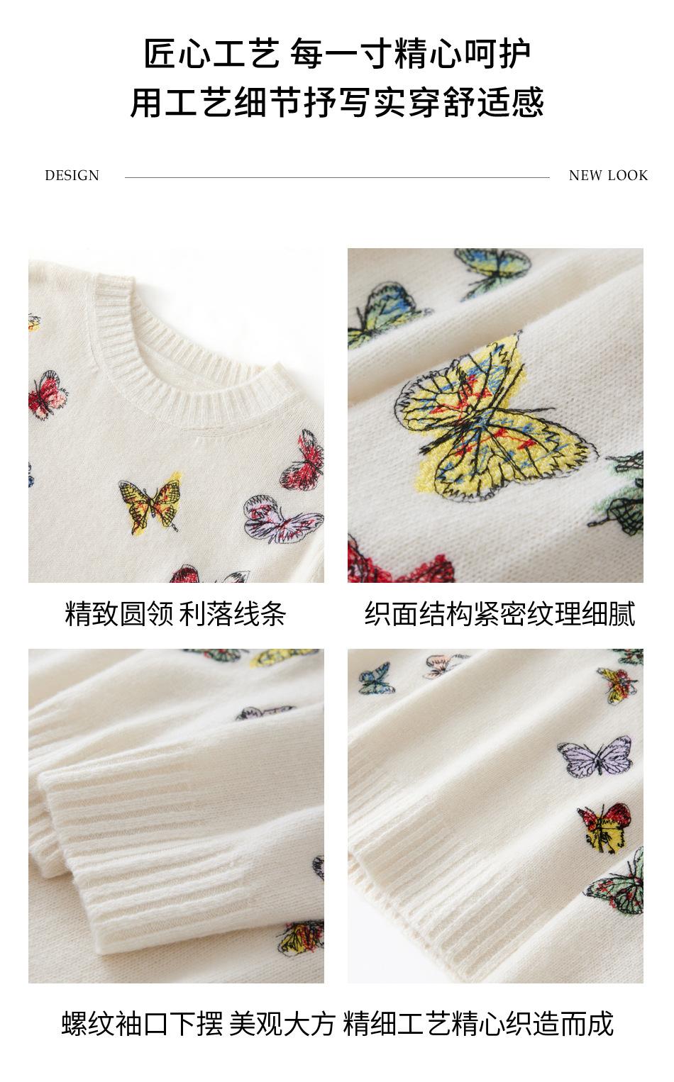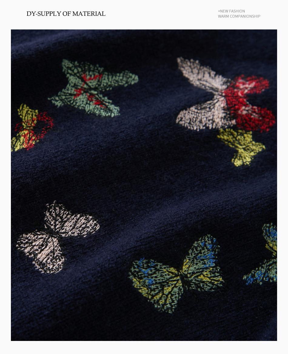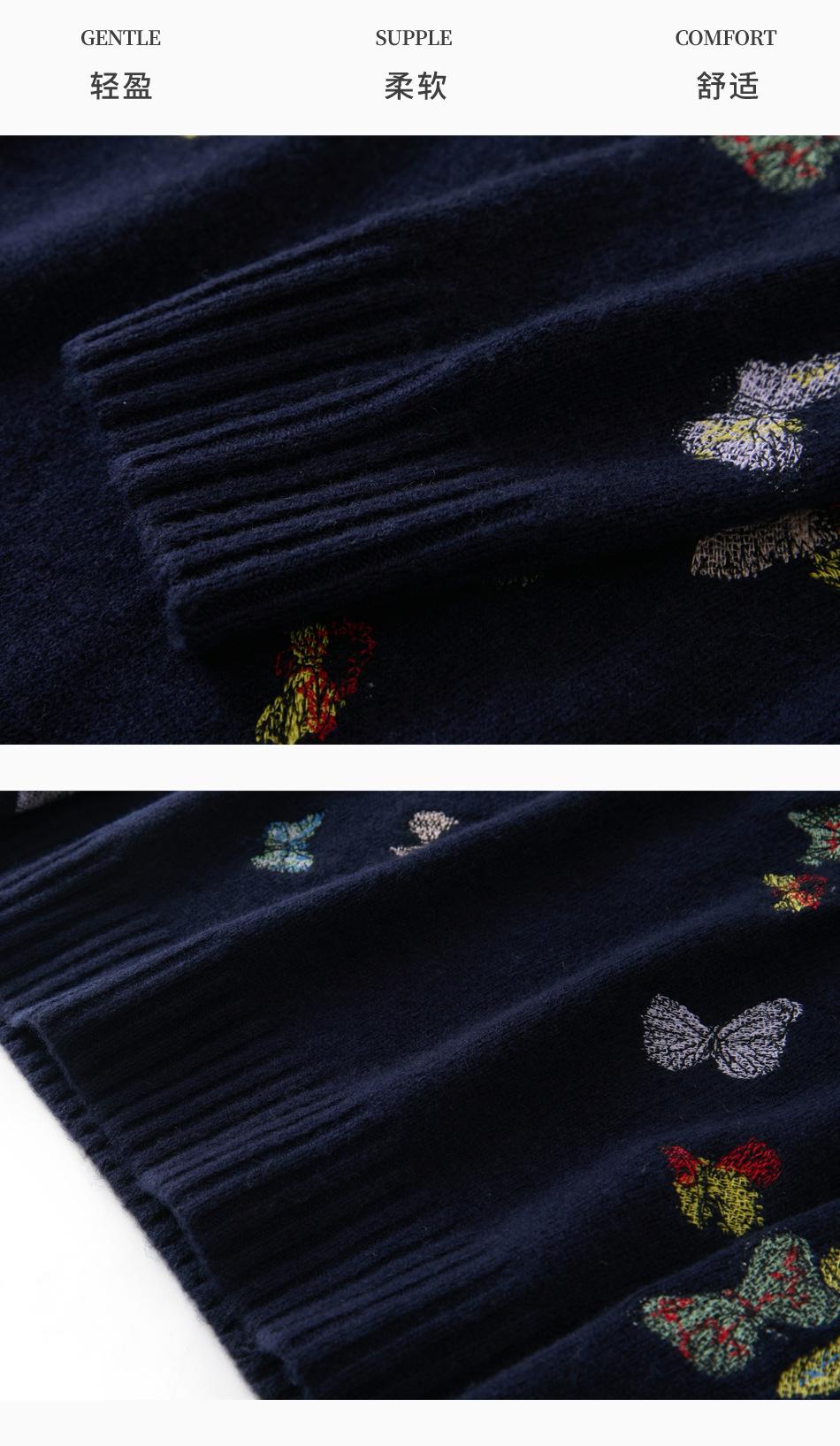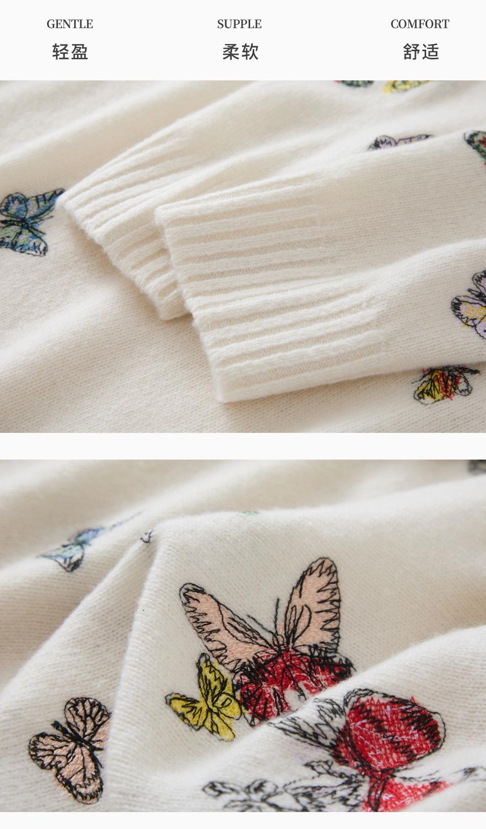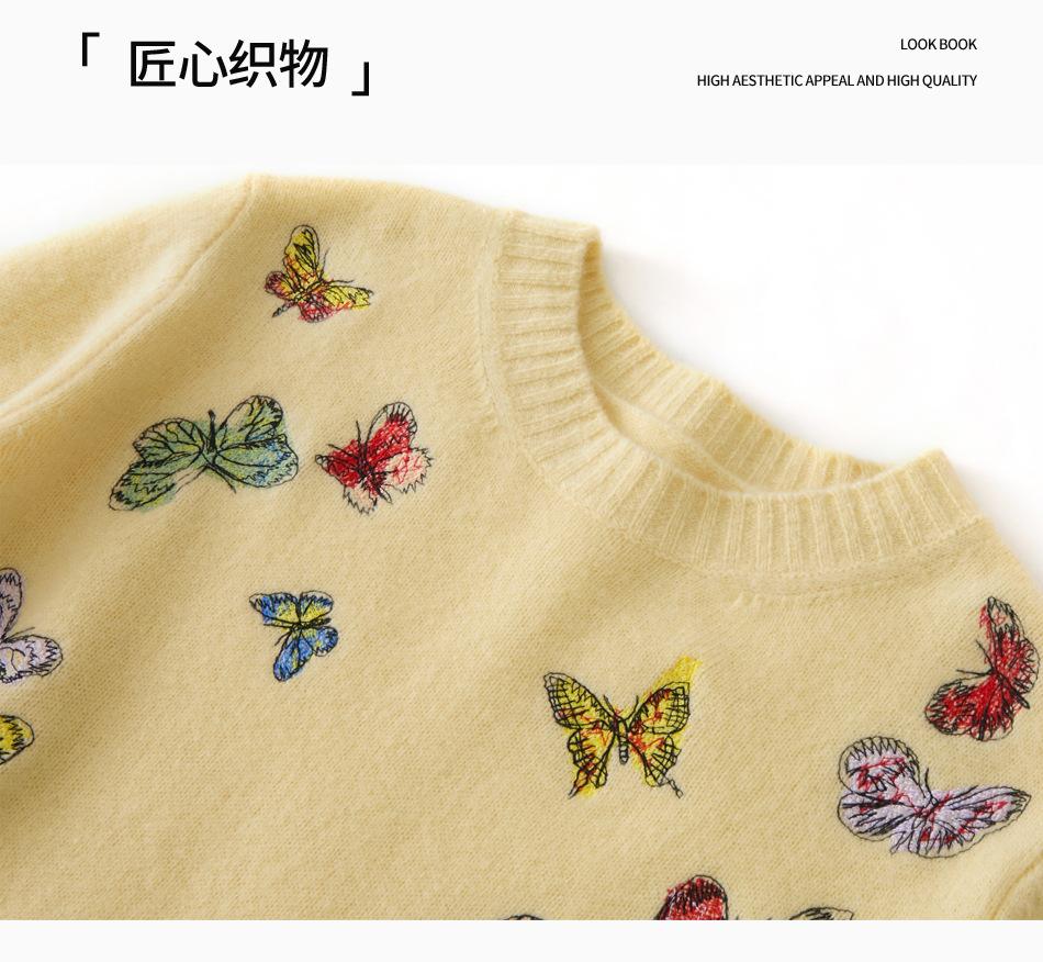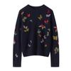 2025 Otoño/Invierno Nuevo Mezcla de Lana Cachemira Cuello Redondo Tejido Manga Larga Diseño de Mariposa Bordado Sentido Capa Base