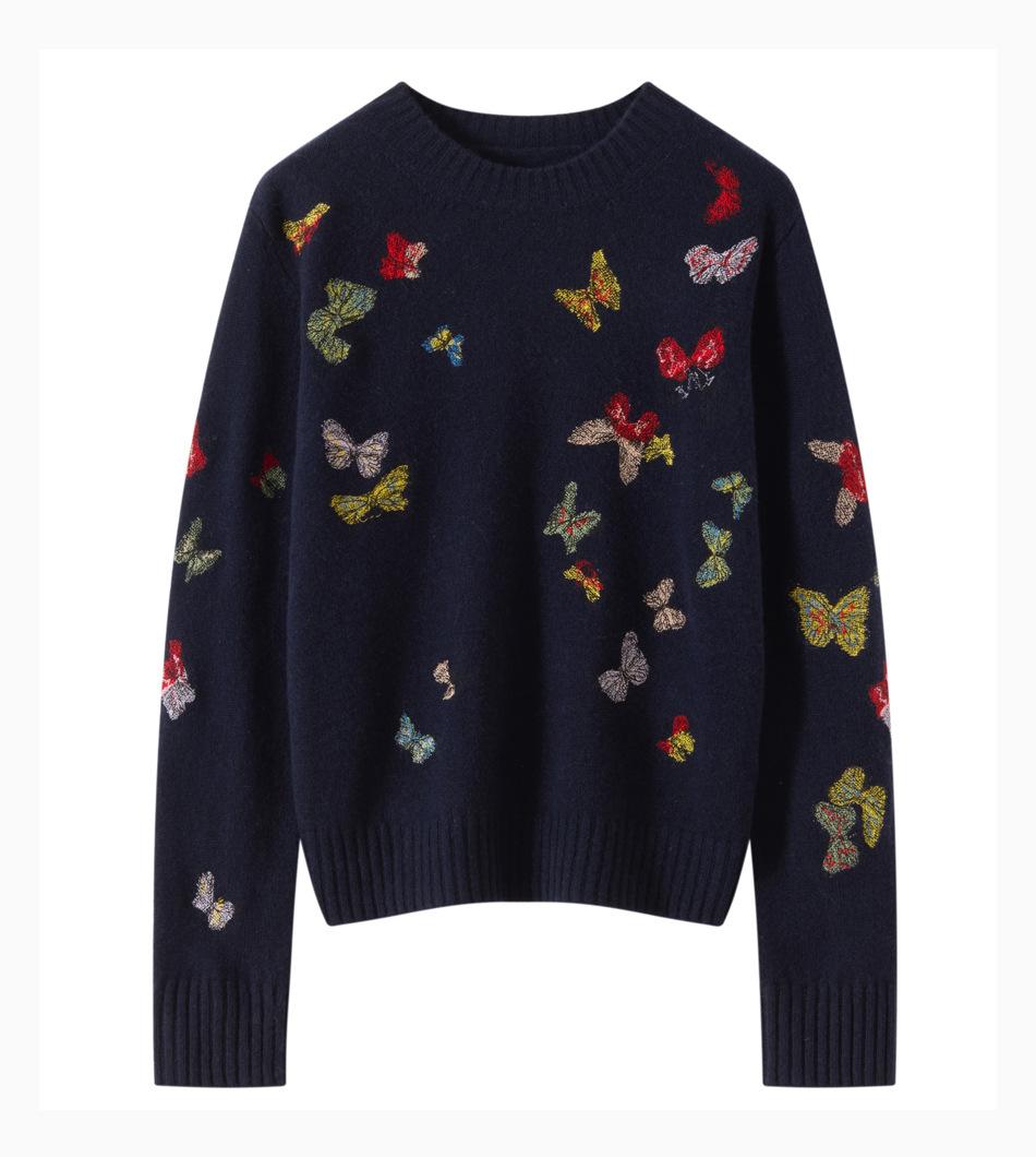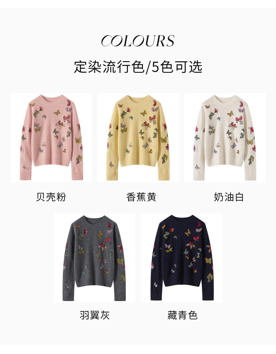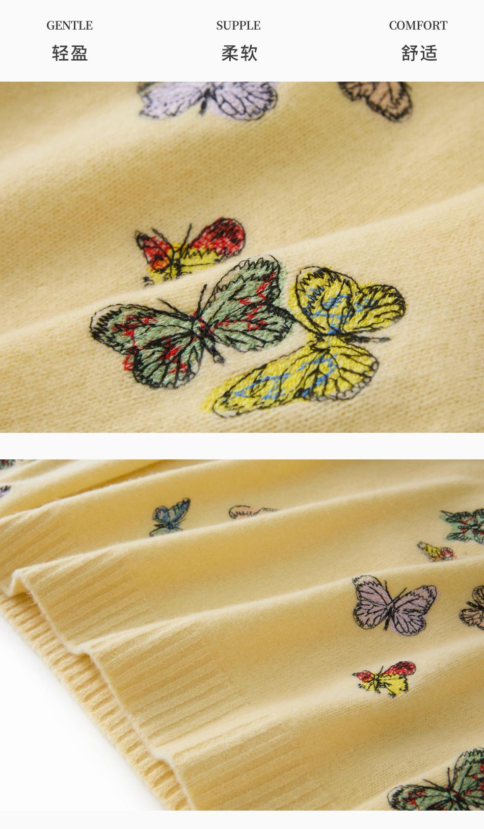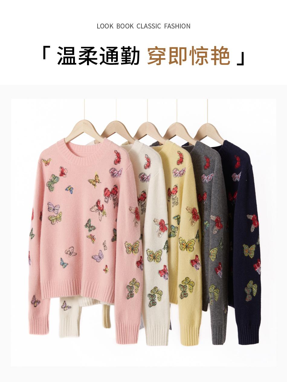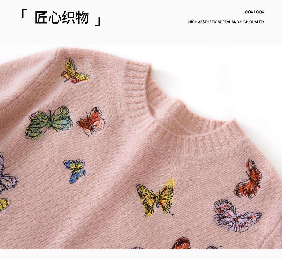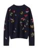 2025 Otoño/Invierno Nuevo Mezcla de Lana Cachemira Cuello Redondo Tejido Manga Larga Diseño de Mariposa Bordado Sentido Capa Base