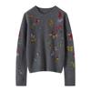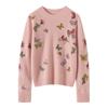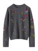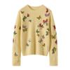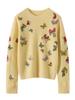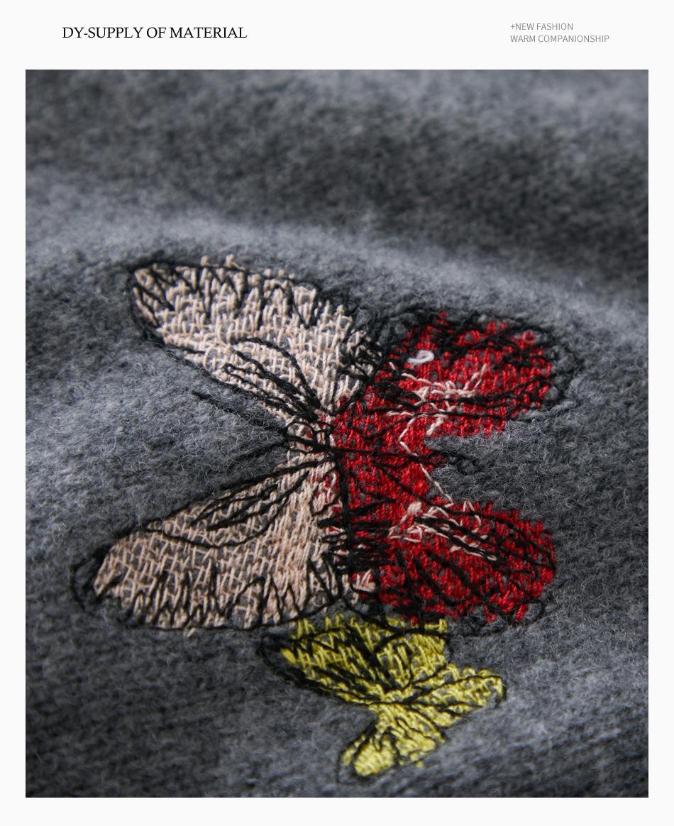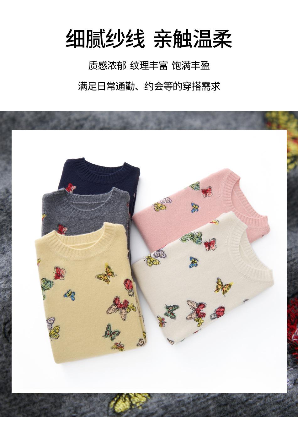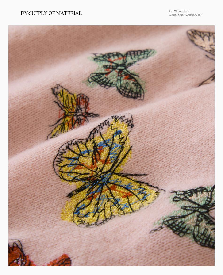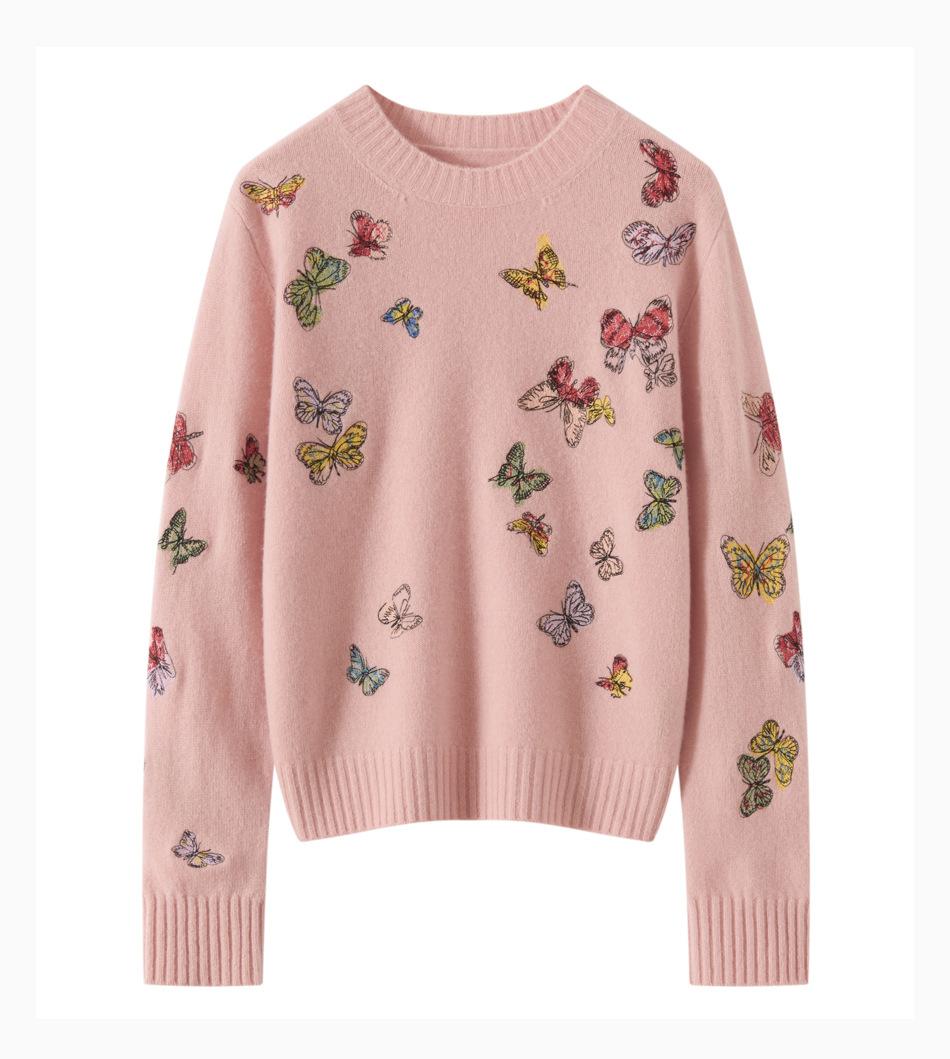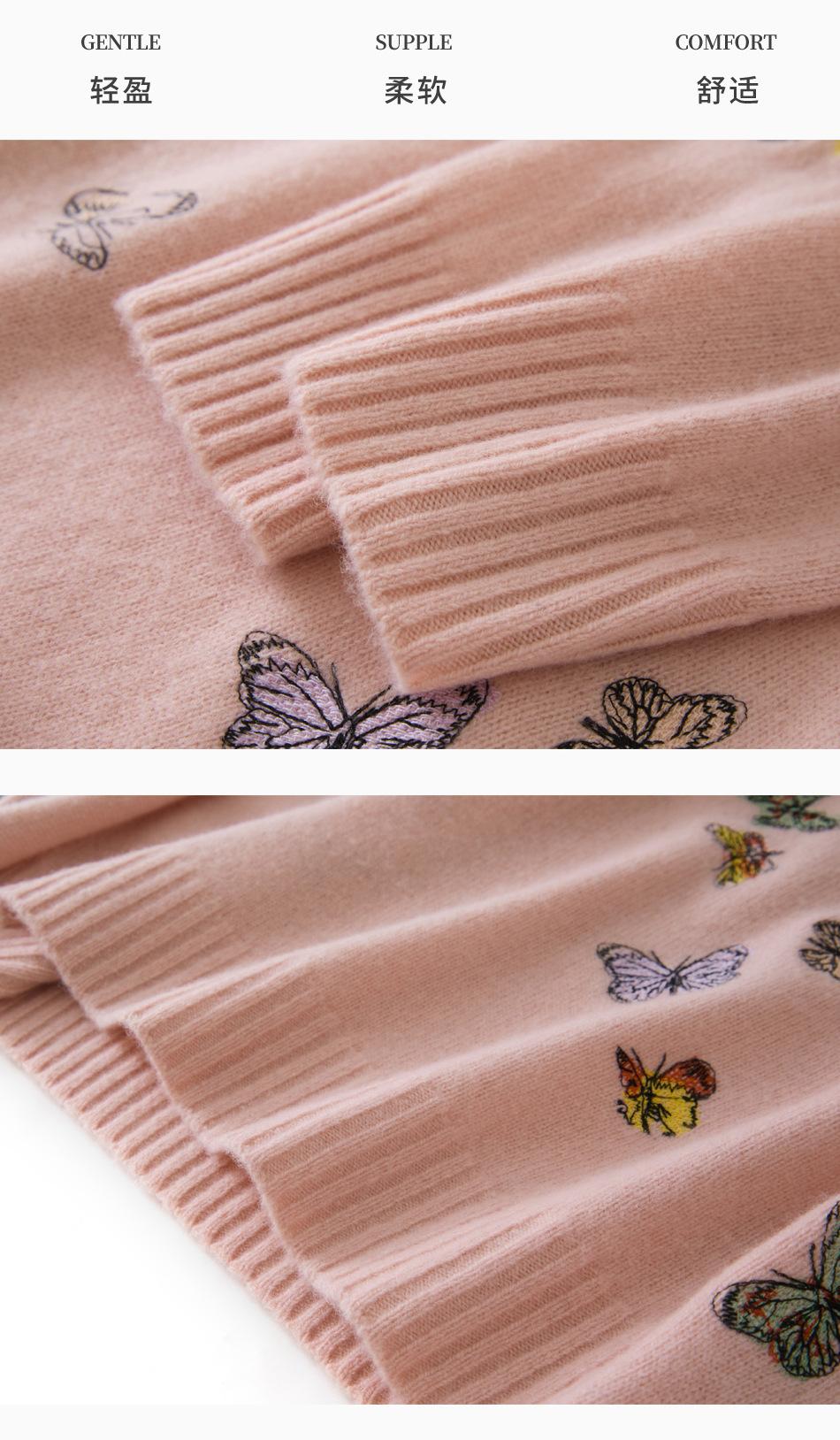 2025 Otoño/Invierno Nuevo Mezcla de Lana Cachemira Cuello Redondo Tejido Manga Larga Diseño de Mariposa Bordado Sentido Capa Base