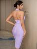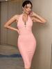 Vestido de Noche de Vendaje Personalizado al por Mayor de Alta Gama Estilo Europeo y Americano Cuello en V Profundo Bodycon Tejido Elástico Vestido de Noche para Mujer