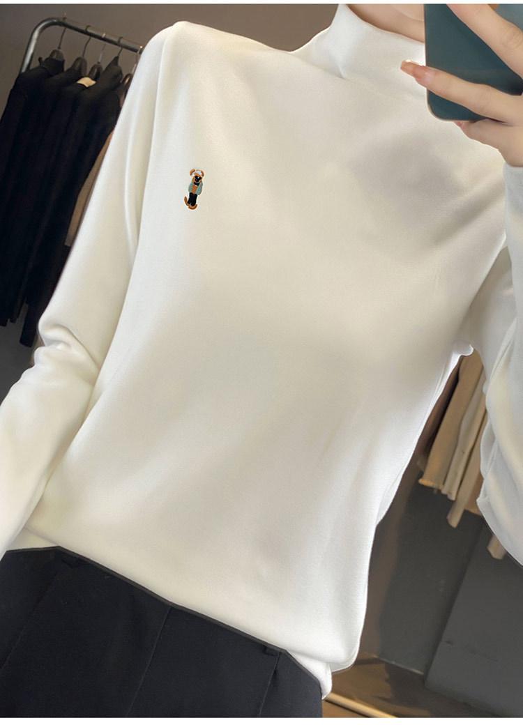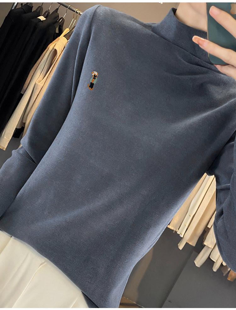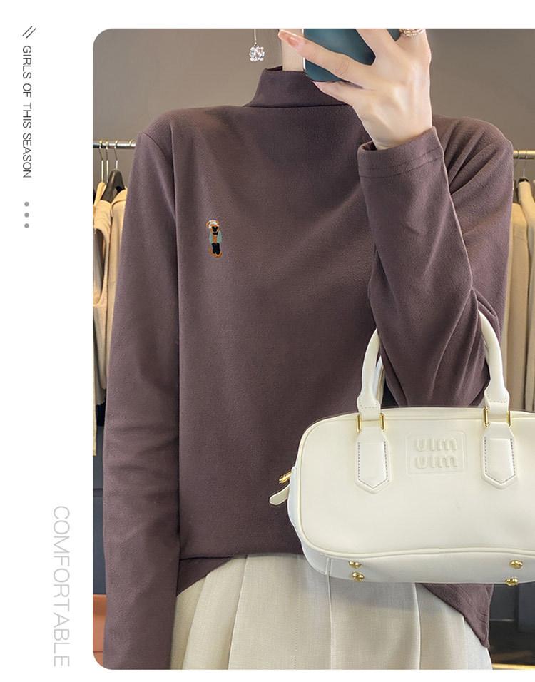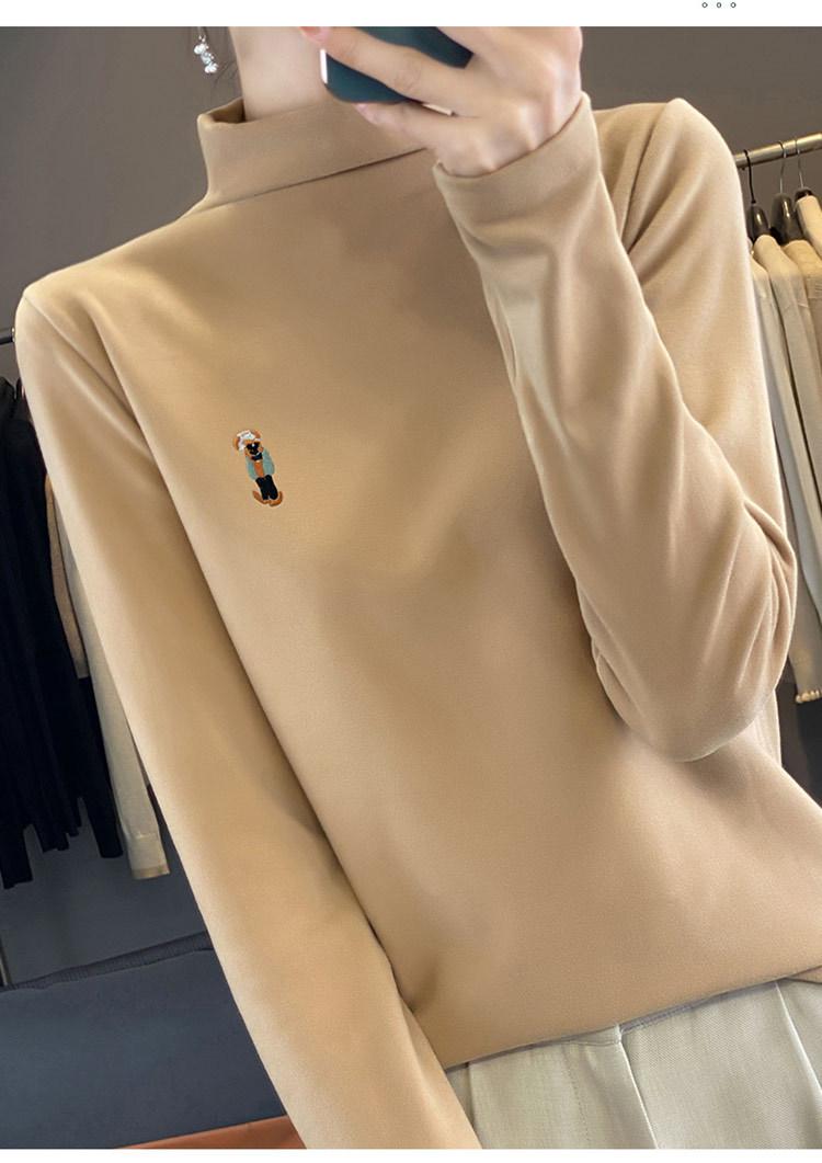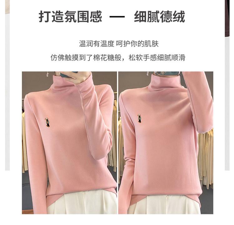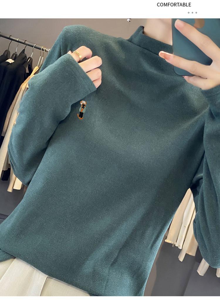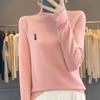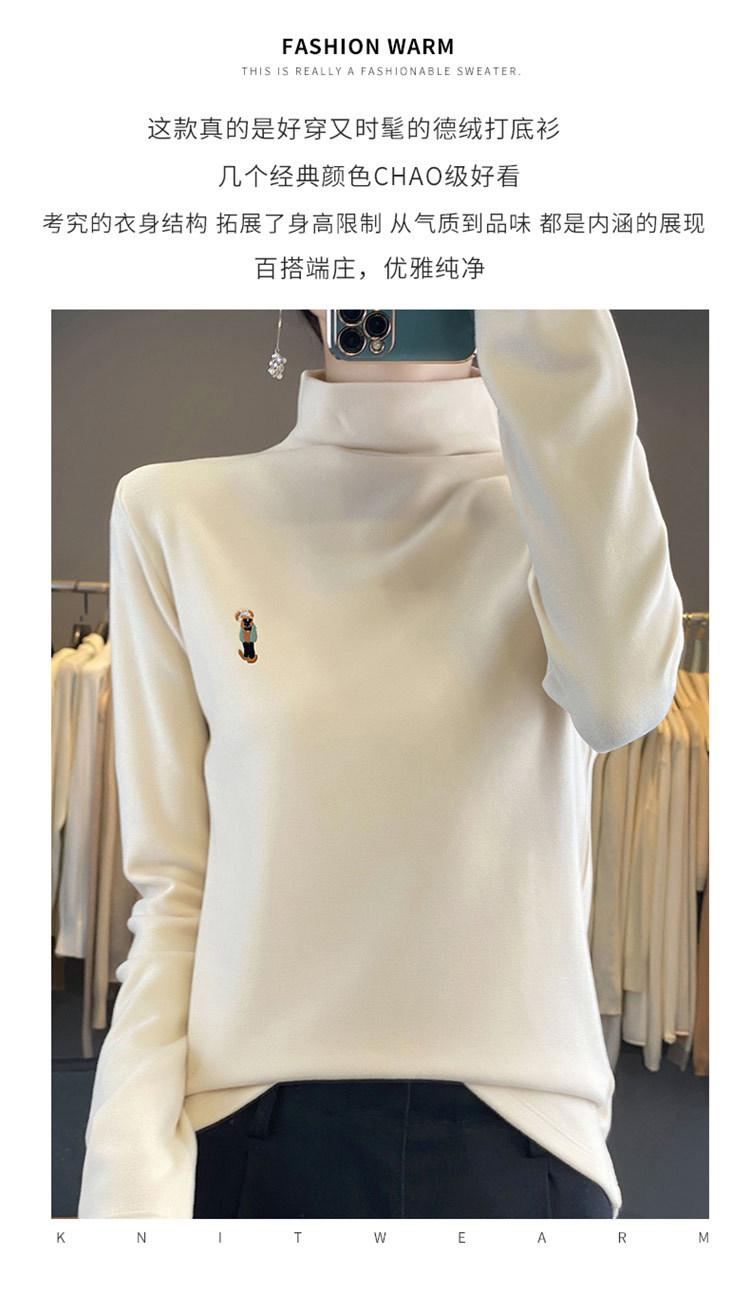 Otoño e invierno 2024 nuevo suéter de terciopelo de doble cara de cuello semi-alto de manga larga con bordado de cordero, jersey básico para mujer