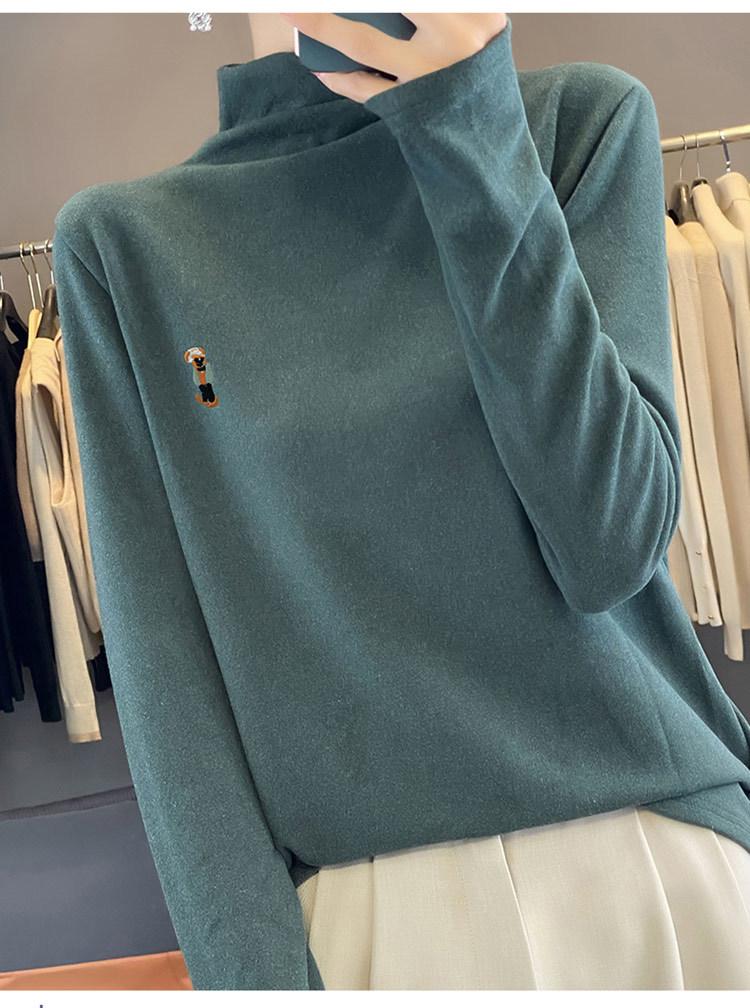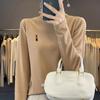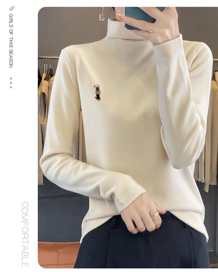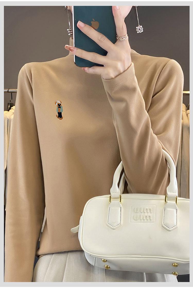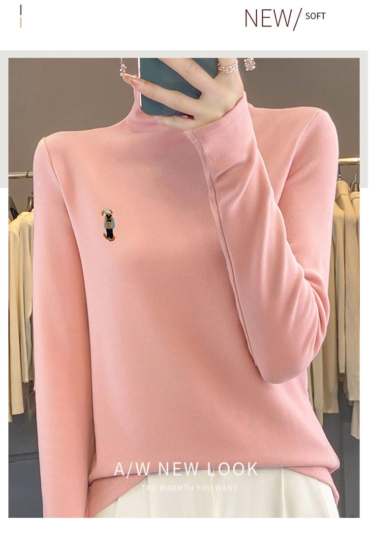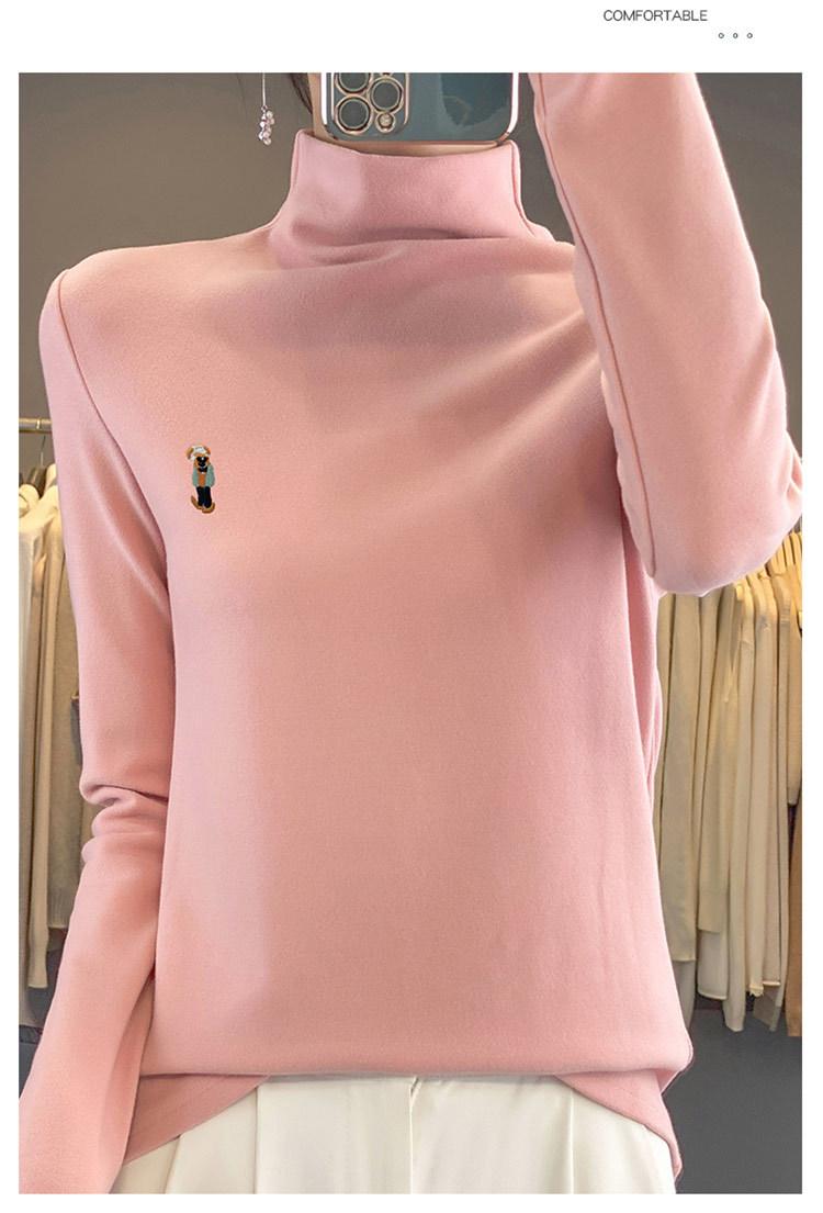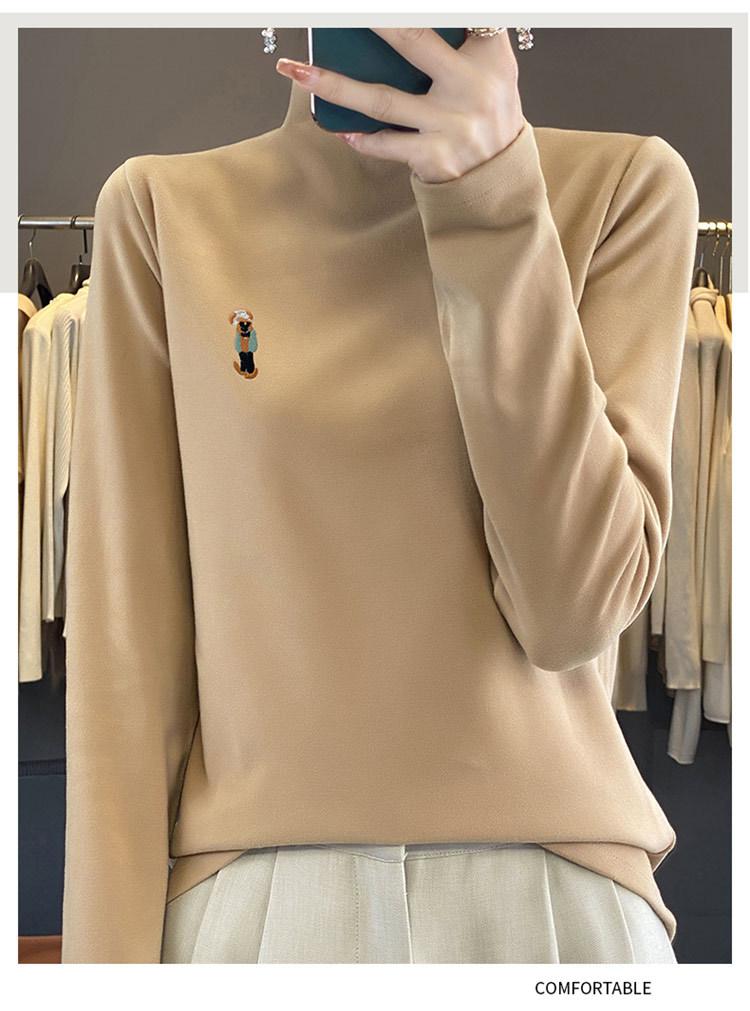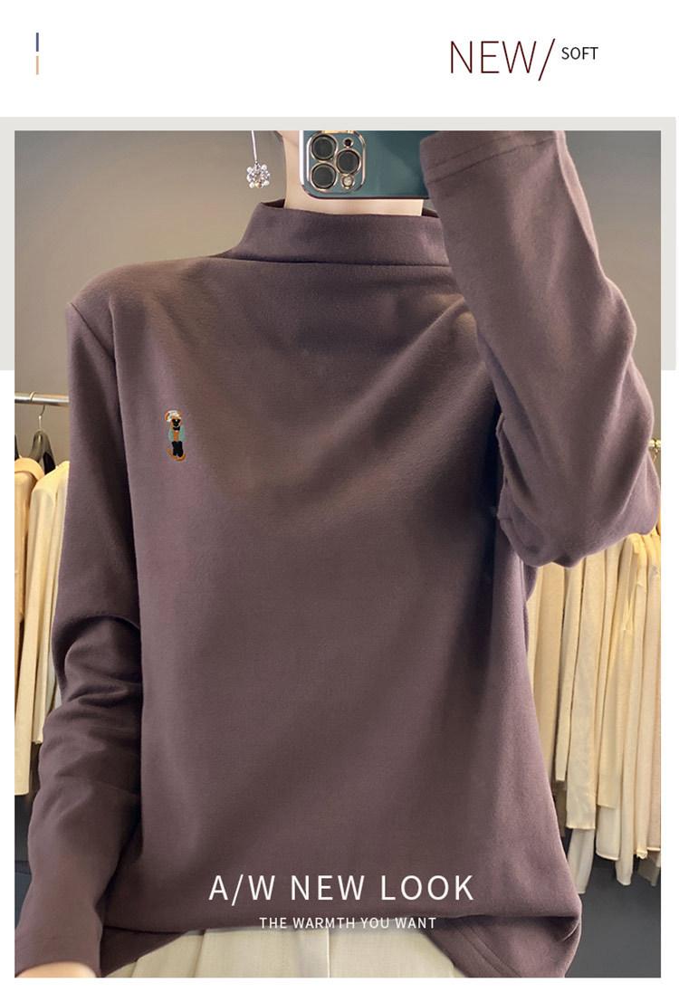 Otoño e invierno 2024 nuevo suéter de terciopelo de doble cara de cuello semi-alto de manga larga con bordado de cordero, jersey básico para mujer