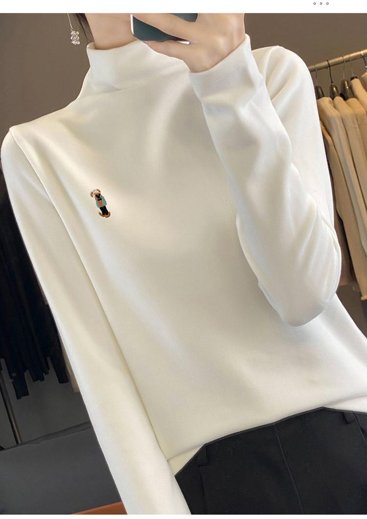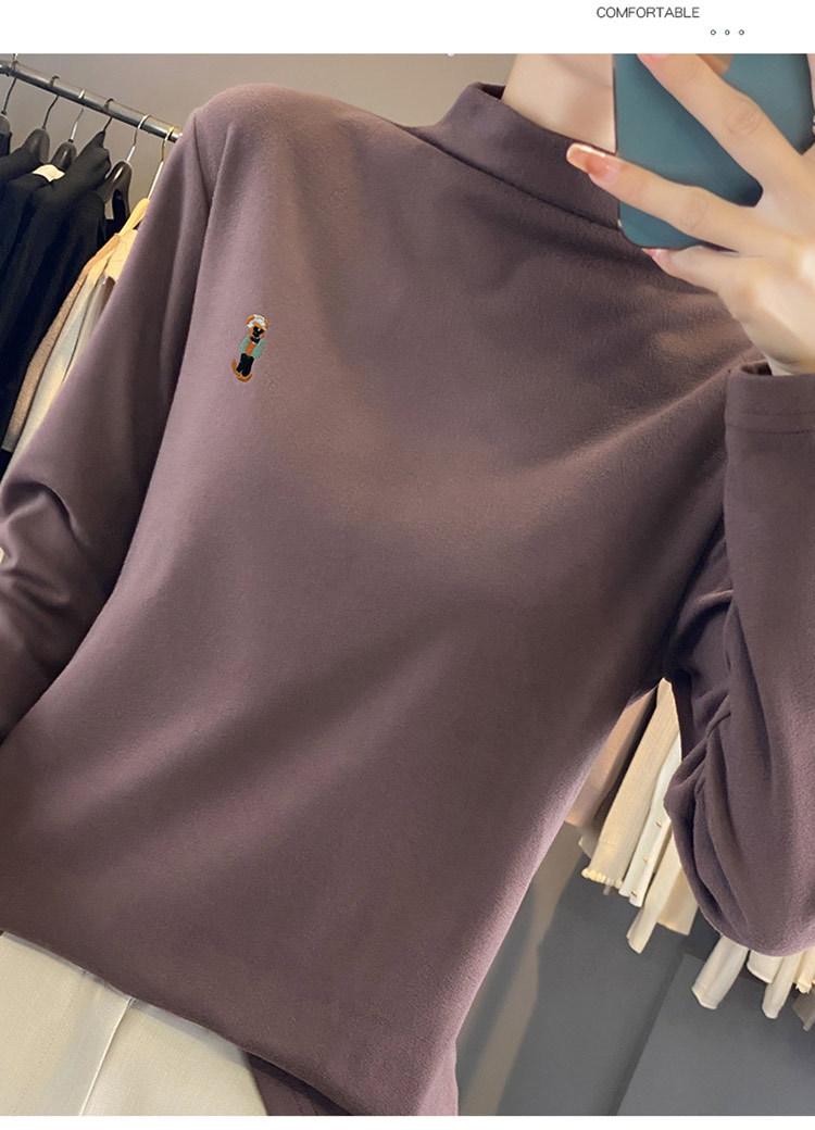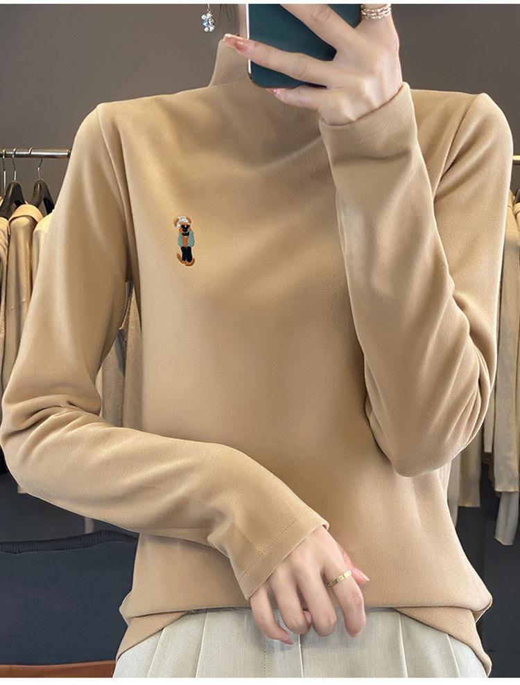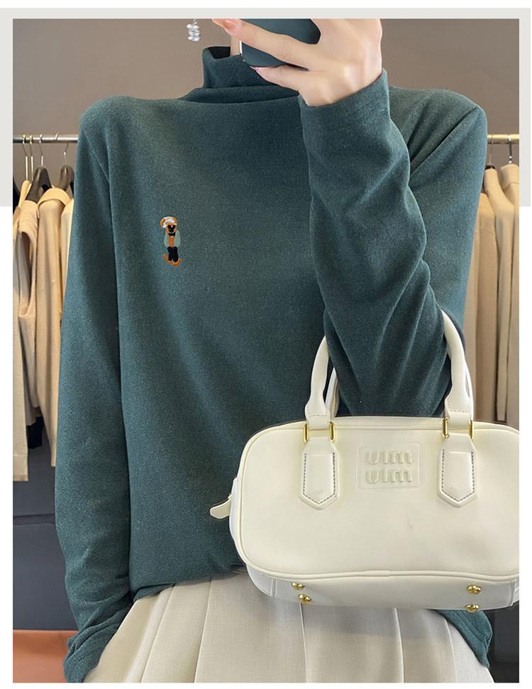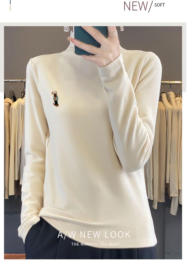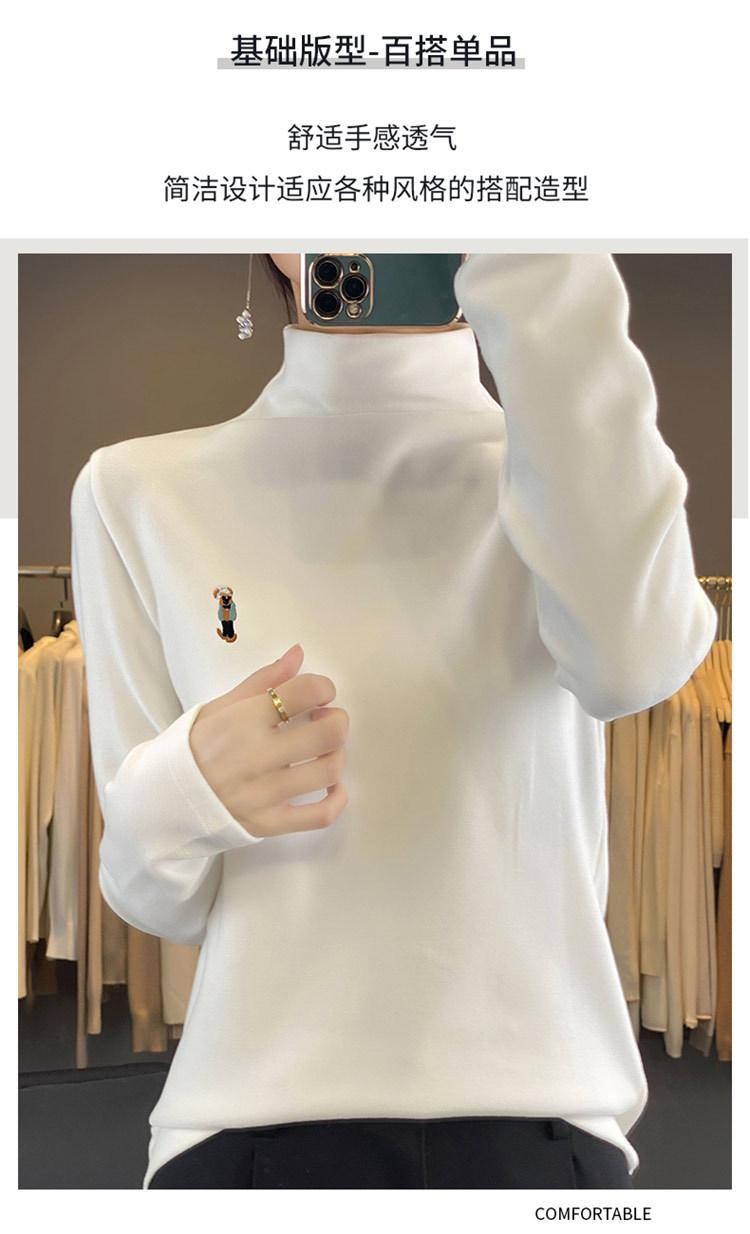 Otoño e invierno 2024 nuevo suéter de terciopelo de doble cara de cuello semi-alto de manga larga con bordado de cordero, jersey básico para mujer