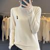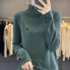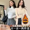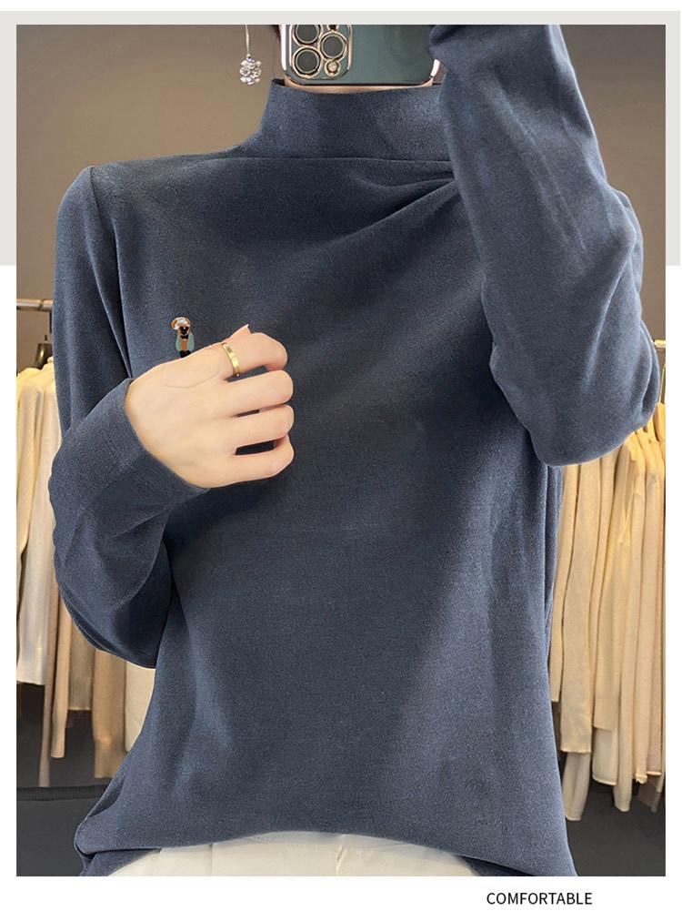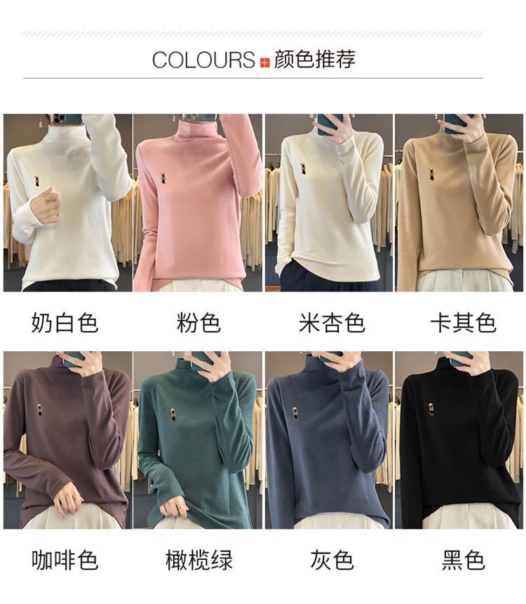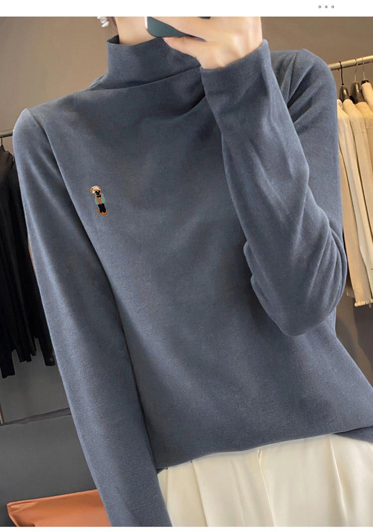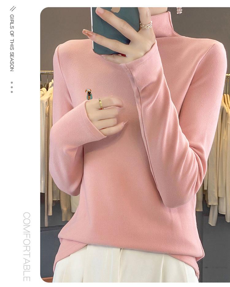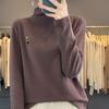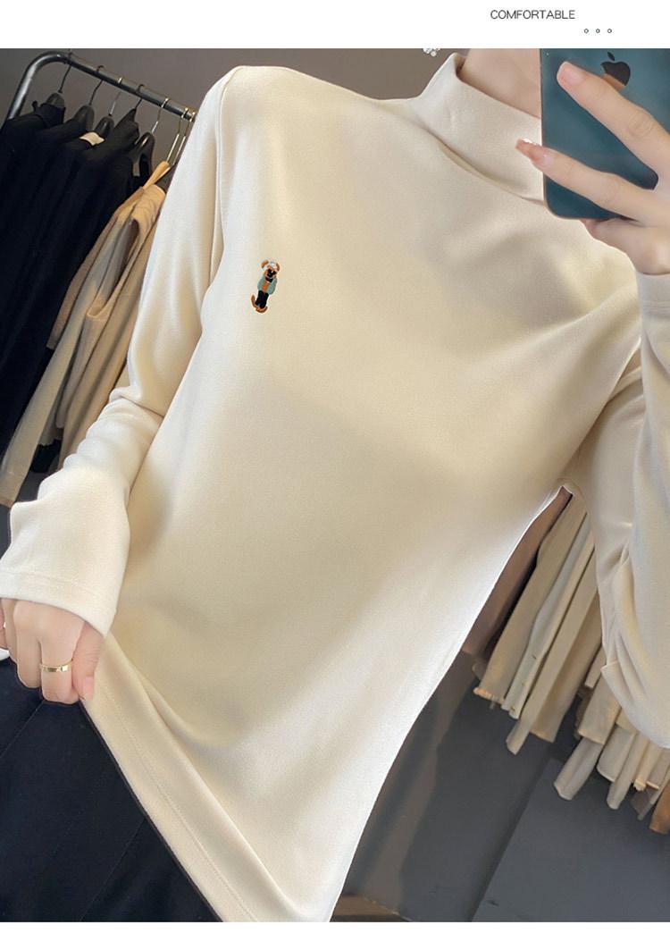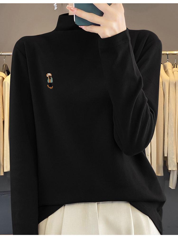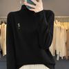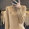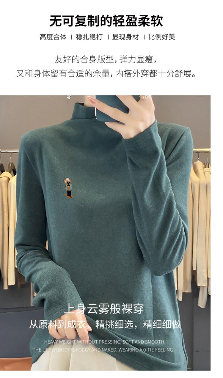 Otoño e invierno 2024 nuevo suéter de terciopelo de doble cara de cuello semi-alto de manga larga con bordado de cordero, jersey básico para mujer