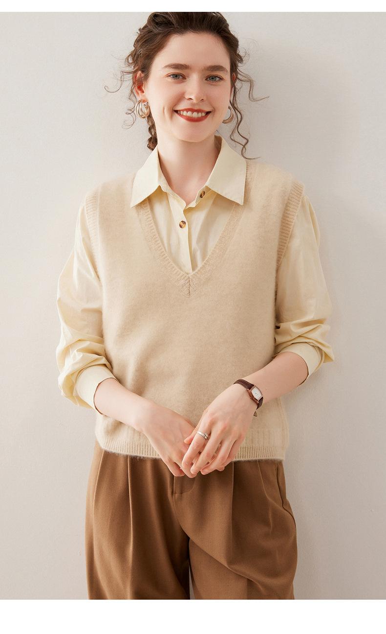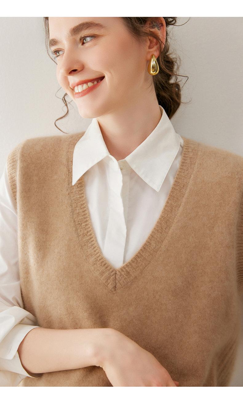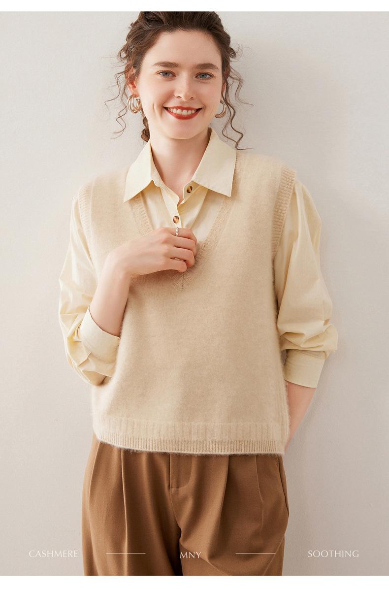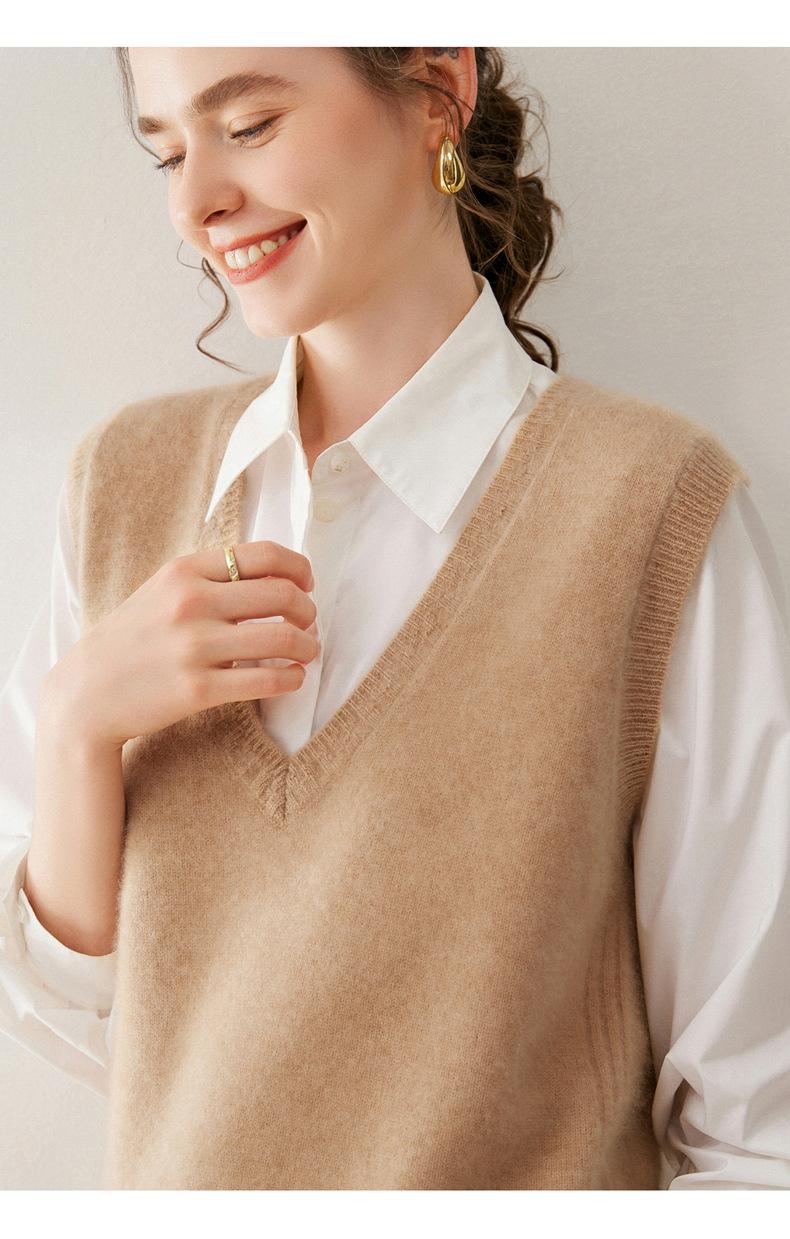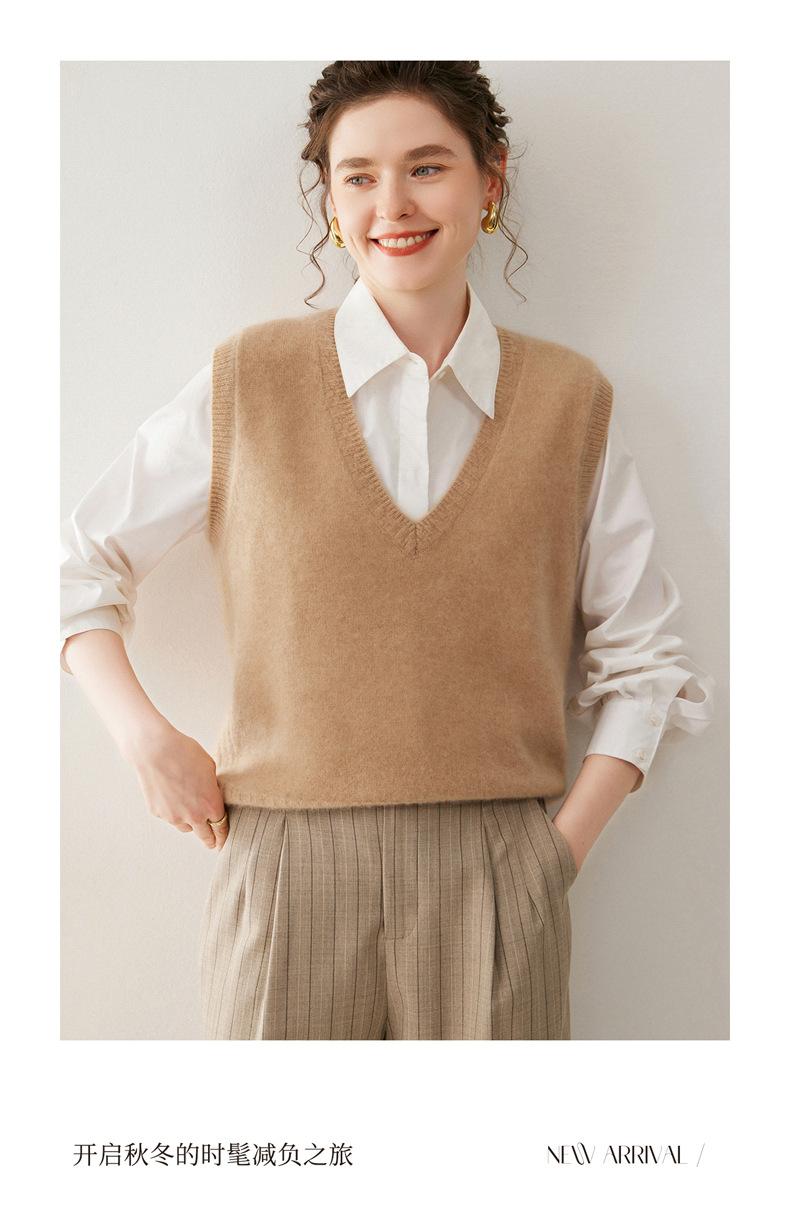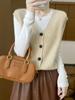 Chaleco de Cachemira con Cuello en V para Otoño e Invierno para Mujer, Suéter sin Mangas Versátil de Color Sólido, Chaleco Cálido, Top Holgado para Exterior