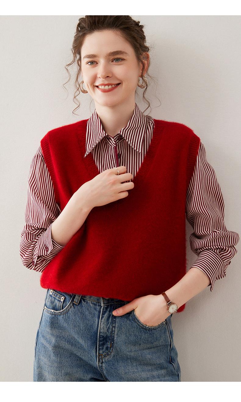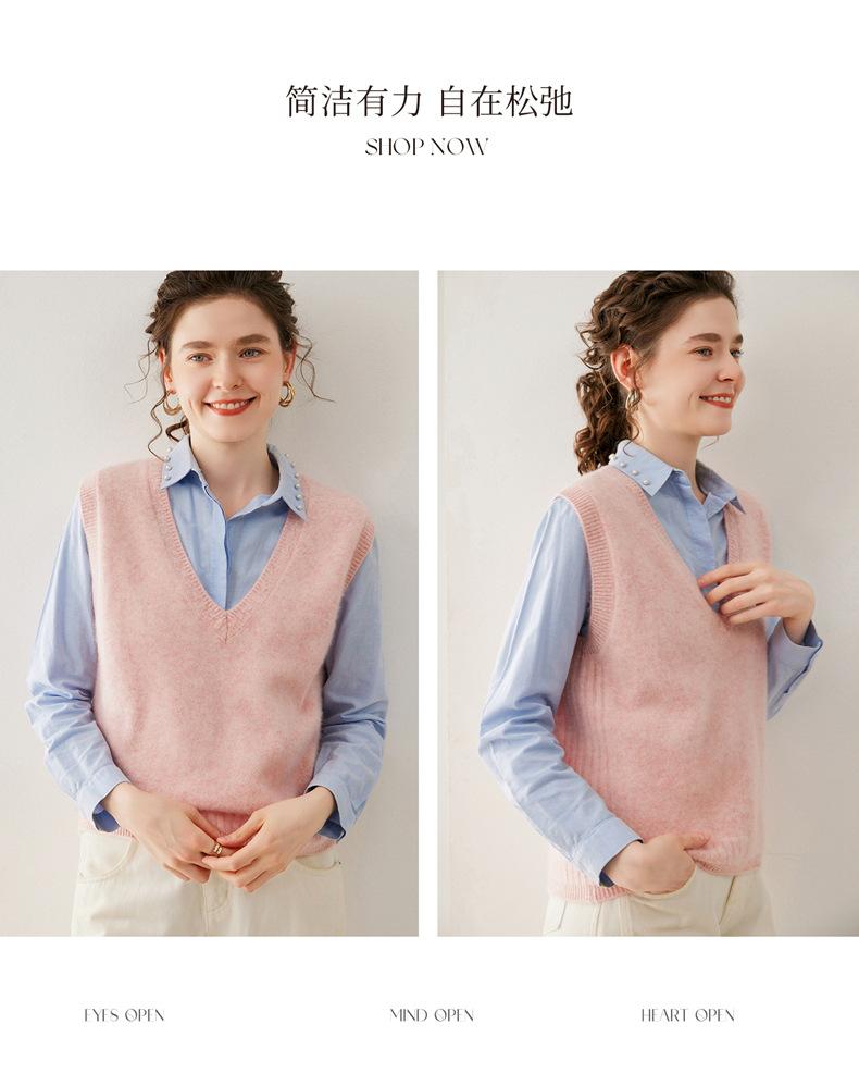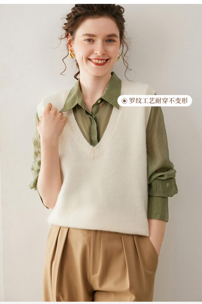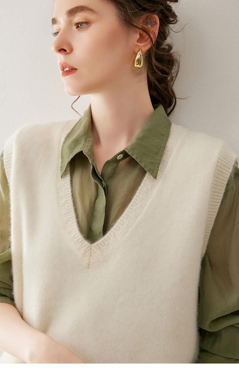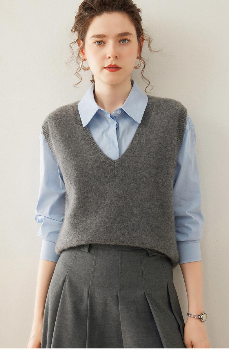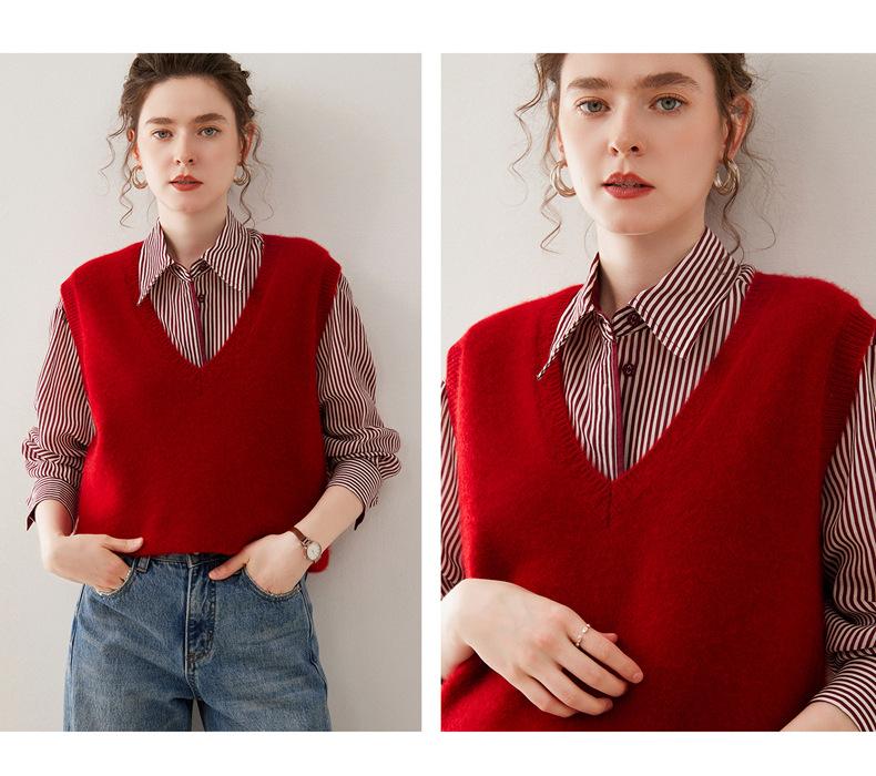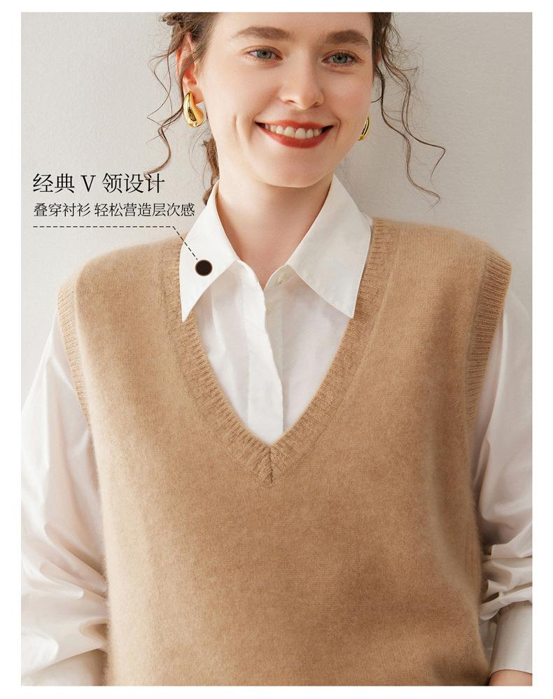 Chaleco de Cachemira con Cuello en V para Otoño e Invierno para Mujer, Suéter sin Mangas Versátil de Color Sólido, Chaleco Cálido, Top Holgado para Exterior