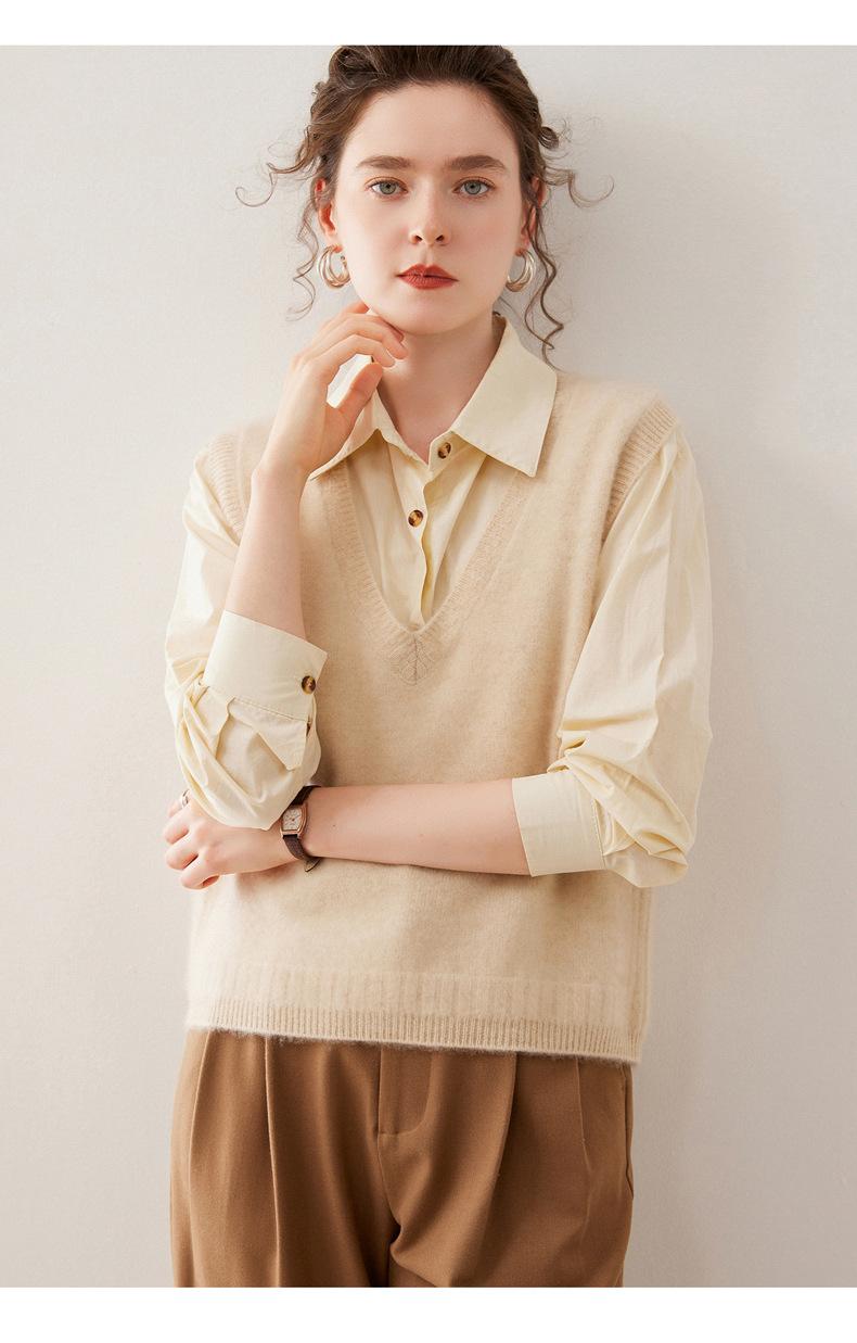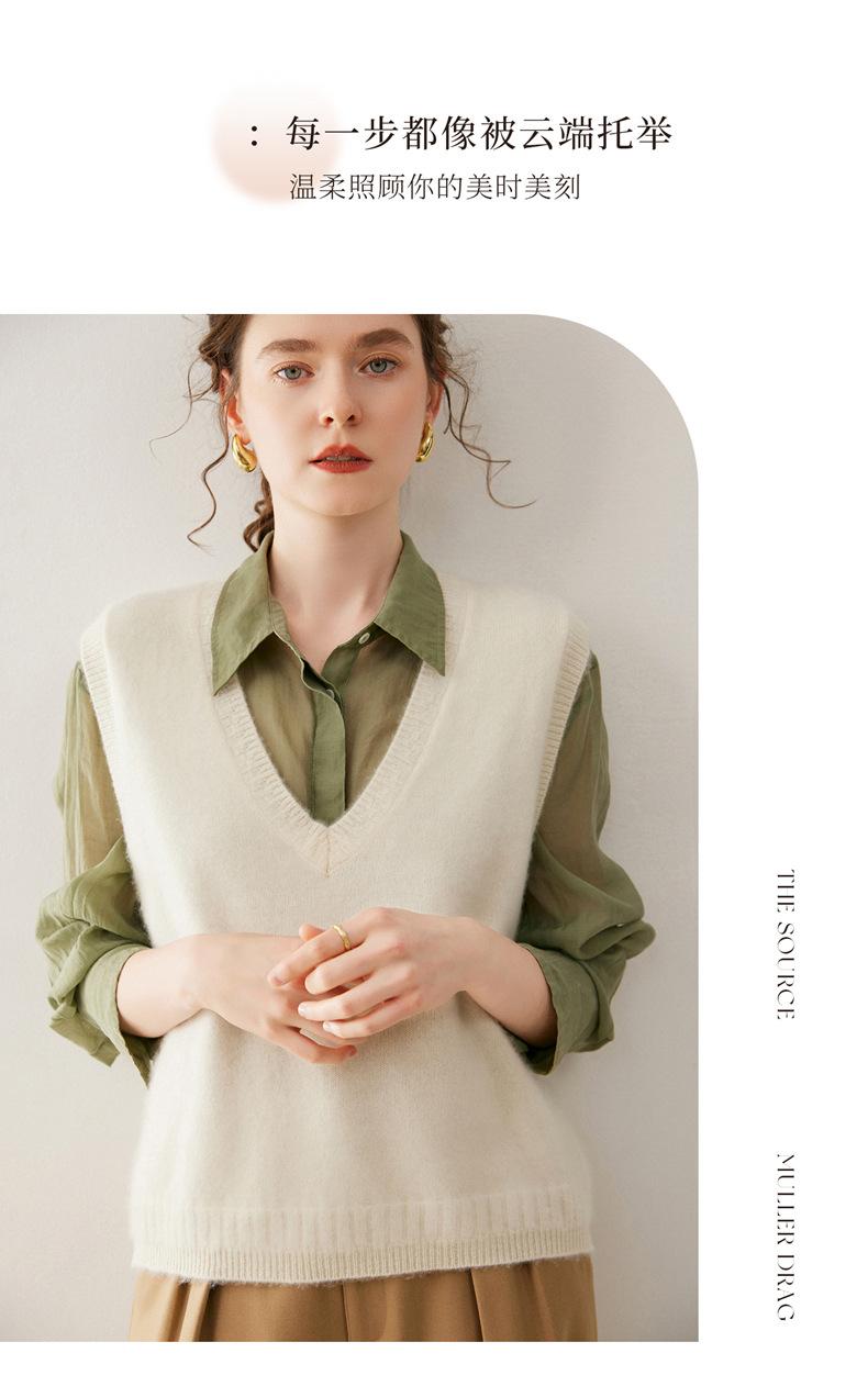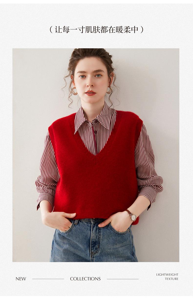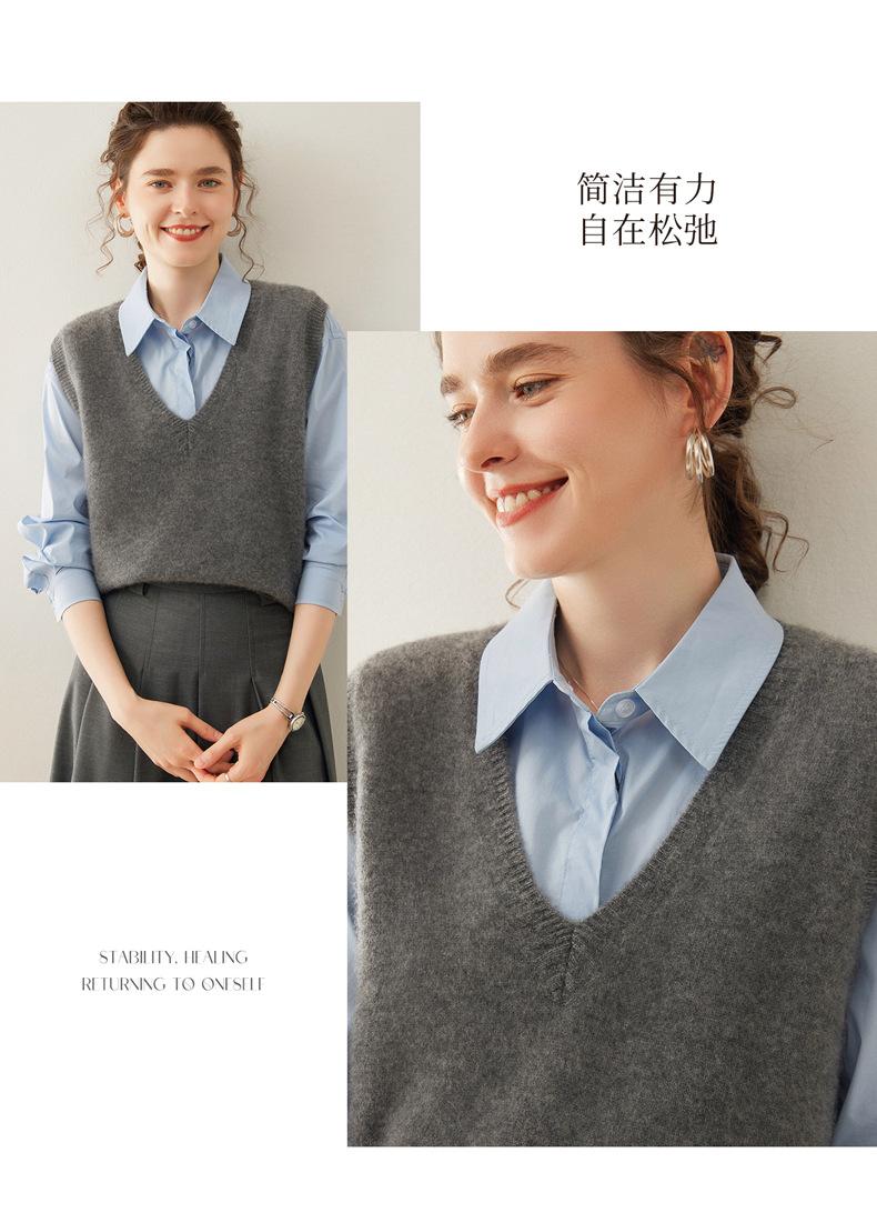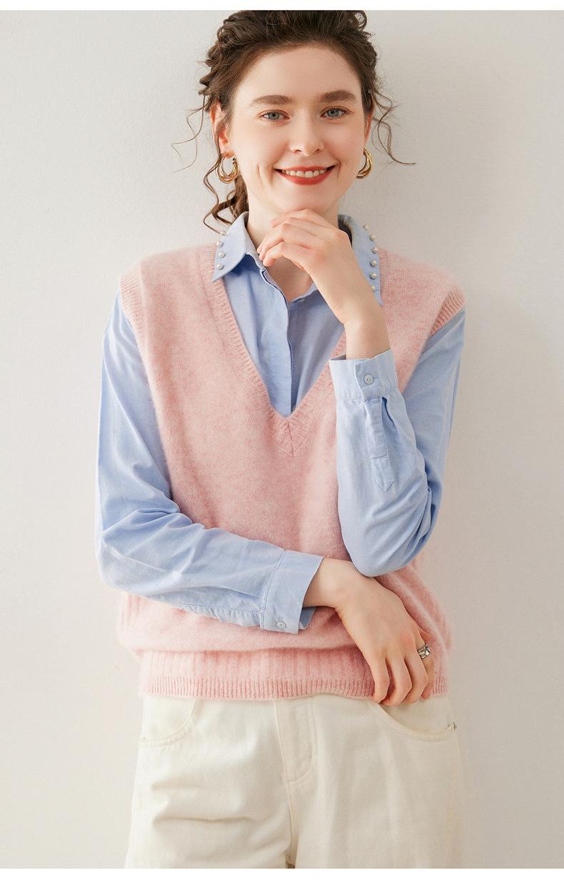 Chaleco de Cachemira con Cuello en V para Otoño e Invierno para Mujer, Suéter sin Mangas Versátil de Color Sólido, Chaleco Cálido, Top Holgado para Exterior