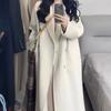 Abrigo de lana nuevo para mujer de 200 jin, largo hasta la rodilla, holgado, de talla grande, 2025 otoño/invierno nuevo