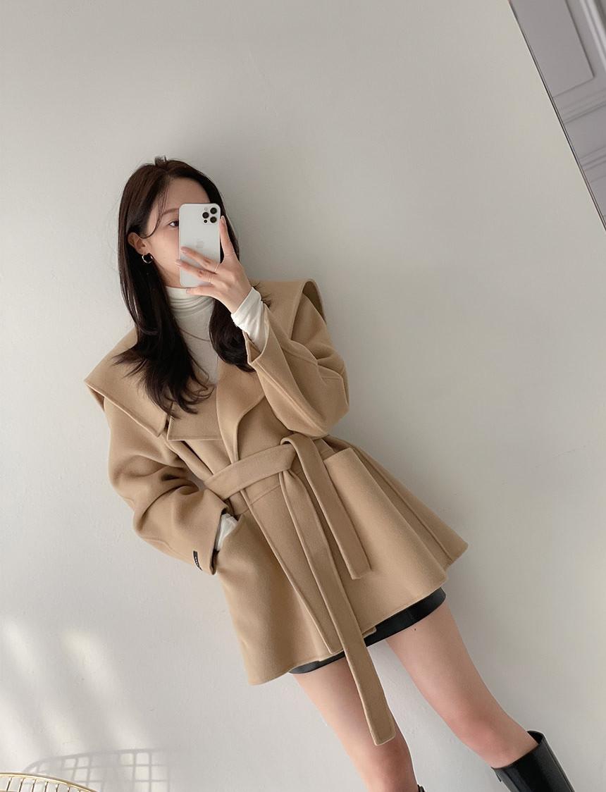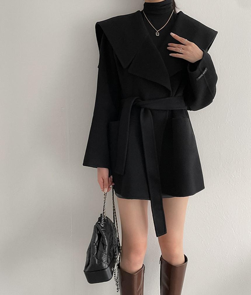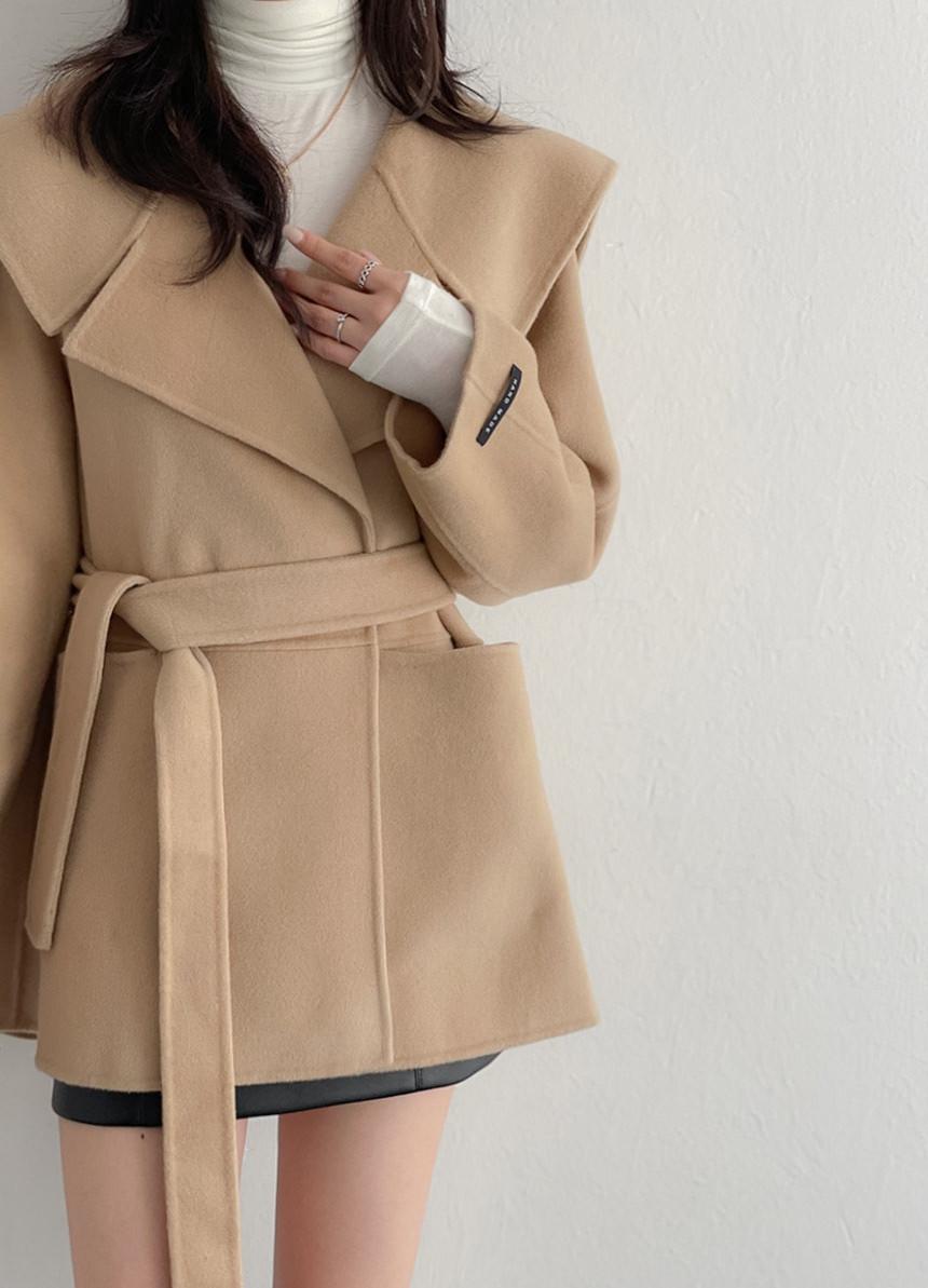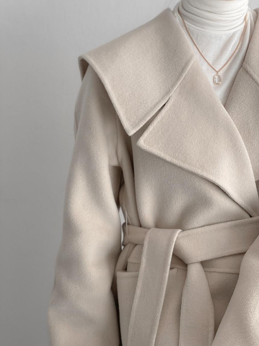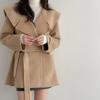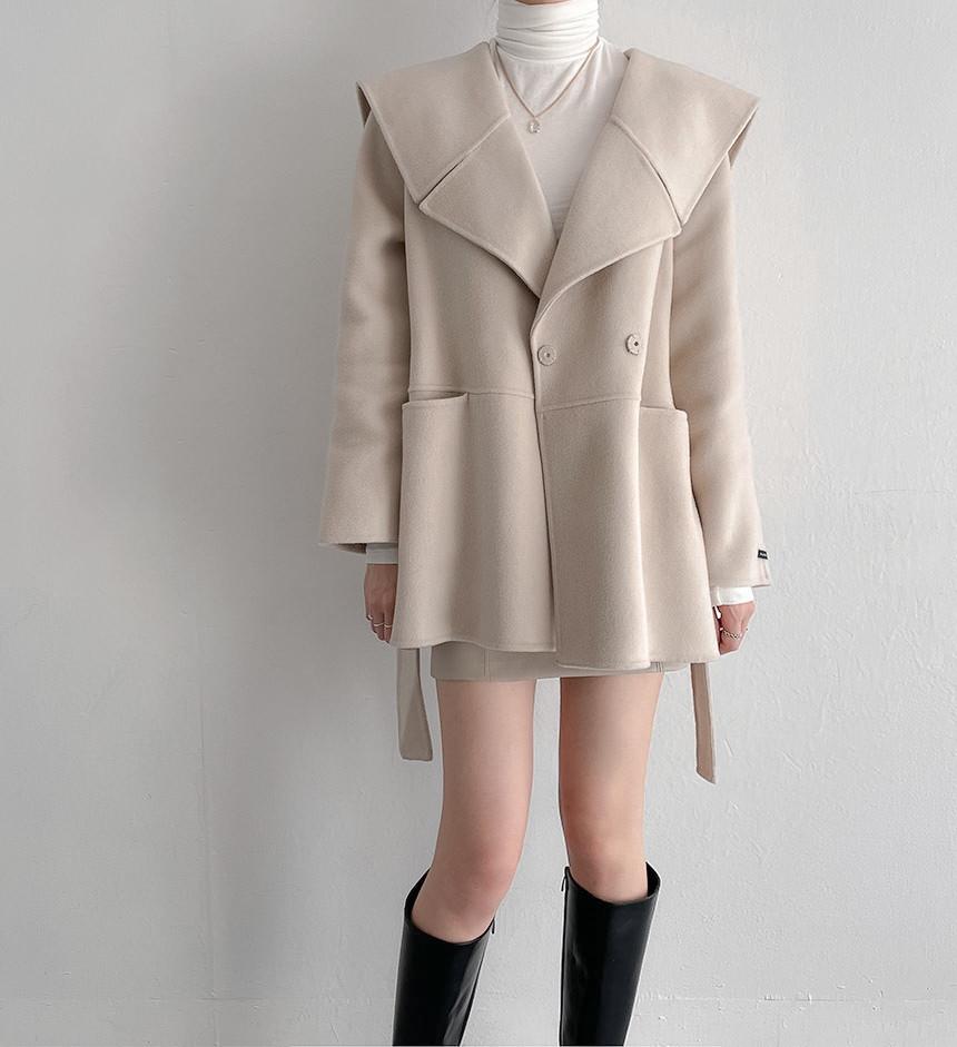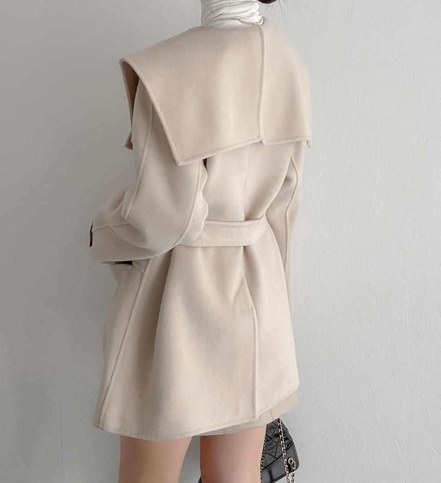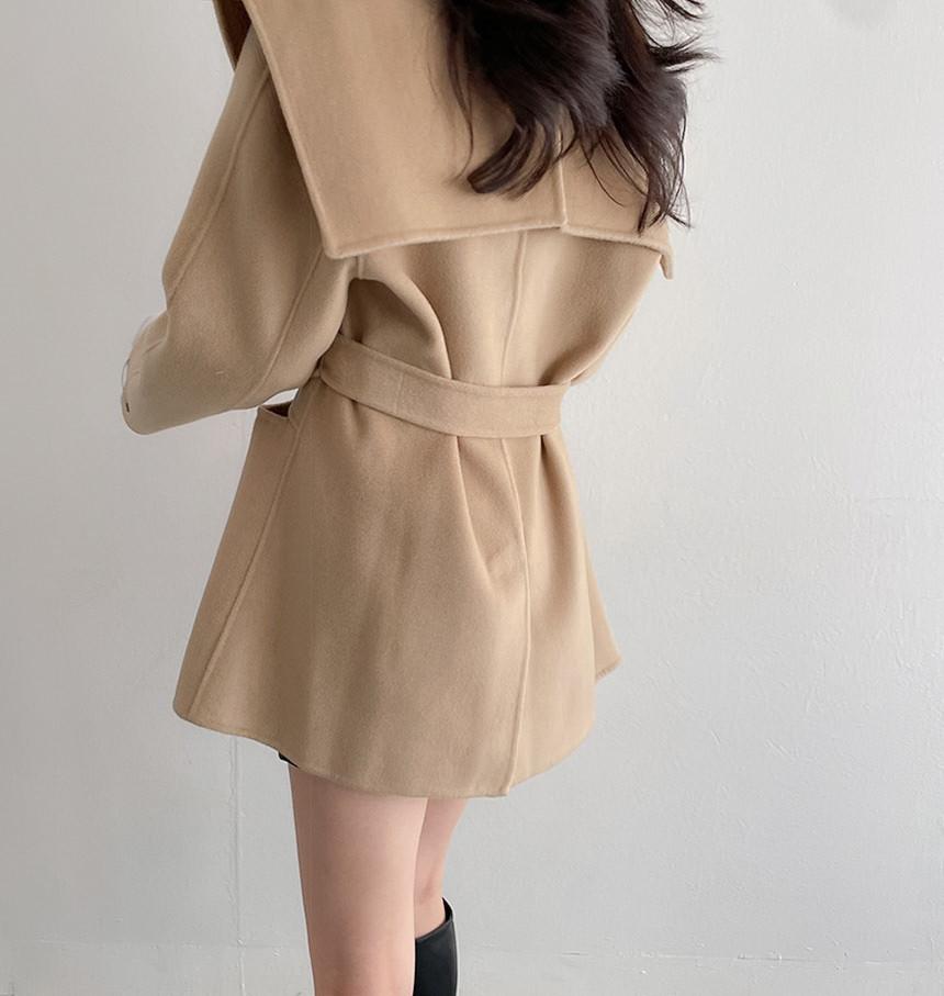 En stock estilo coreano temperamento retro moda chic solapa grande petite abrigo de lana con cinturón abrigo de lana mujer