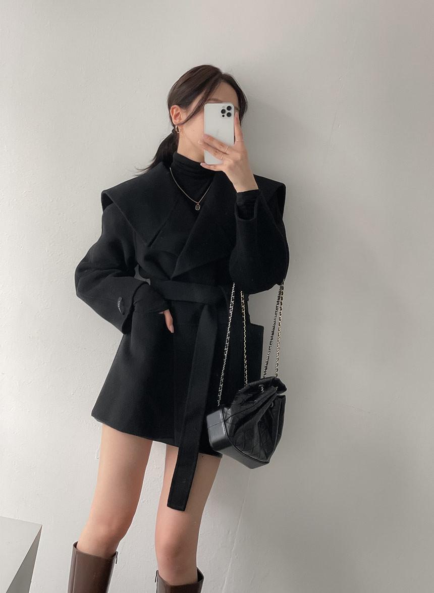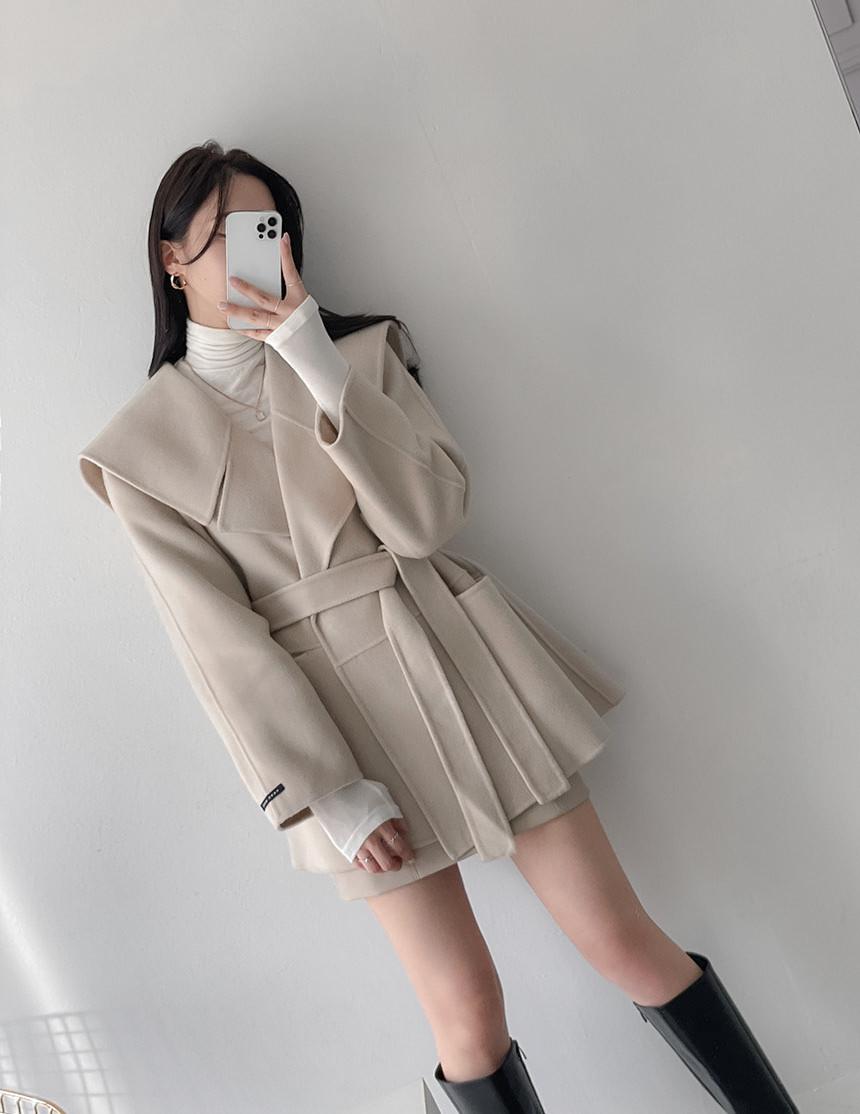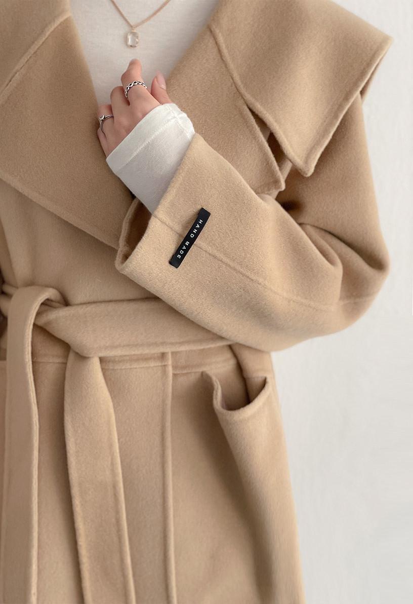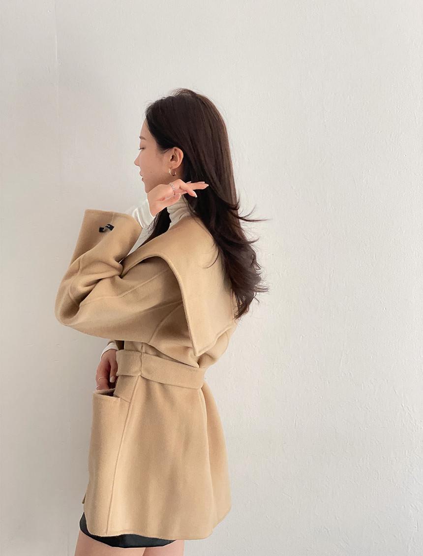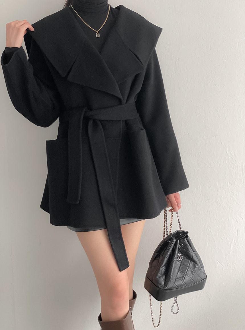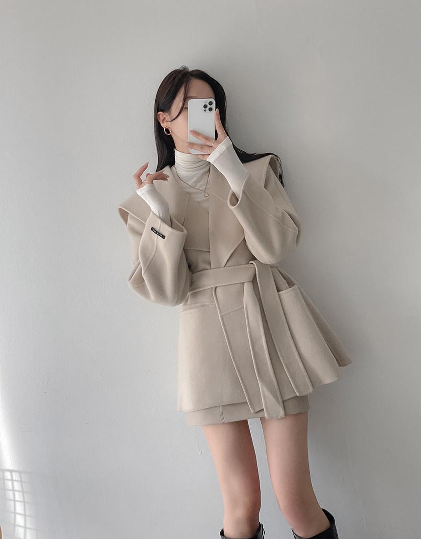 En stock estilo coreano temperamento retro moda chic solapa grande petite abrigo de lana con cinturón abrigo de lana mujer