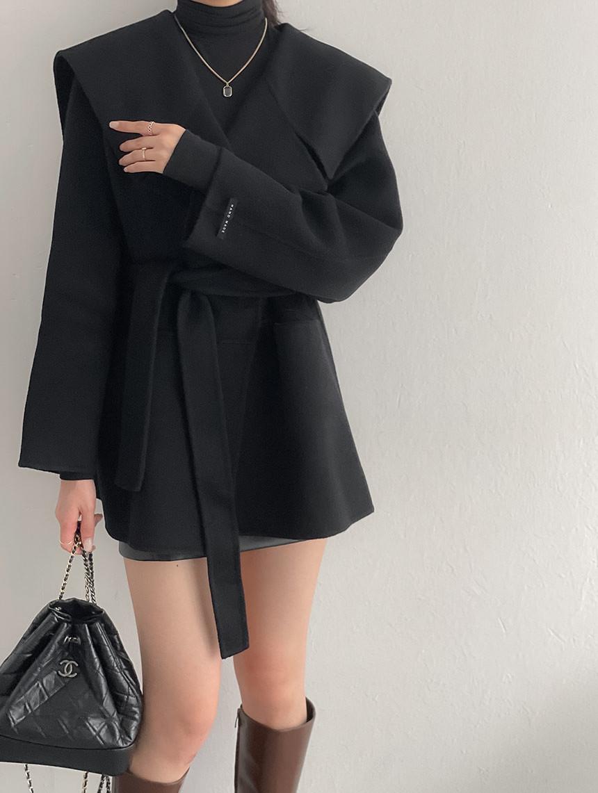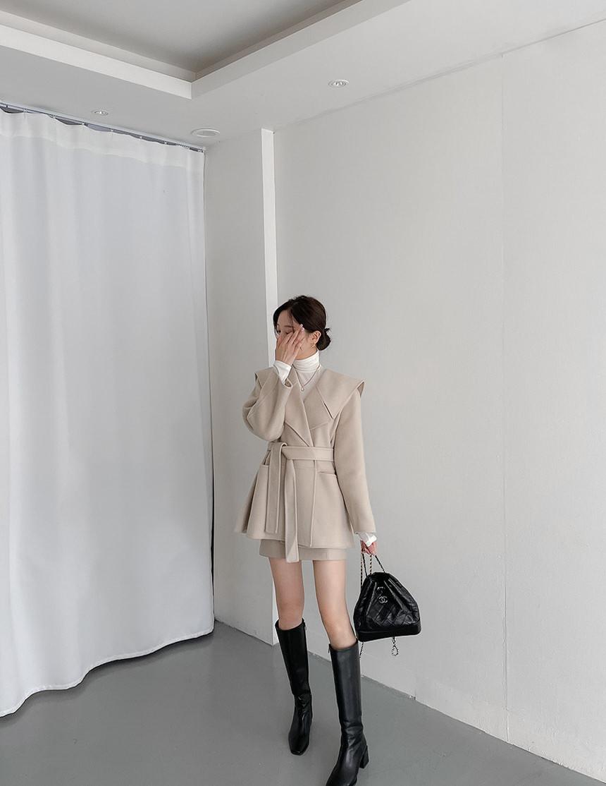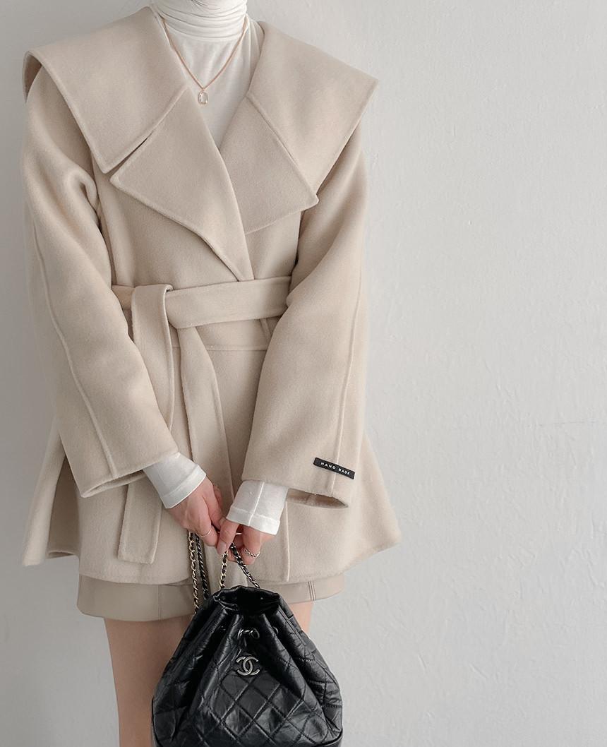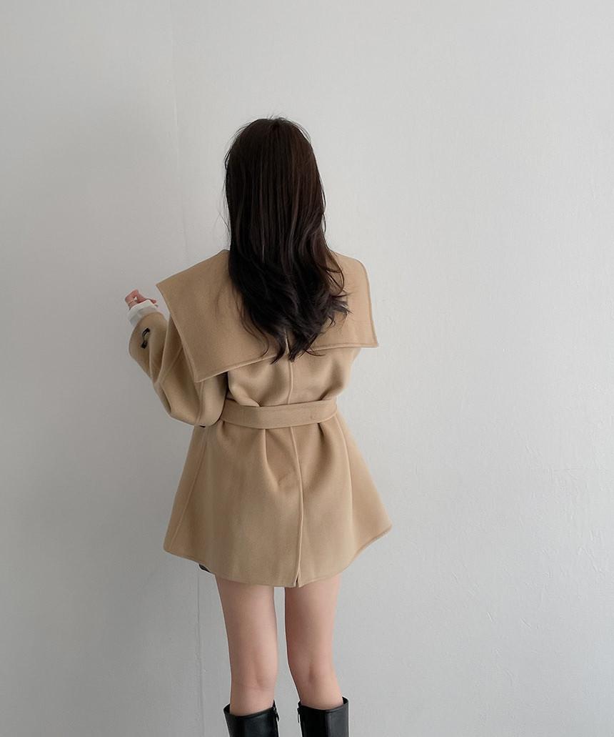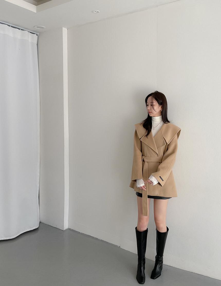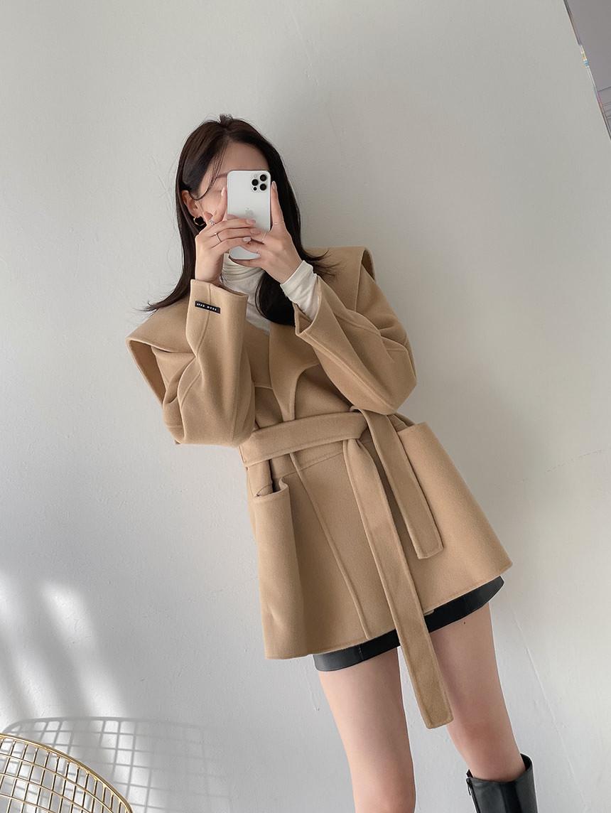 En stock estilo coreano temperamento retro moda chic solapa grande petite abrigo de lana con cinturón abrigo de lana mujer