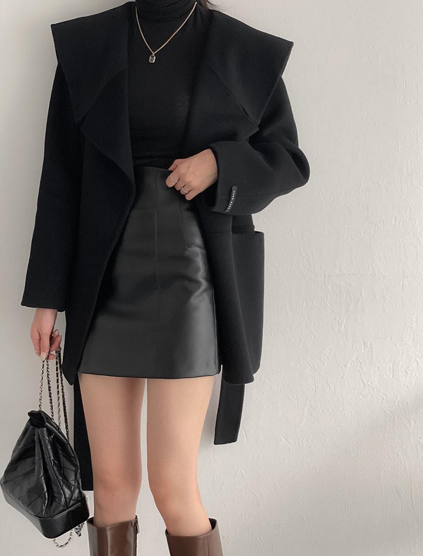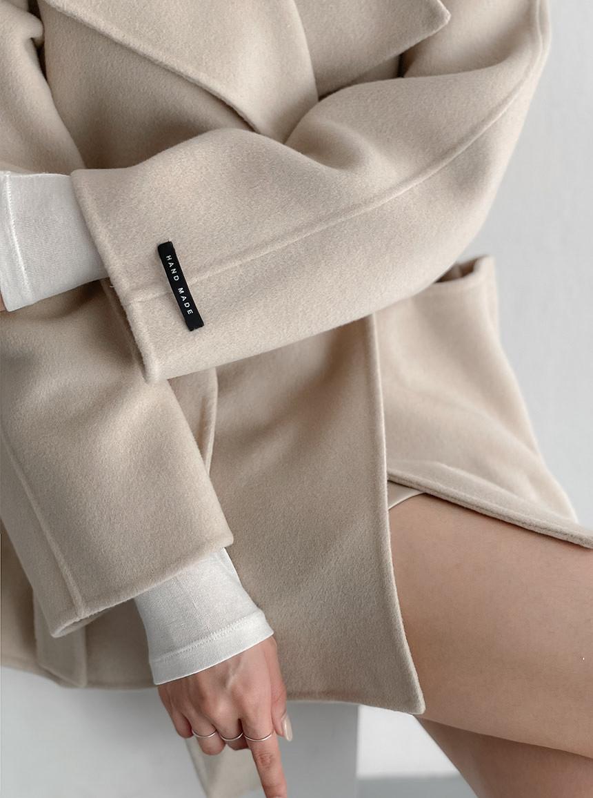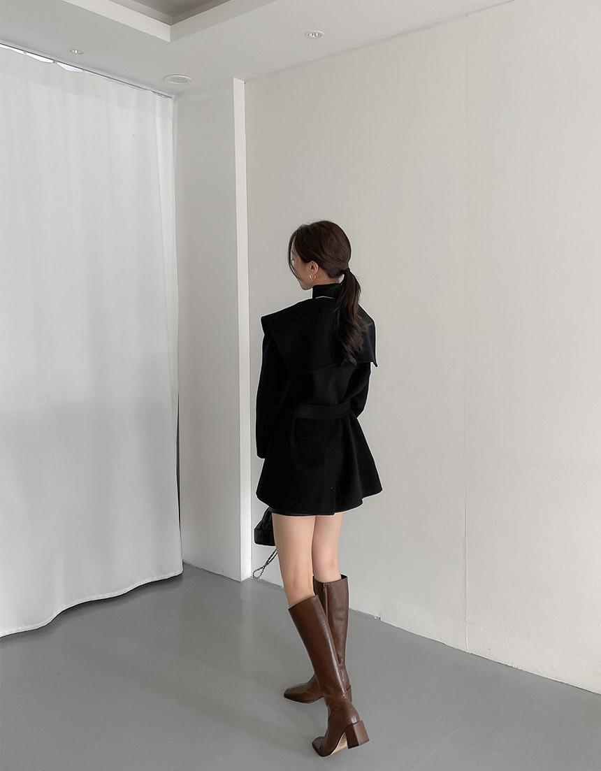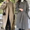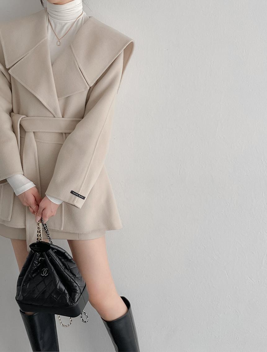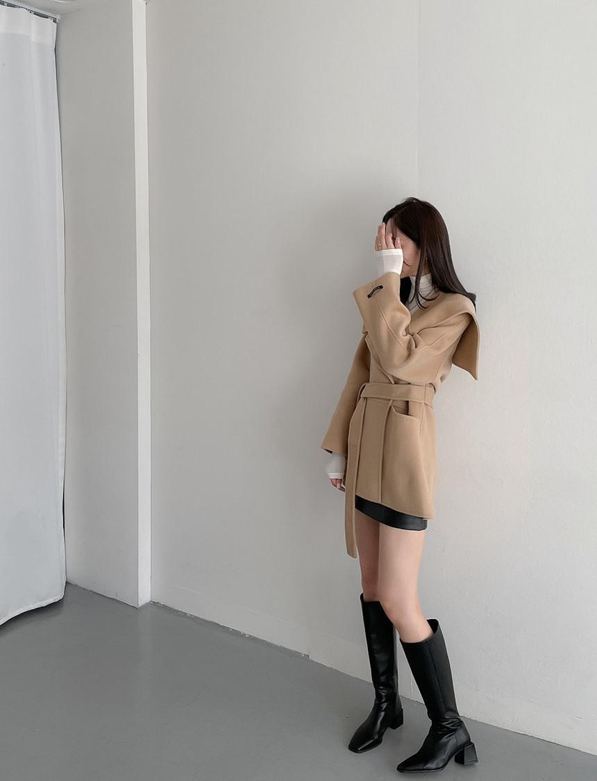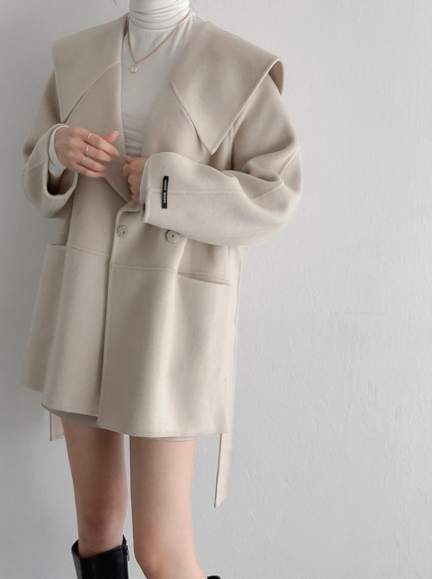 En stock estilo coreano temperamento retro moda chic solapa grande petite abrigo de lana con cinturón abrigo de lana mujer