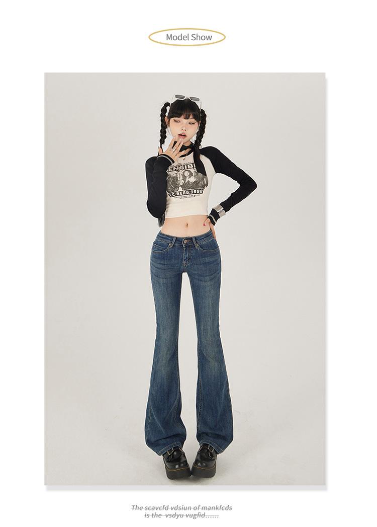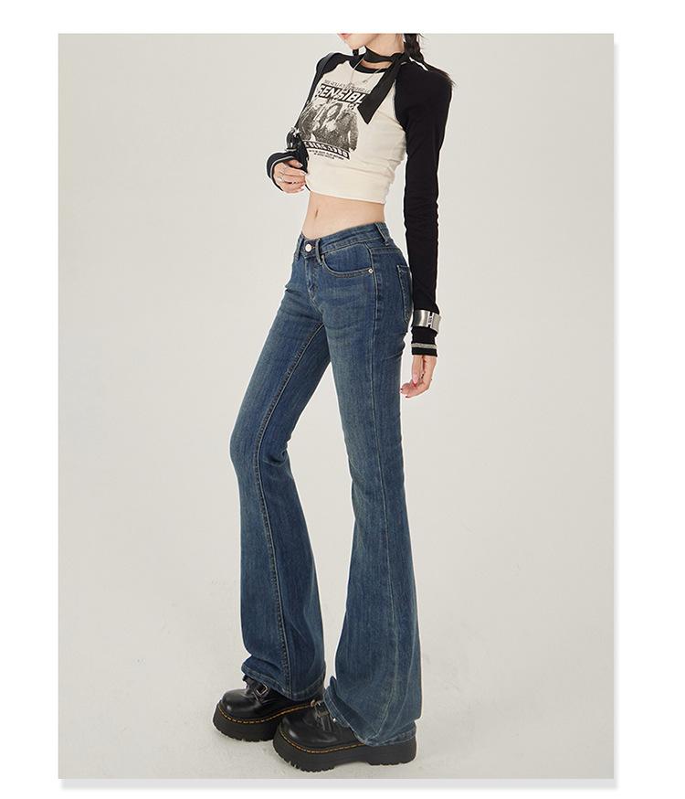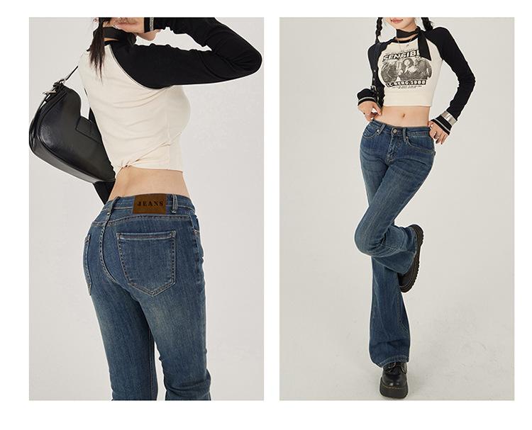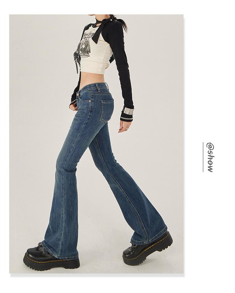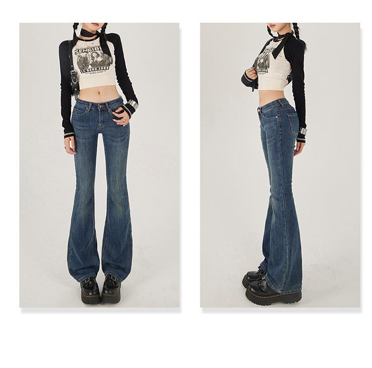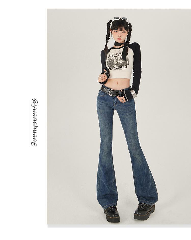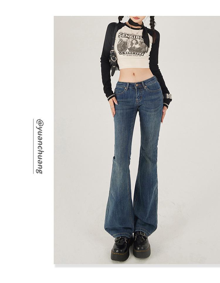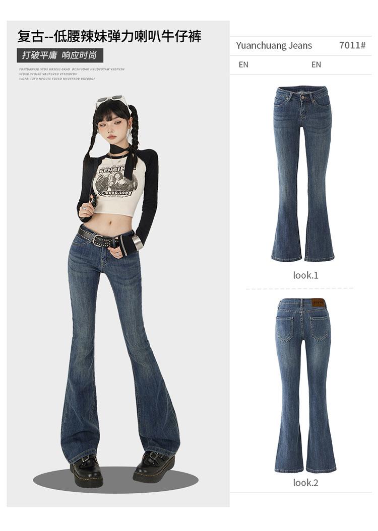 YC & American Spice Girls Retro Cintura Baja Ajuste Slim Slim Todo Combinable Elástico Jeans Acampanados Mujer & Pantalones Largos