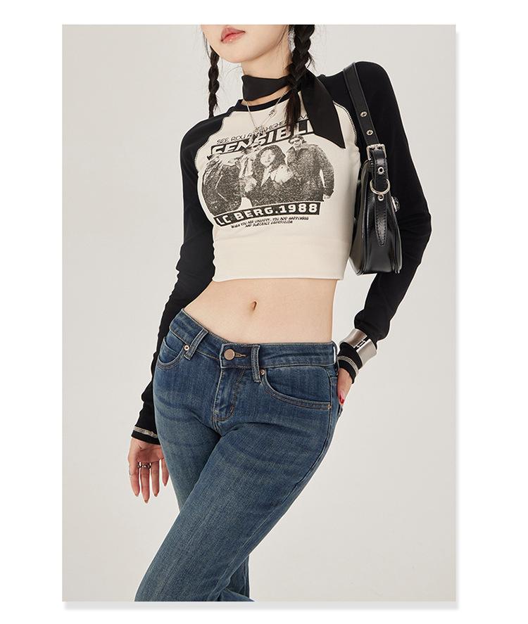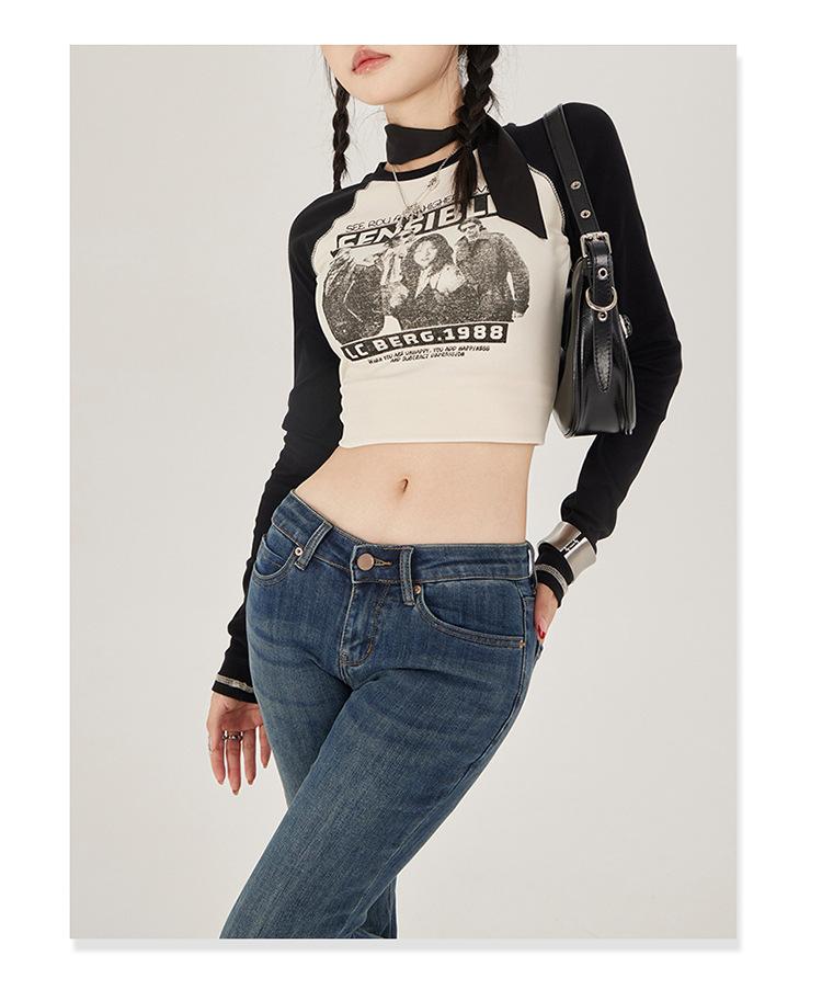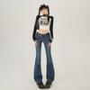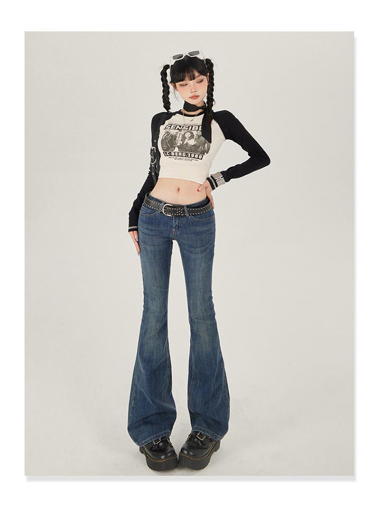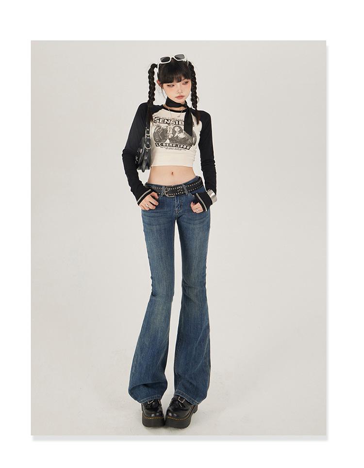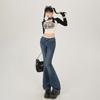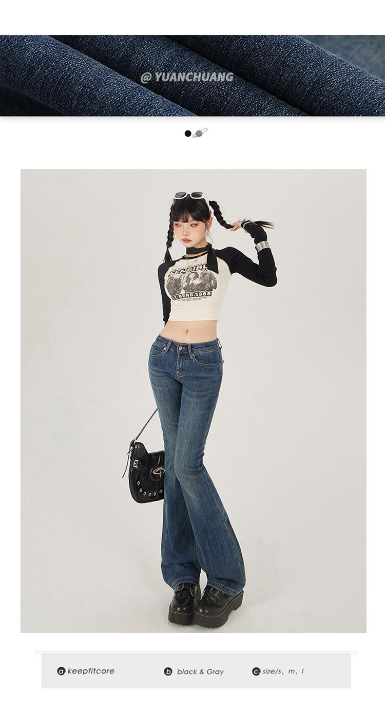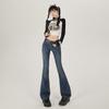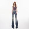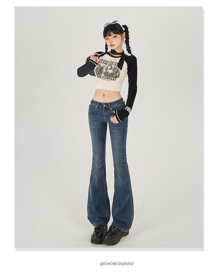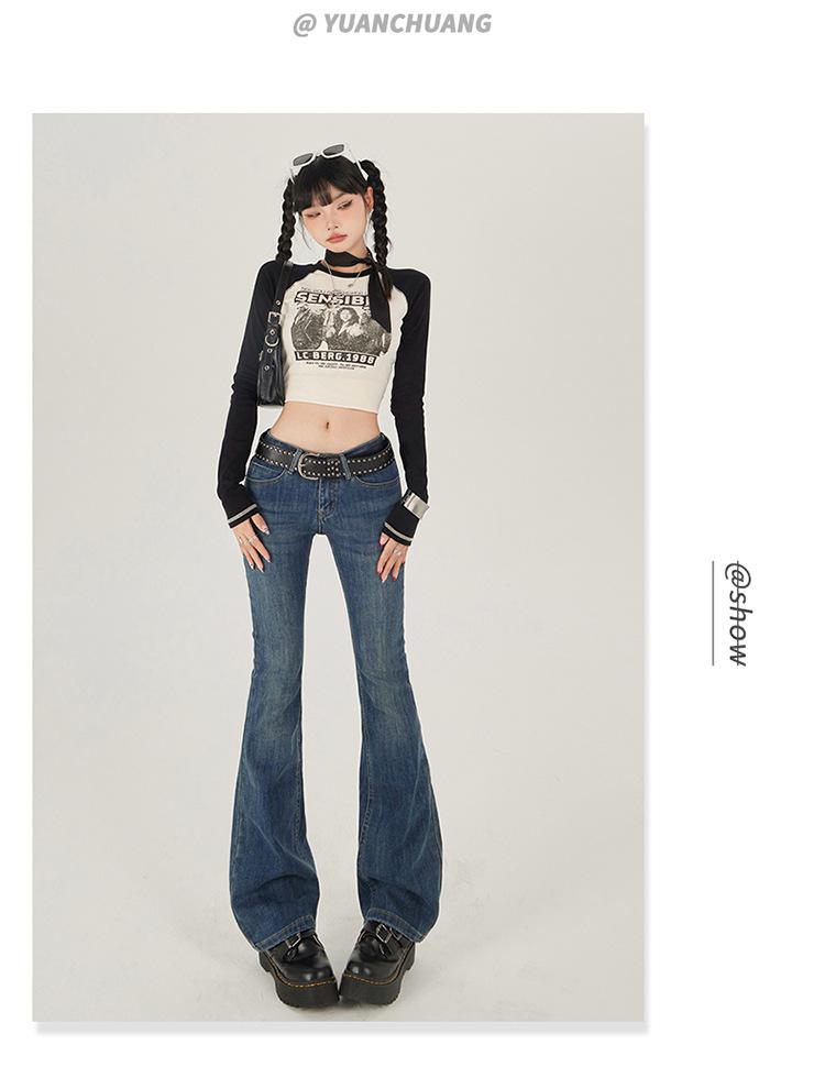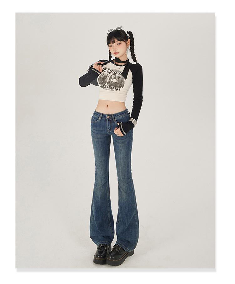 YC & American Spice Girls Retro Cintura Baja Ajuste Slim Slim Todo Combinable Elástico Jeans Acampanados Mujer & Pantalones Largos