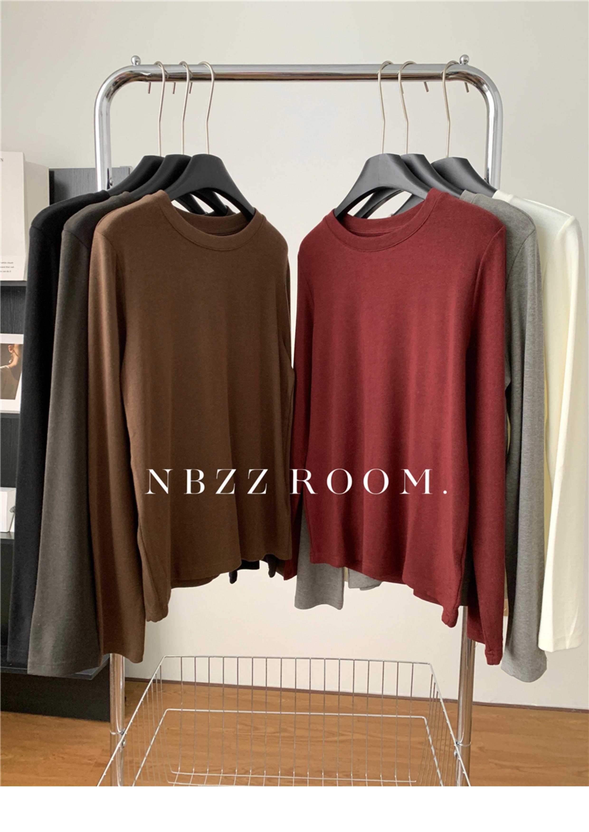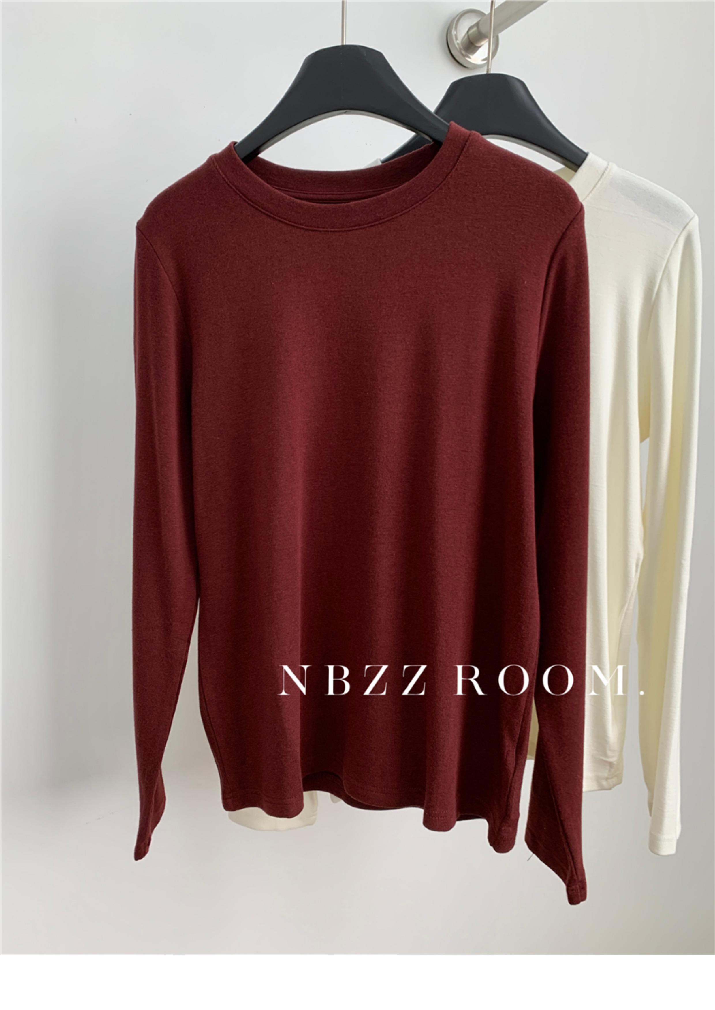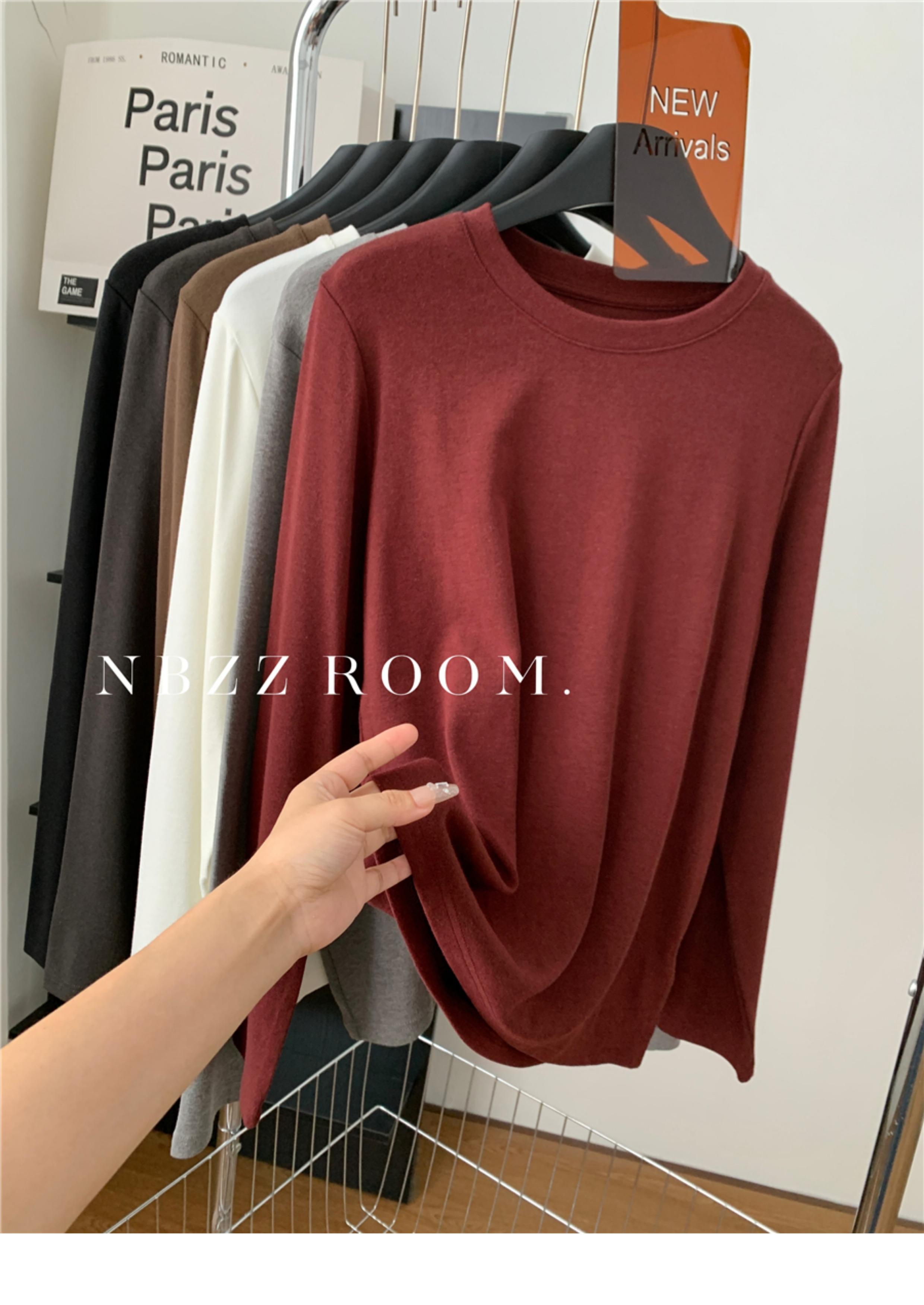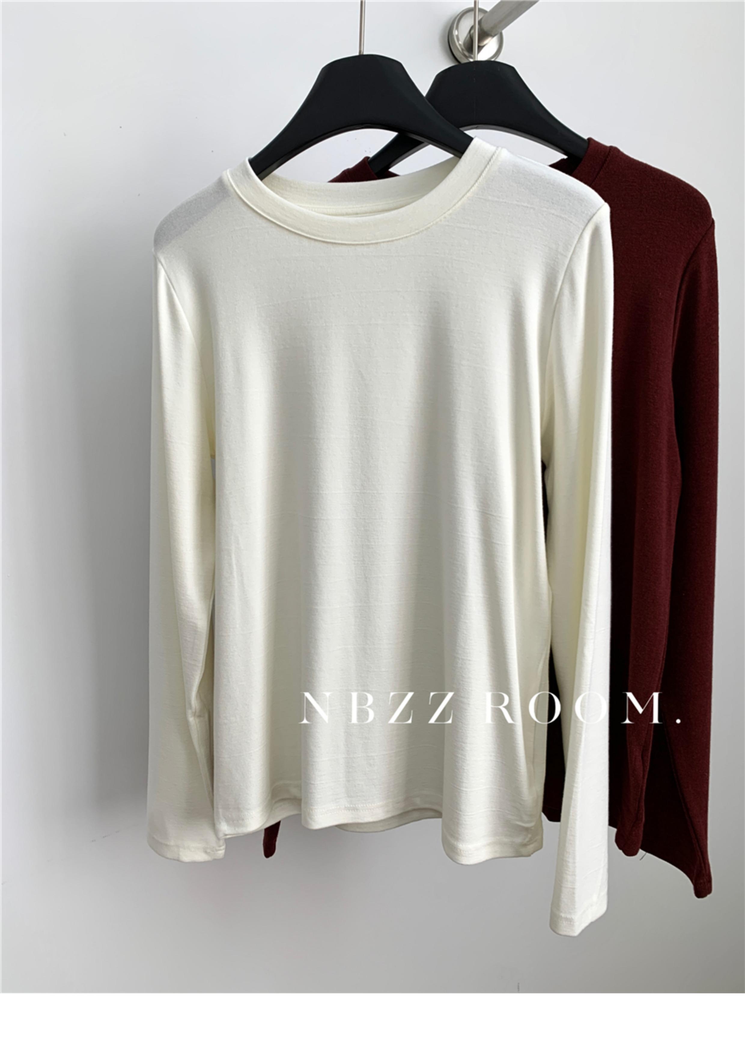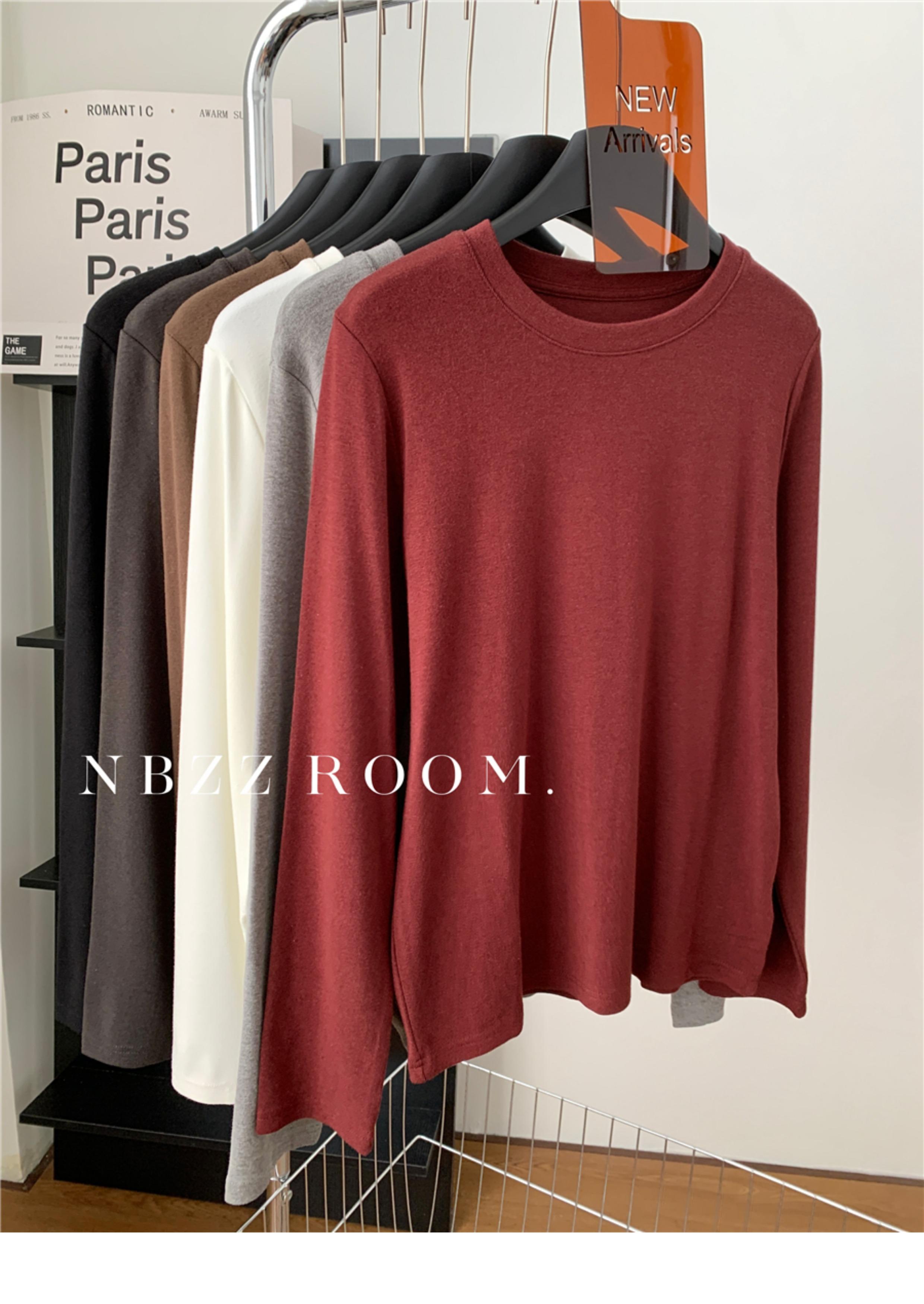 Otoño e Invierno 2024/Suave Cera Elástico Cachemira Cuello Redondo Camiseta de Manga Larga para Mujer Simple Combinable Color Sólido Camisa Base Trendy