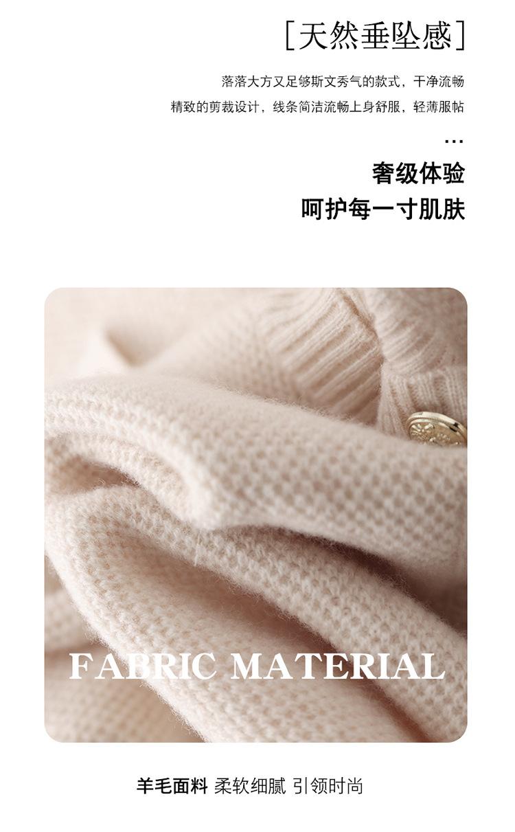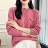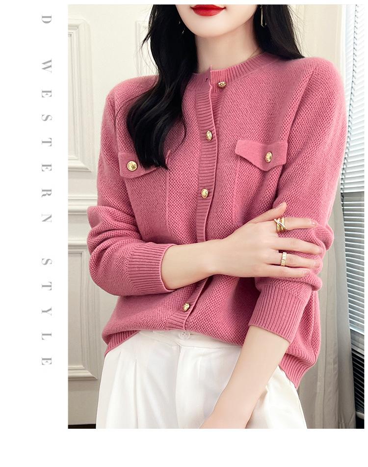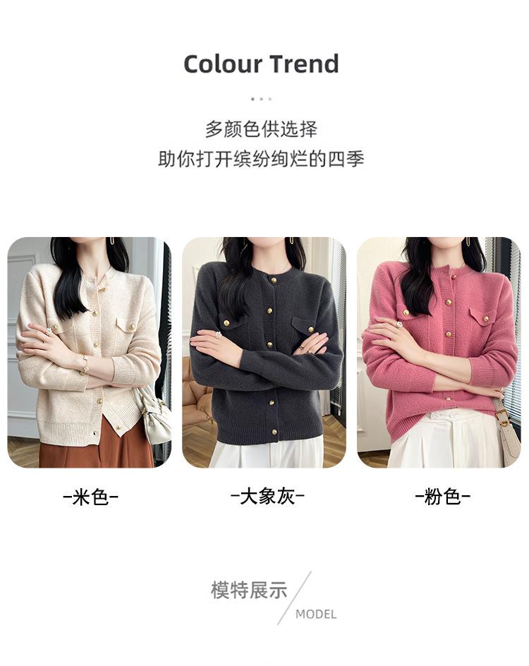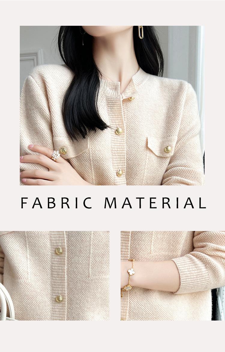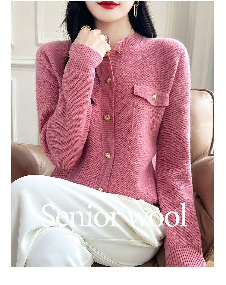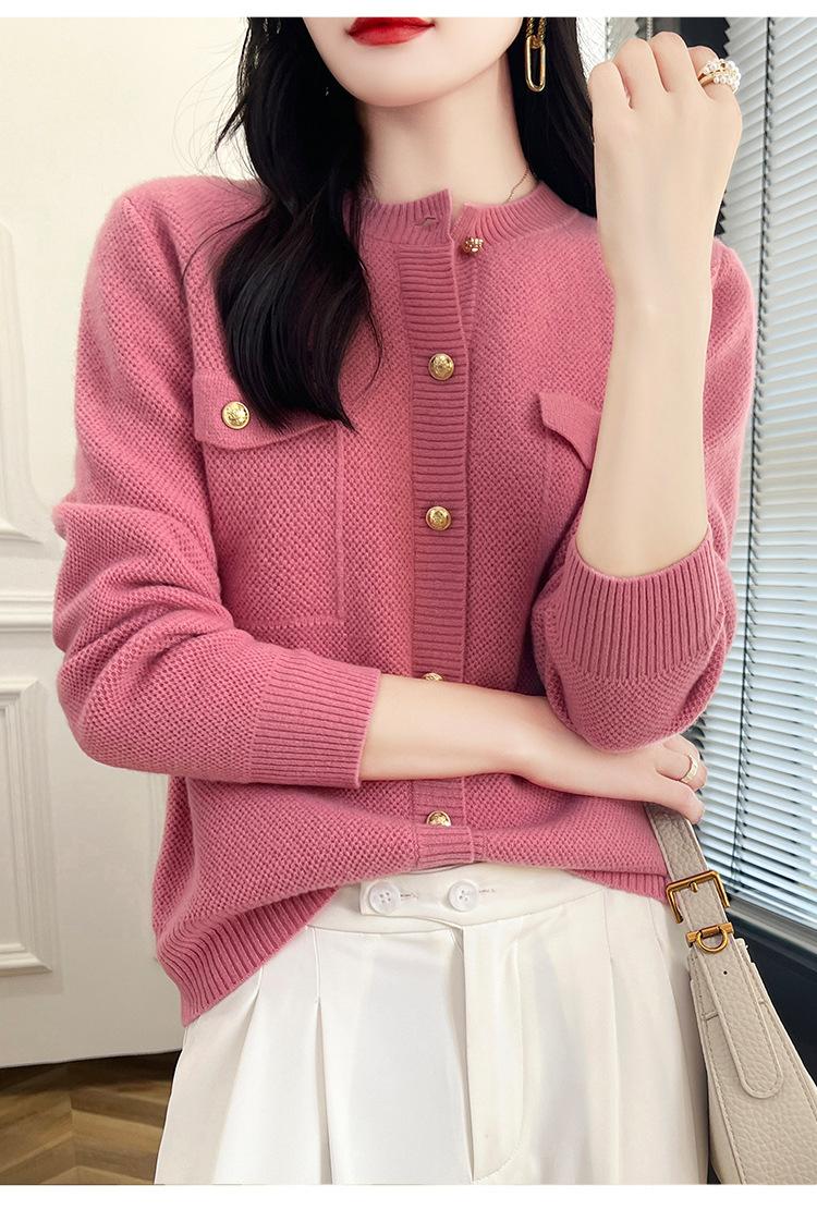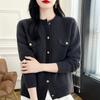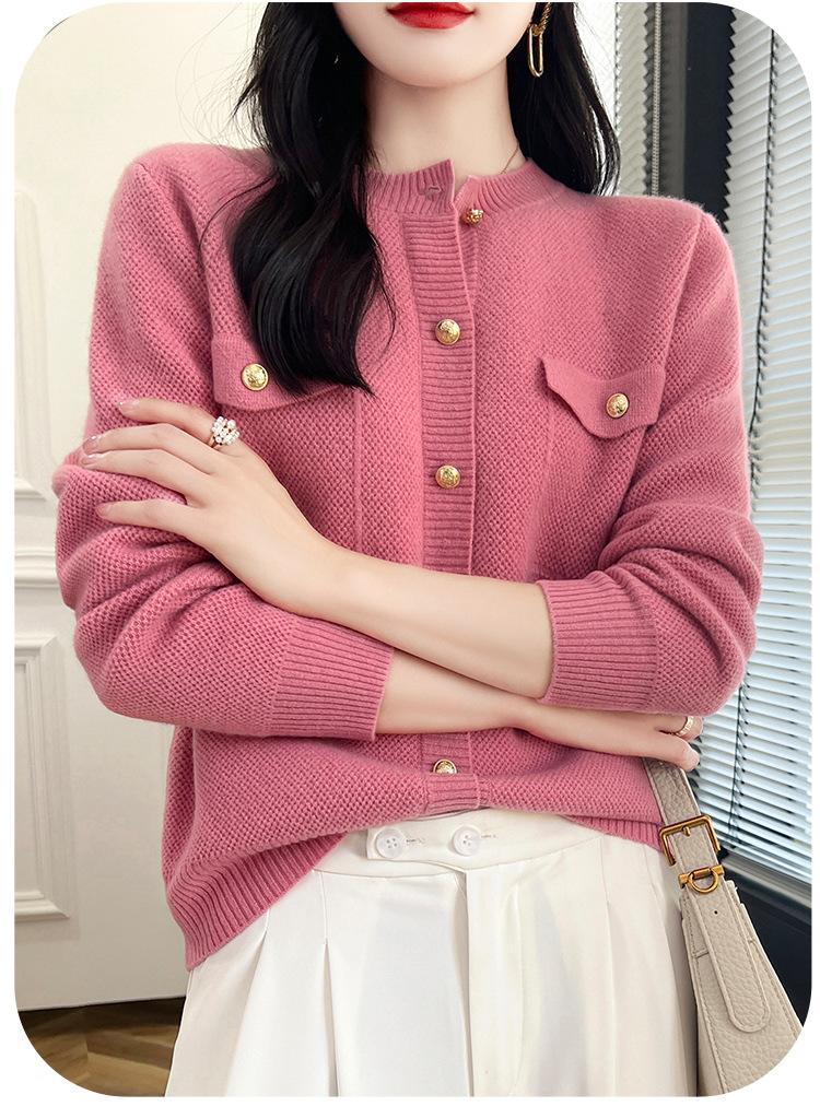 Otoño e Invierno 2024 Nuevo Cárdigan de Punto de Cuello Redondo Estilo Chanel de Lana Pura Color Sólido Bolsillo Suelto Top Combinable