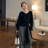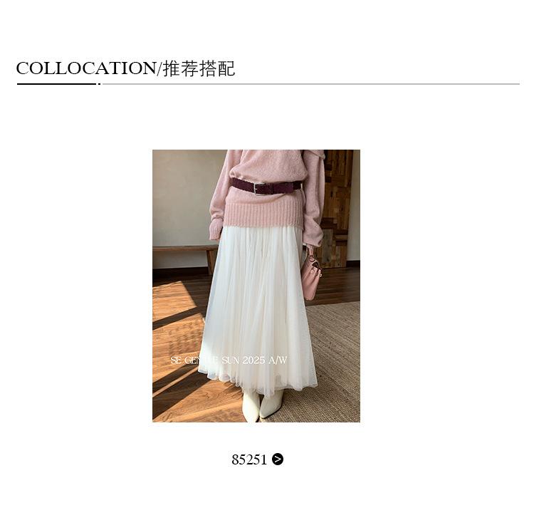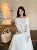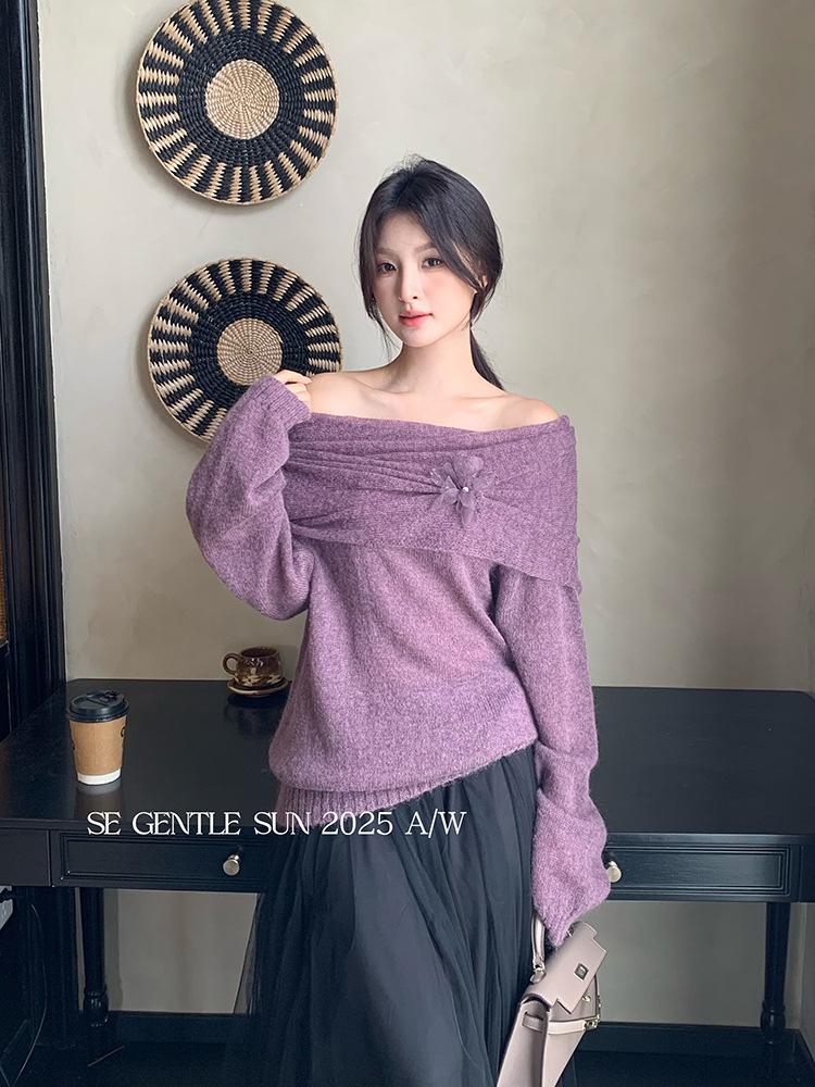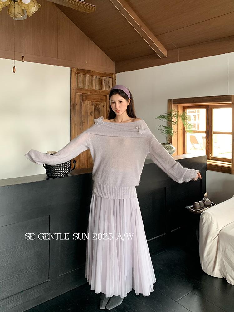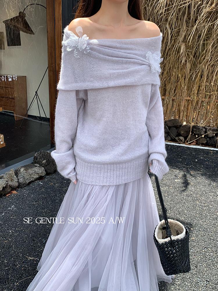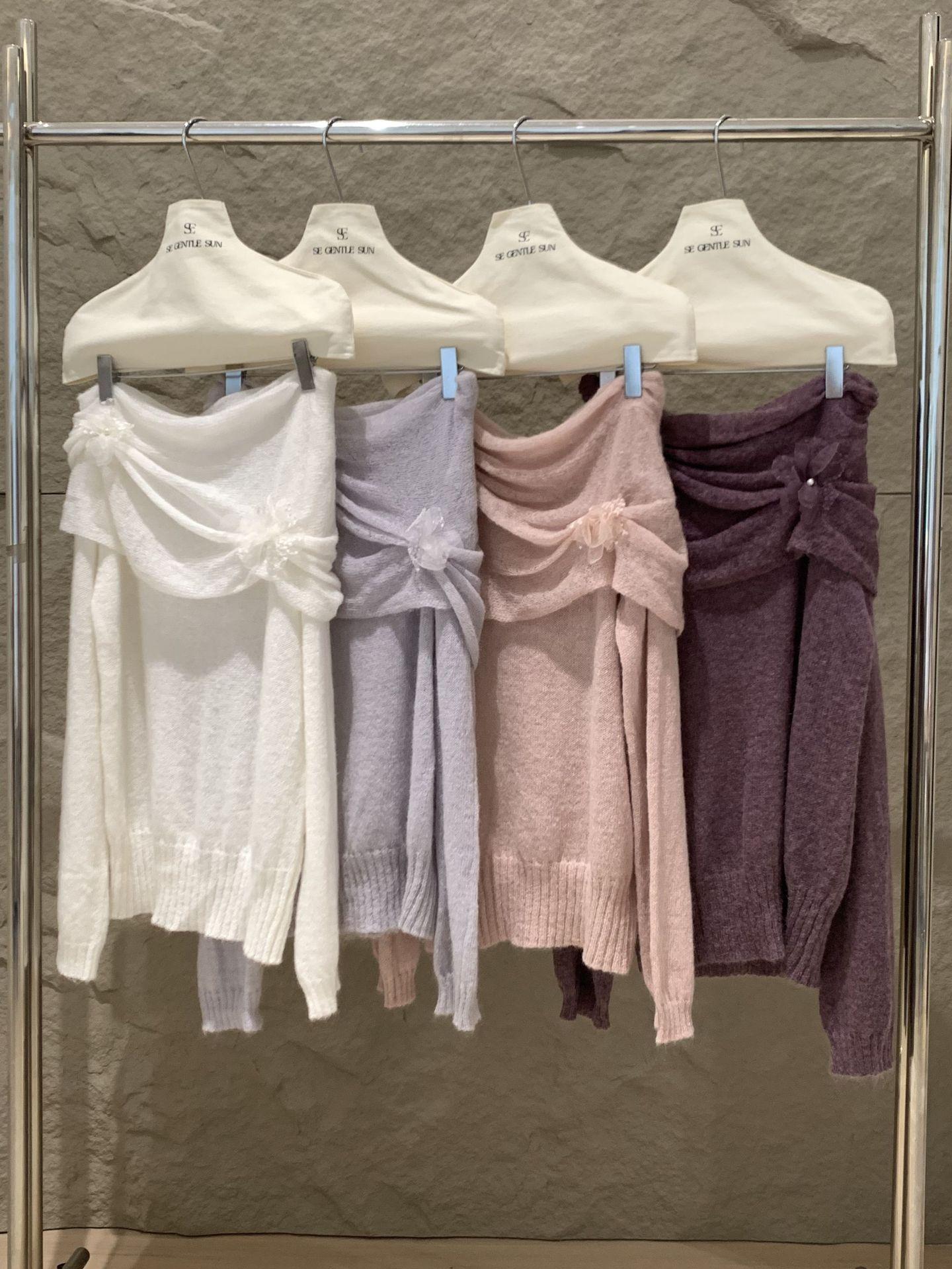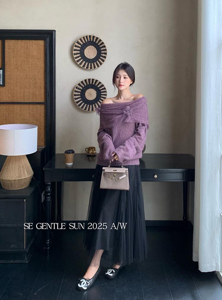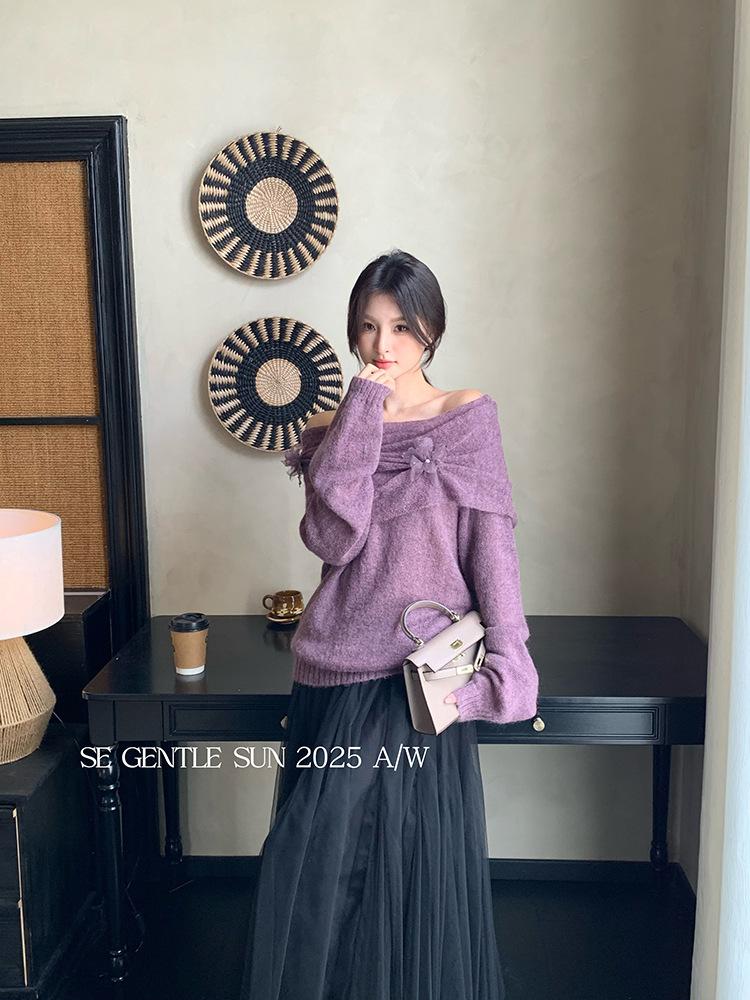 Xiuxixi 2025 Otoño Etiqueta Blanca Temperamento Un Hombro Lana Capa Base Manga Larga Suéter de Punto Top de Mujer 25419
