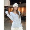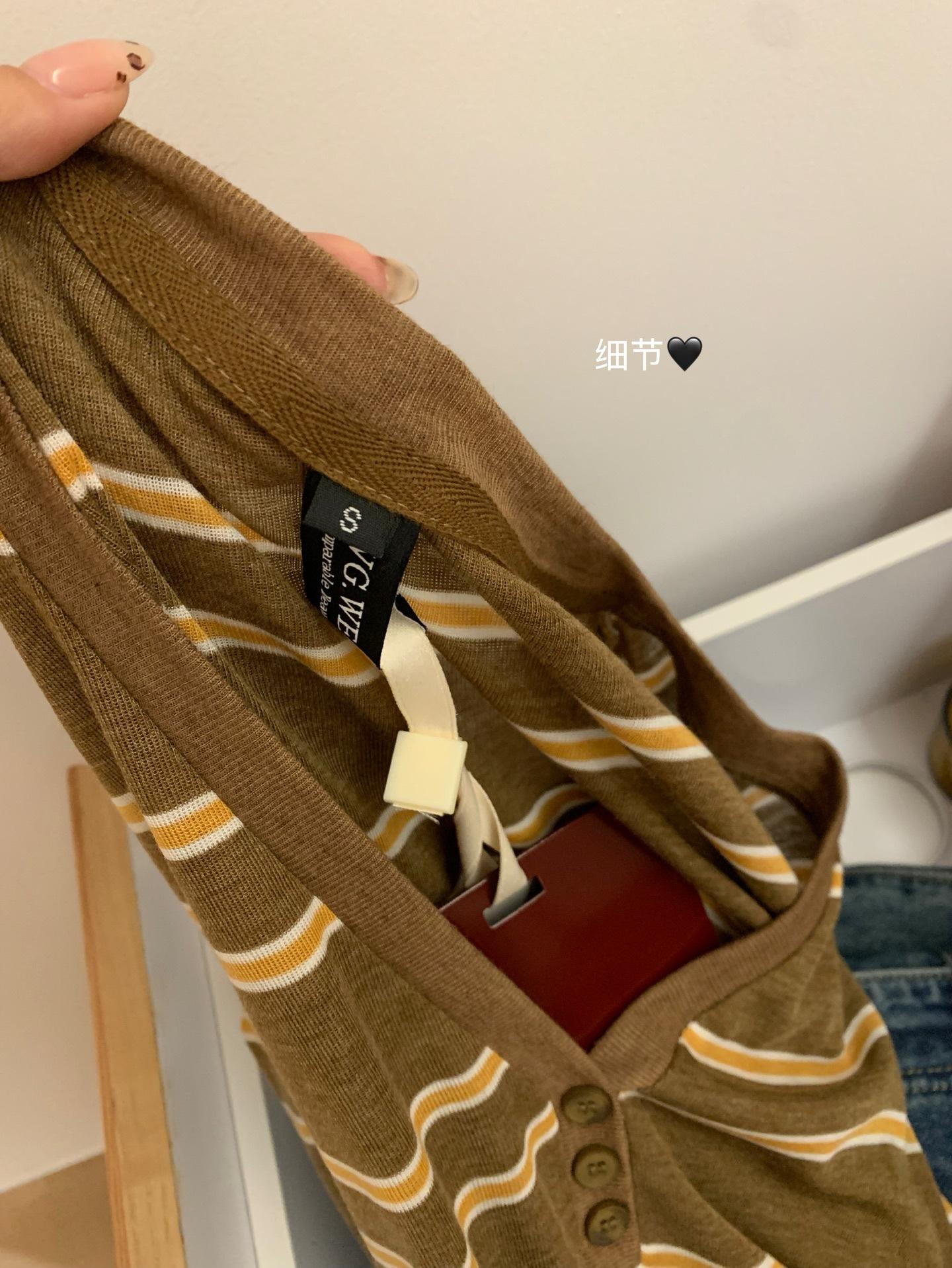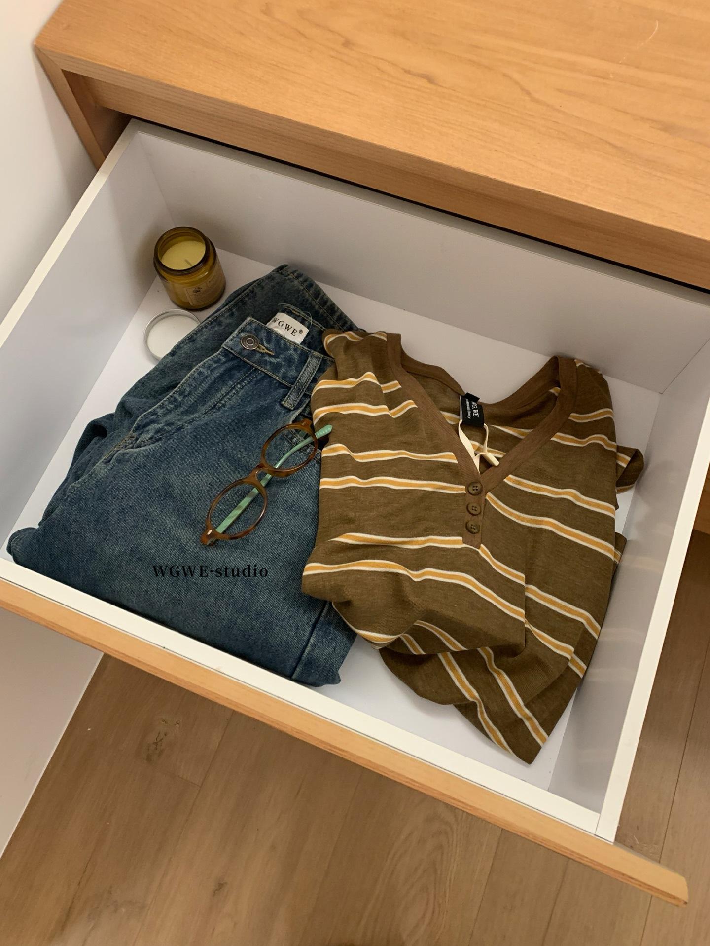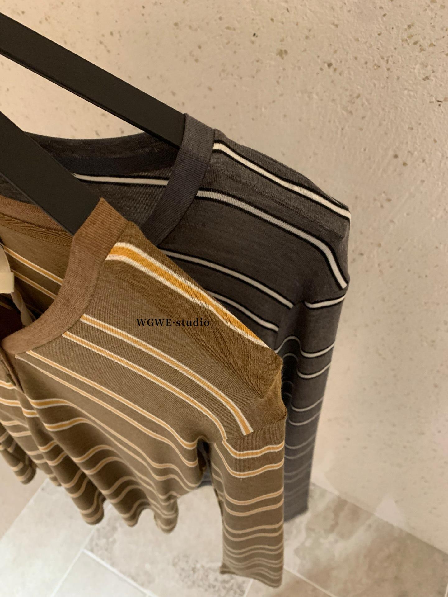 WGWE6972 Trece Líneas Ropa de Mujer 2025 Otoño Nuevo Camiseta de Manga Larga con Cuello en V a Rayas Top Delgado Suelto Casual