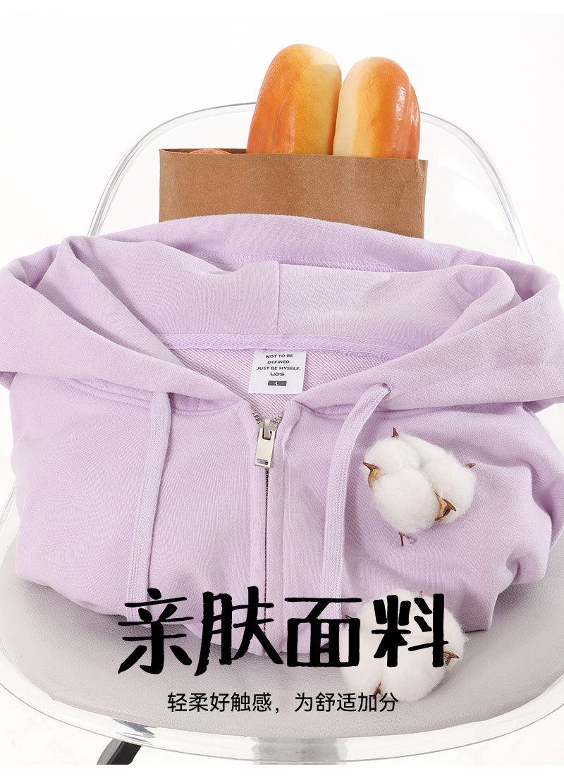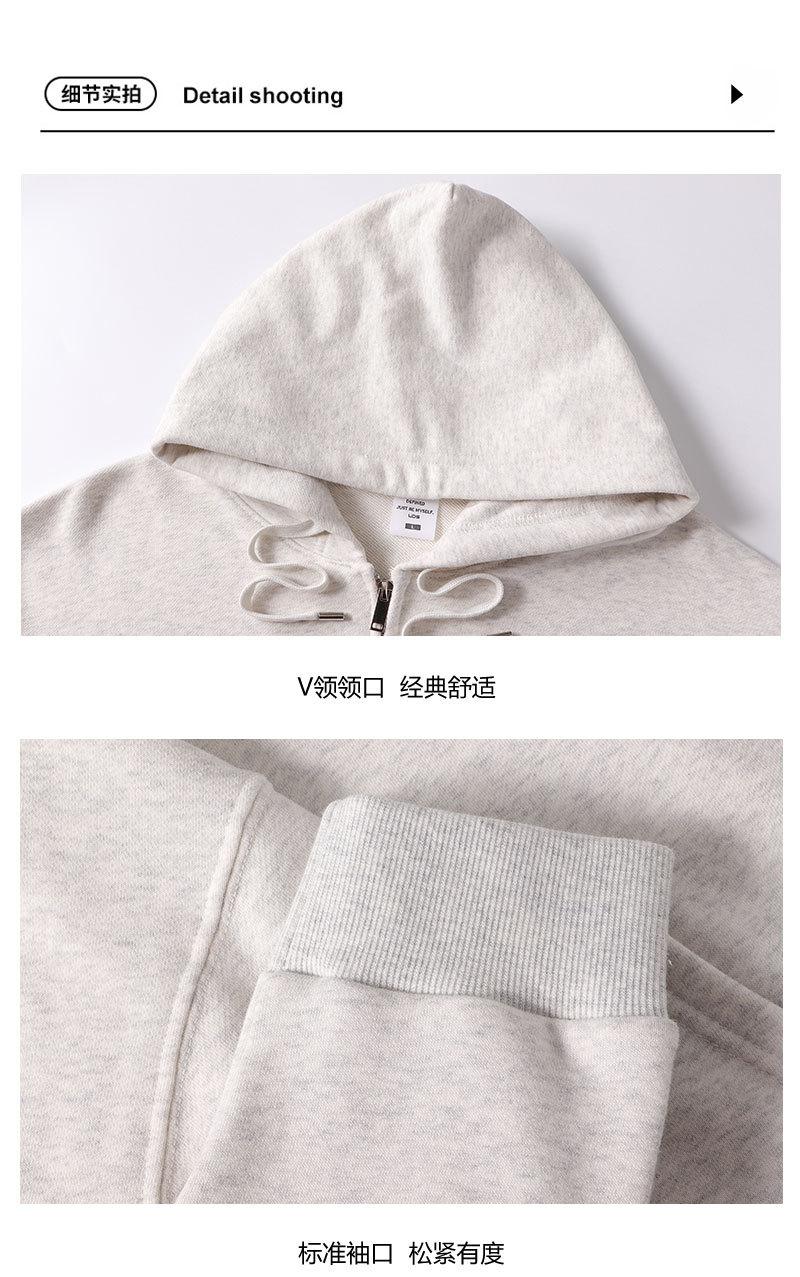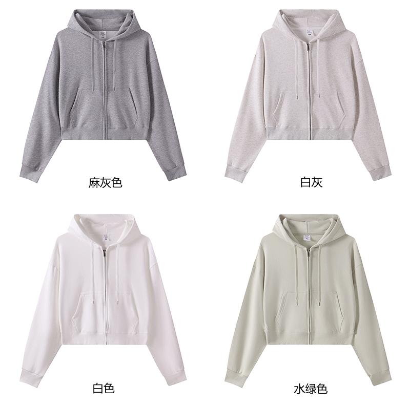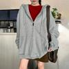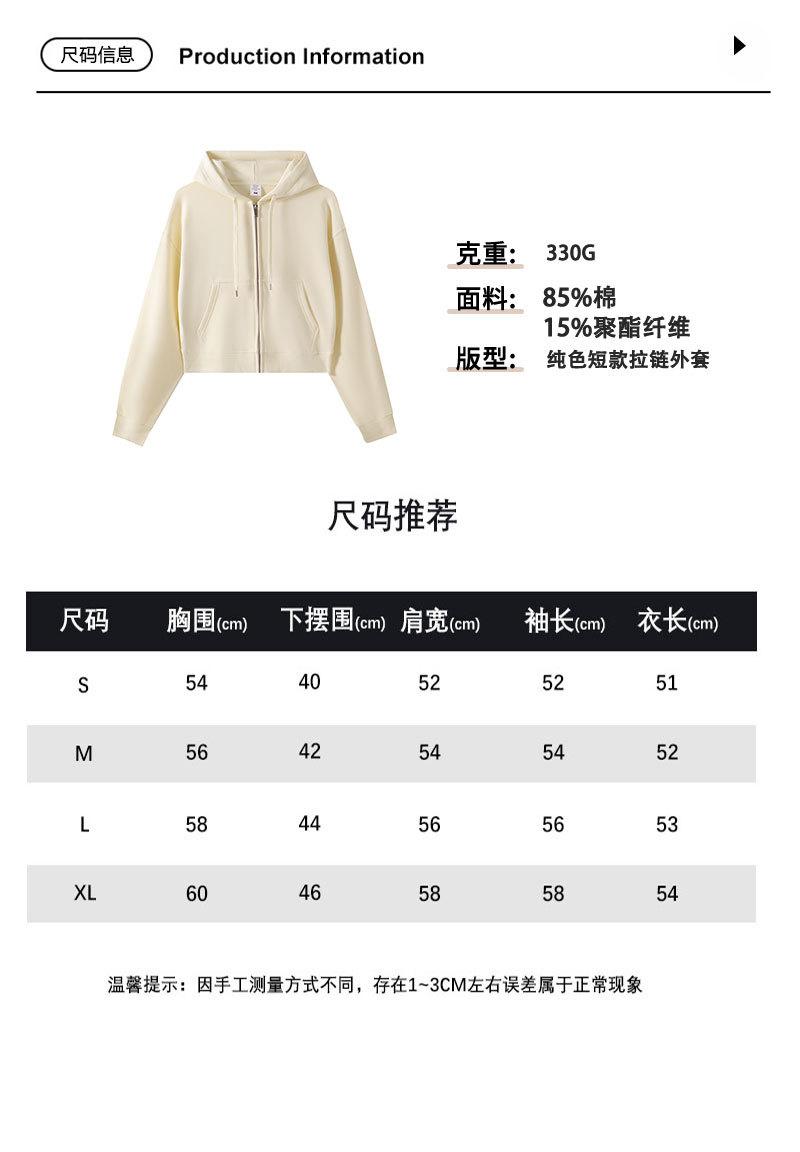 Streetwear Peso Pesado 330G Sudadera con Capucha Grande de Felpa con Cierre para Mujer Otoño/Invierno Color Sólido Holgada Versátil Corta Chaqueta Sudadera