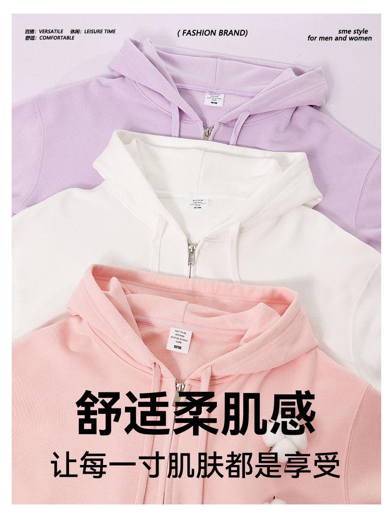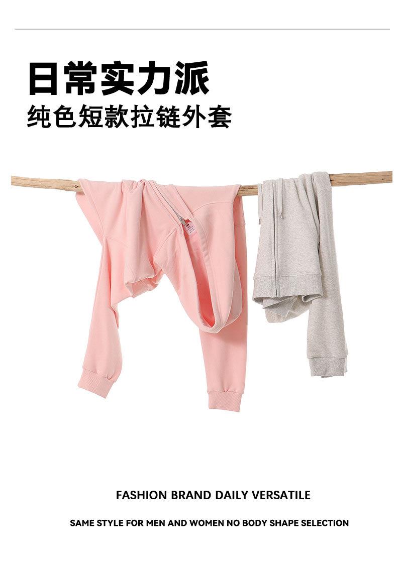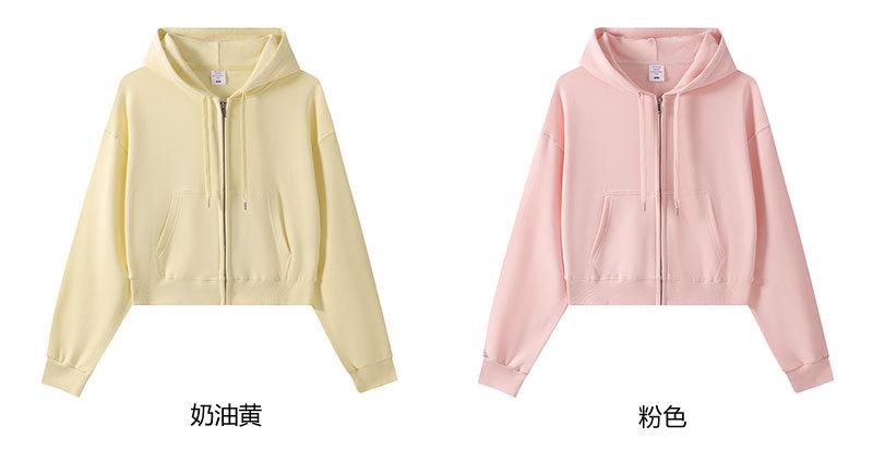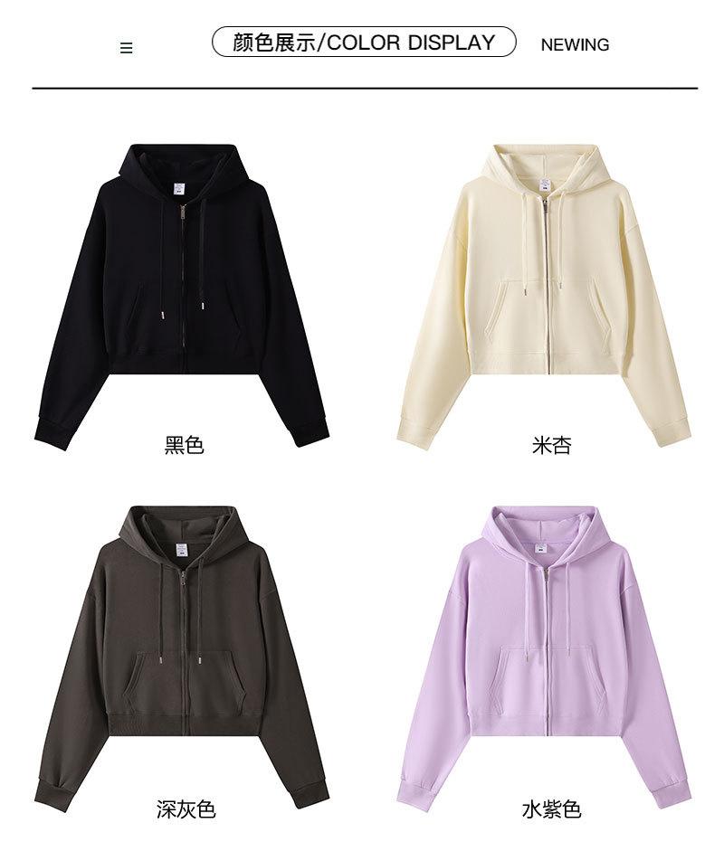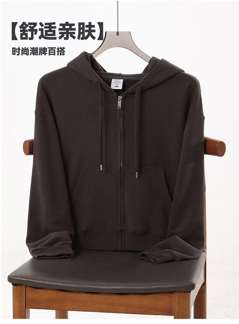 Streetwear Peso Pesado 330G Sudadera con Capucha Grande de Felpa con Cierre para Mujer Otoño/Invierno Color Sólido Holgada Versátil Corta Chaqueta Sudadera