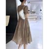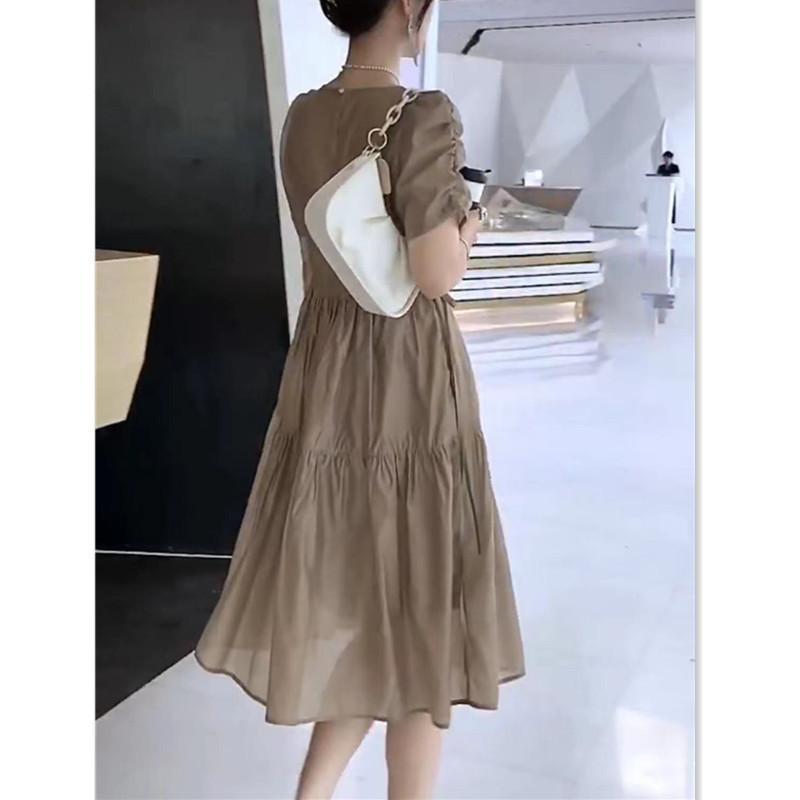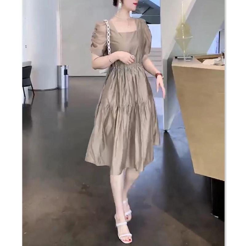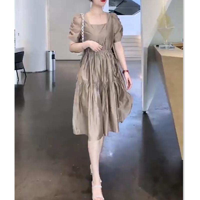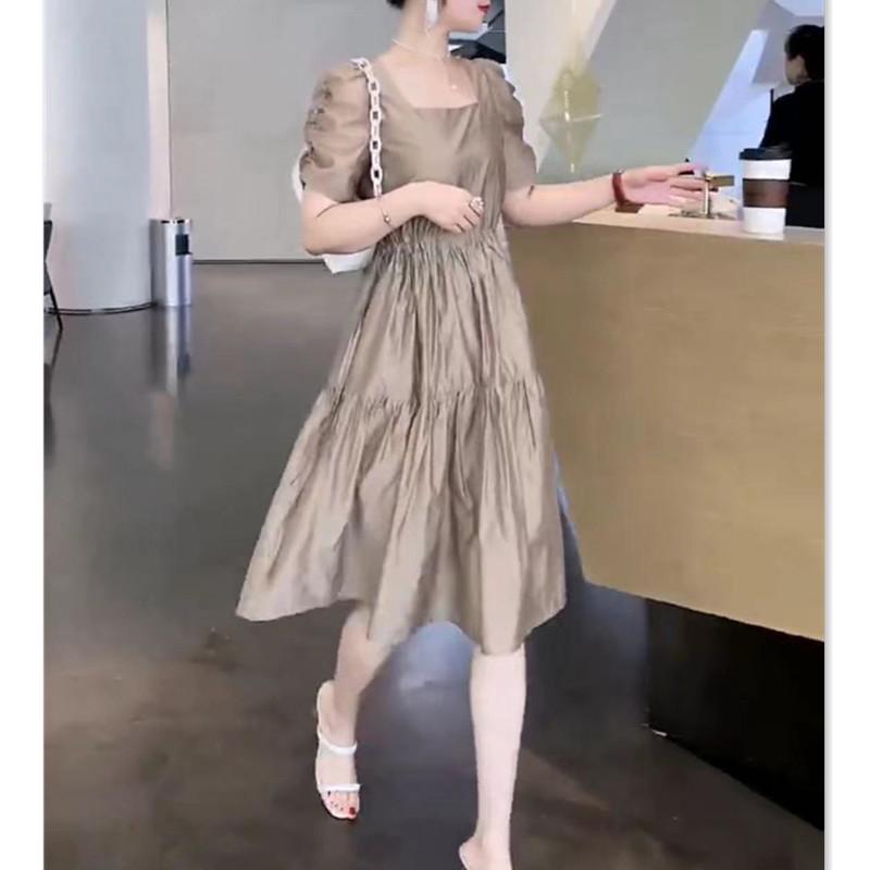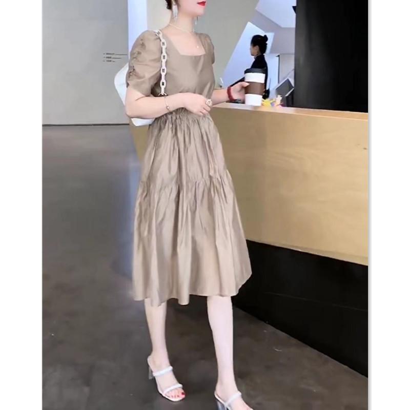 88511 Vestido de Verano Nuevo Estilo Aimei Yiyuan 2022 Estilo Occidental Cuello Cuadrado Vestido Ajustado Cintura Adelgazante Largo Medio