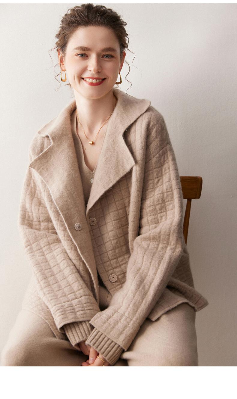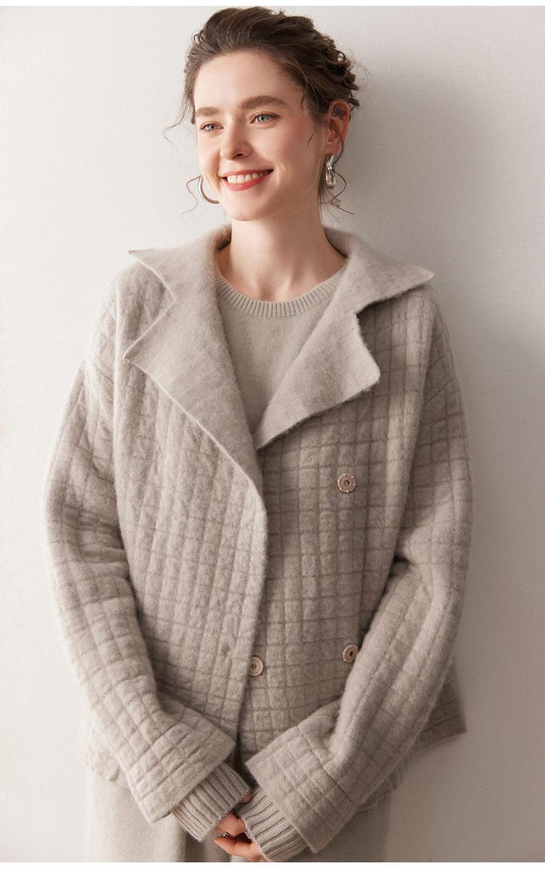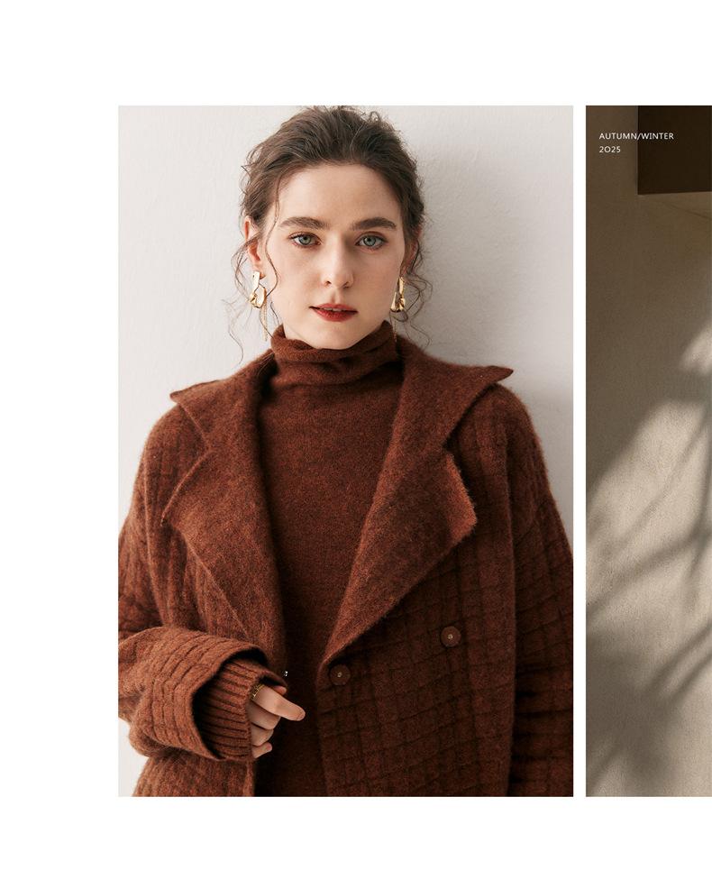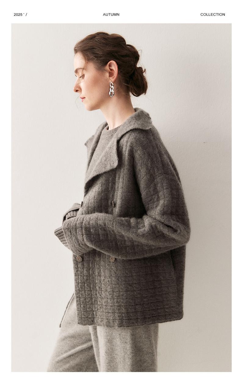 Abrigo de cachemira de cuello cuadrado holgado para mujer, abrigo versátil suelto de color sólido, nuevo top de lana para otoño e invierno 2025