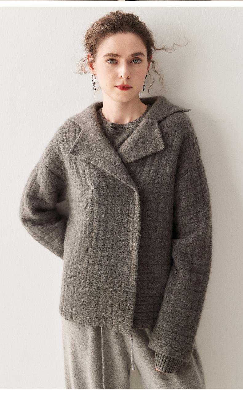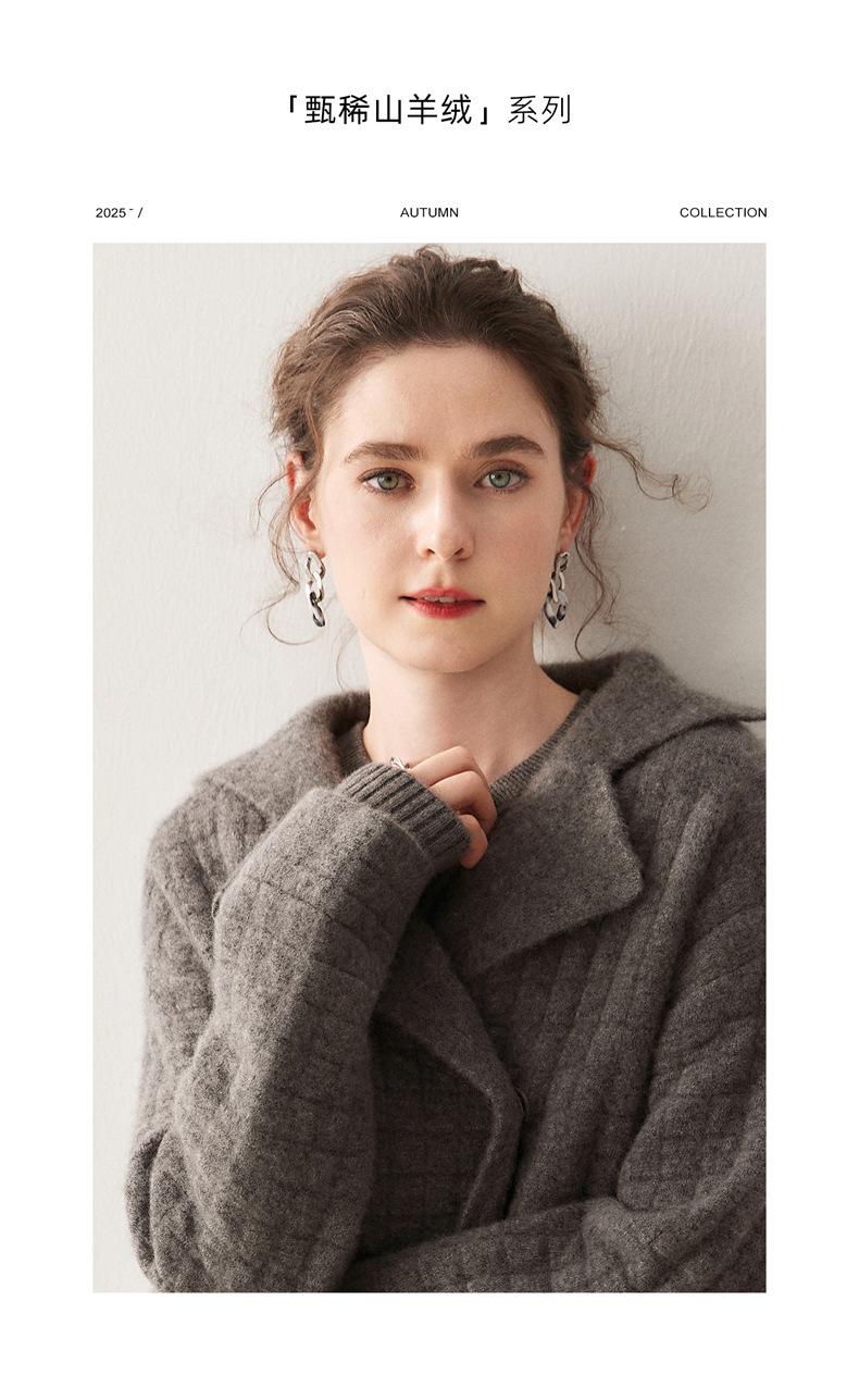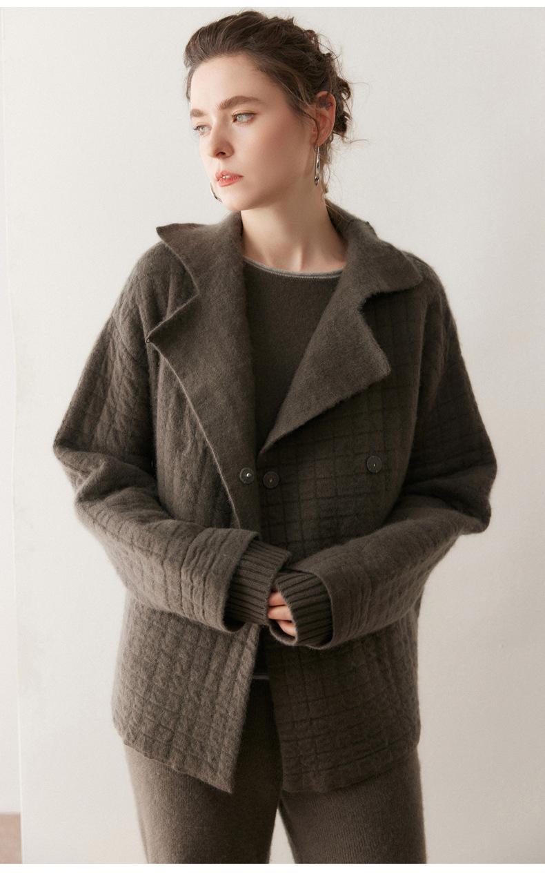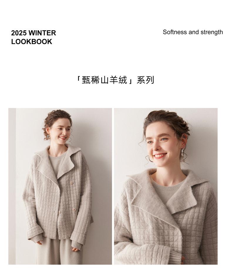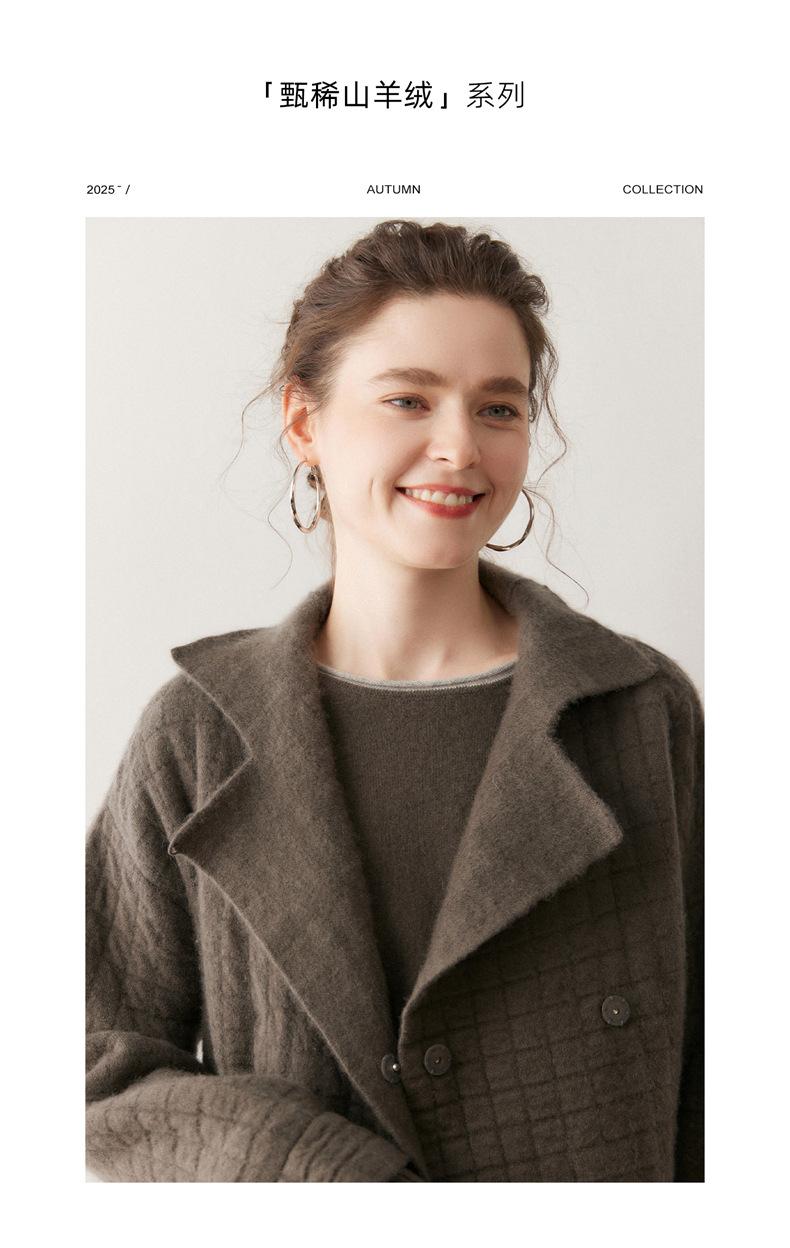 Abrigo de cachemira de cuello cuadrado holgado para mujer, abrigo versátil suelto de color sólido, nuevo top de lana para otoño e invierno 2025