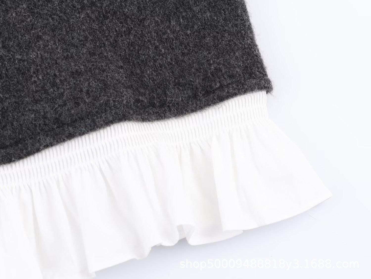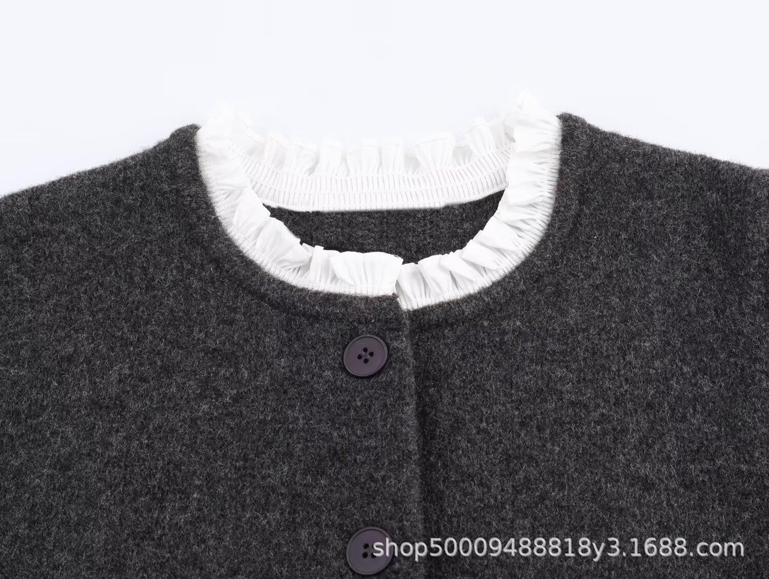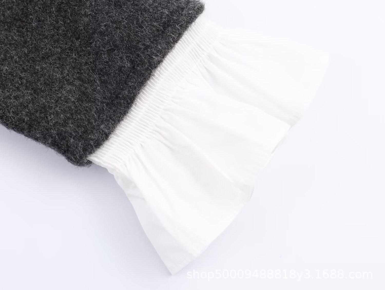 Ropa de Mujer de Comercio Exterior Transfronterizo 2025 Otoño/Invierno Nuevo Cárdigan Tejido Empalmado de Popelina de Temperamento de Moda Europea y Americana 2142128