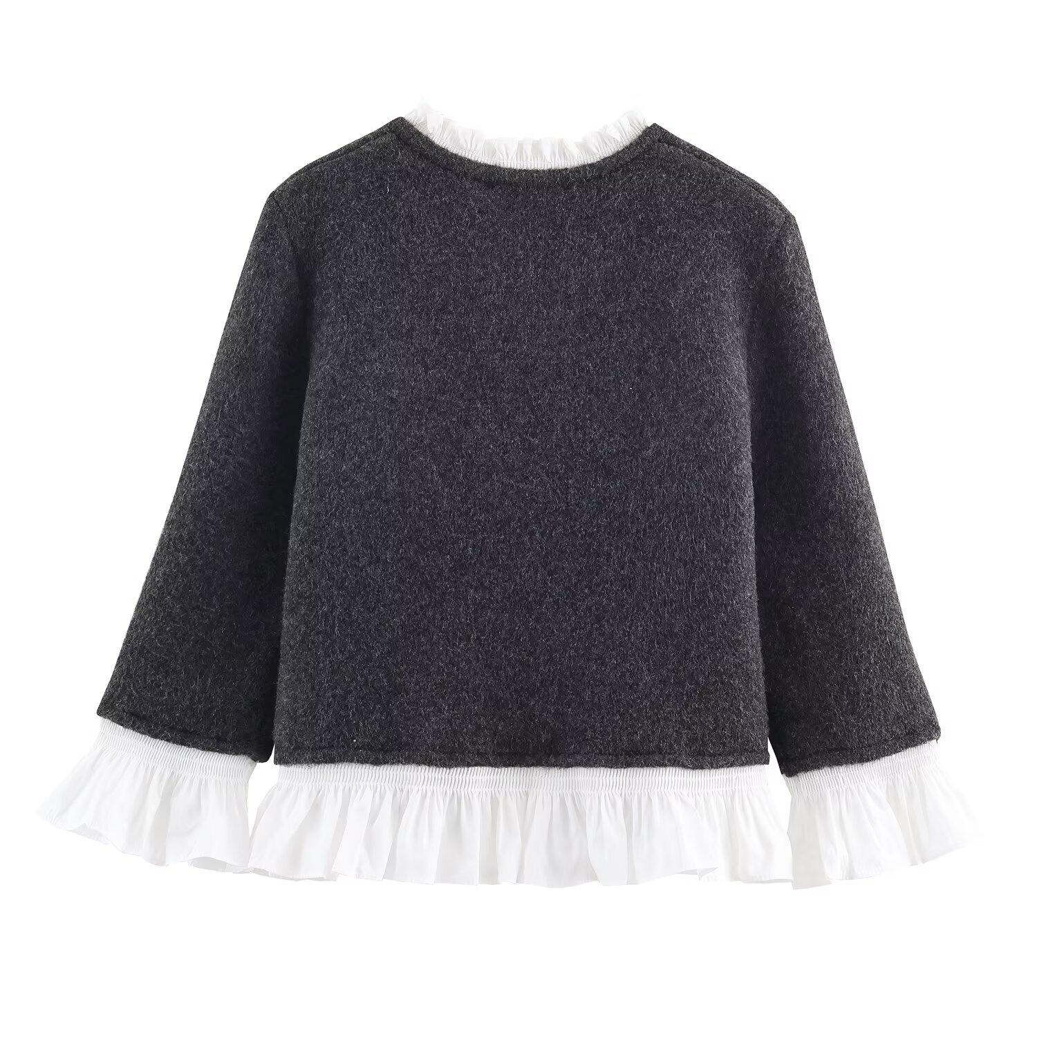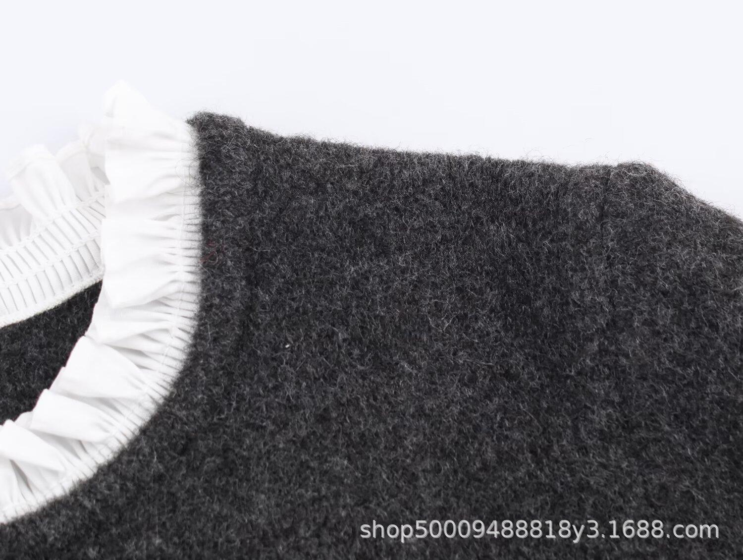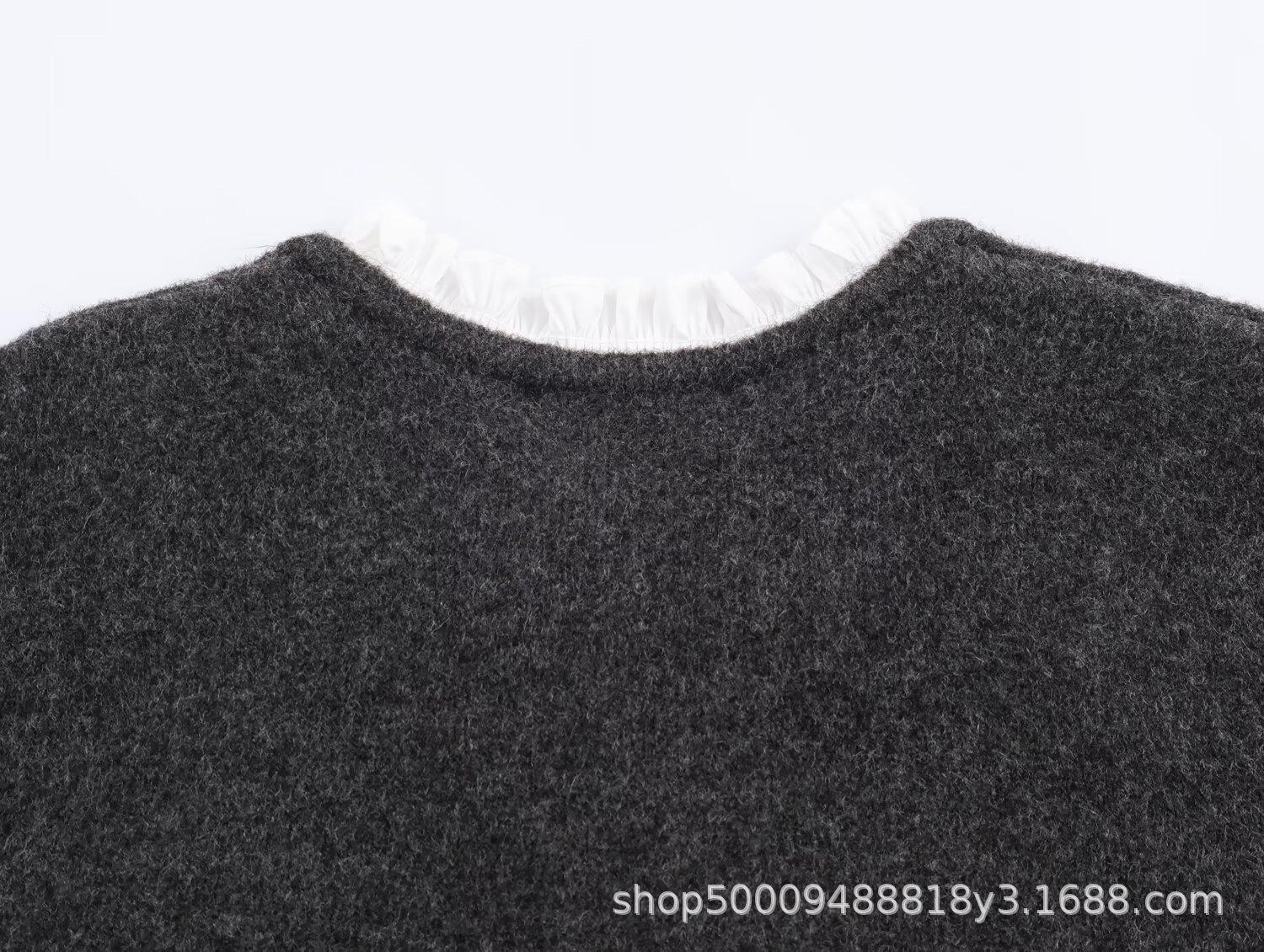Ropa de Mujer de Comercio Exterior Transfronterizo 2025 Otoño/Invierno Nuevo Cárdigan Tejido Empalmado de Popelina de Temperamento de Moda Europea y Americana 2142128