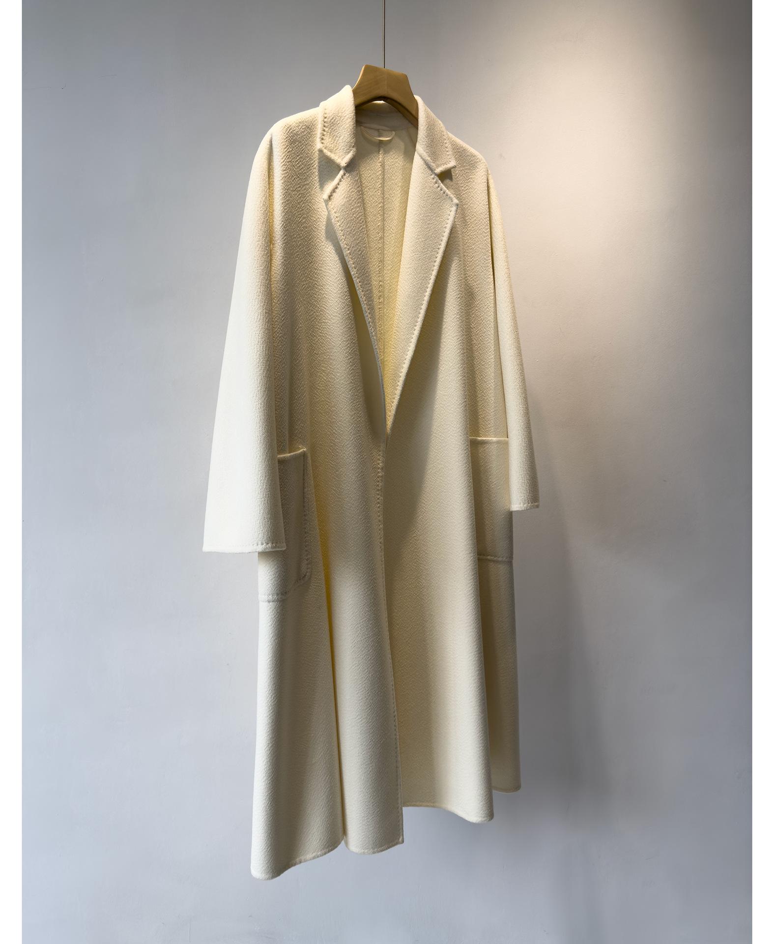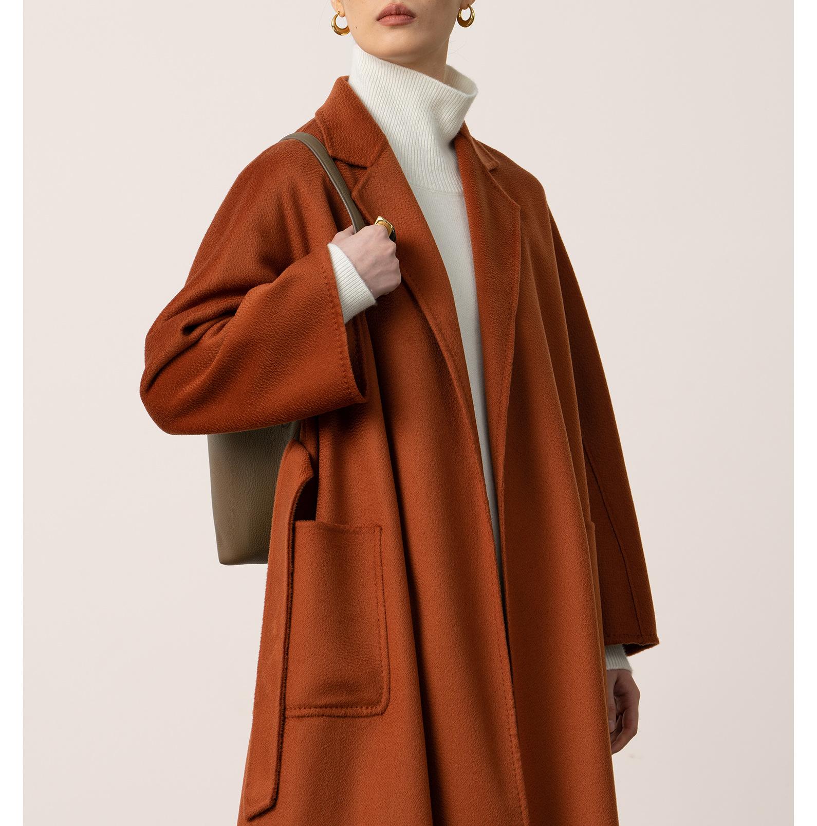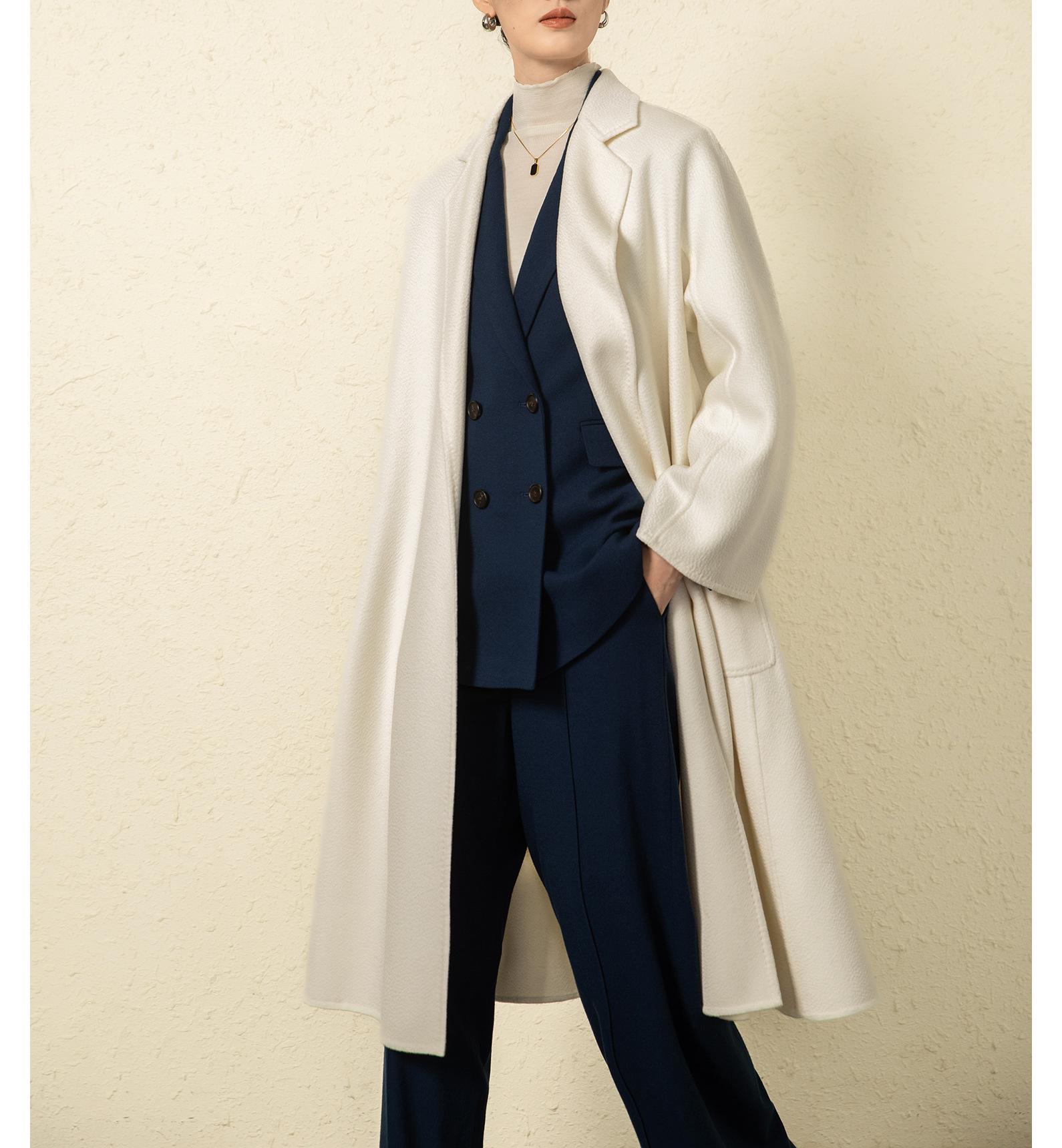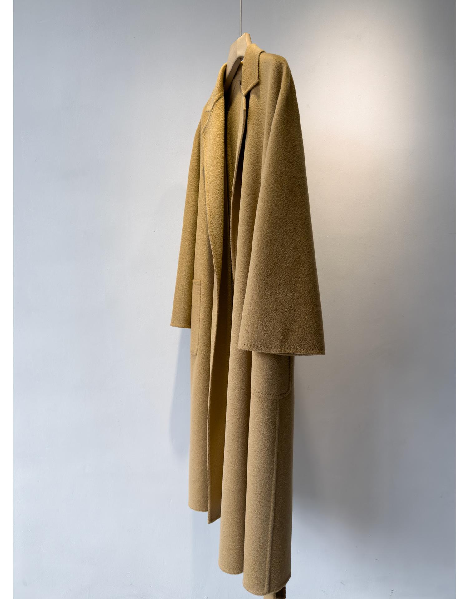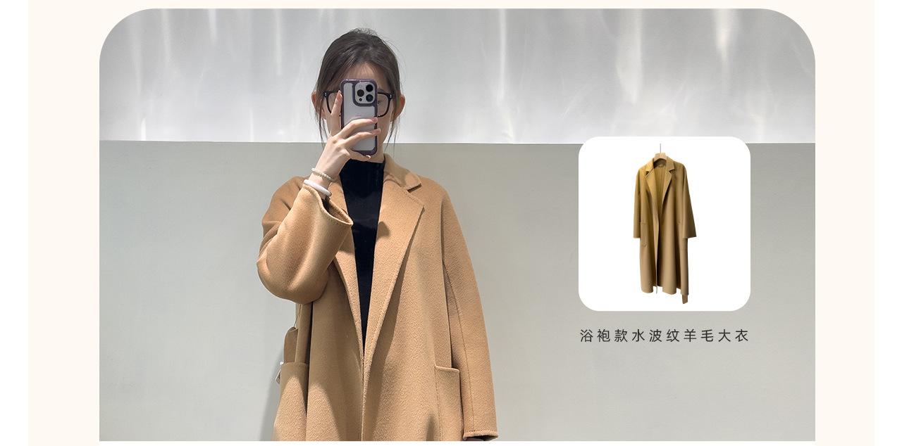 Personalizado~Abrigo nuevo de otoño/invierno de lujo de cachemira con ondas de agua familiar M 25 para mujer, abrigo largo de lana de cachemira de doble cara