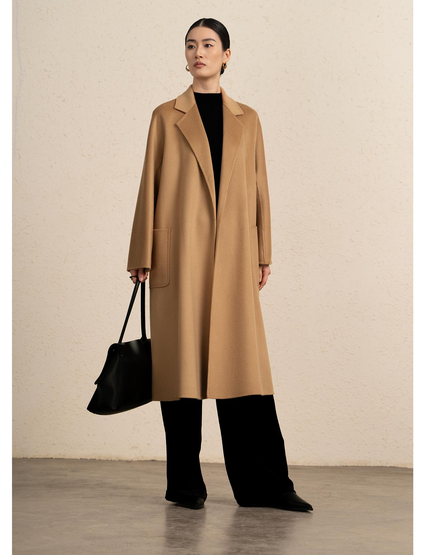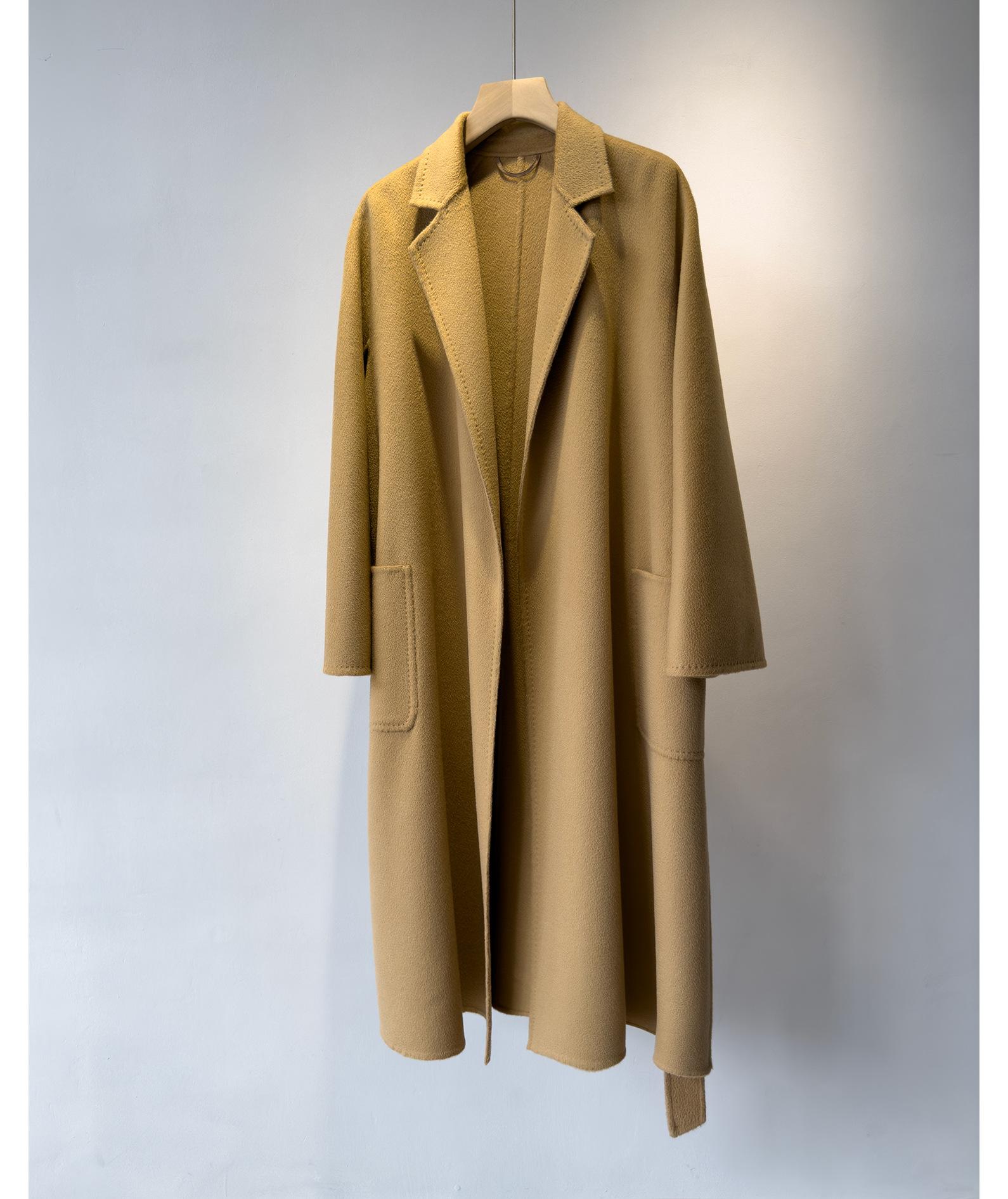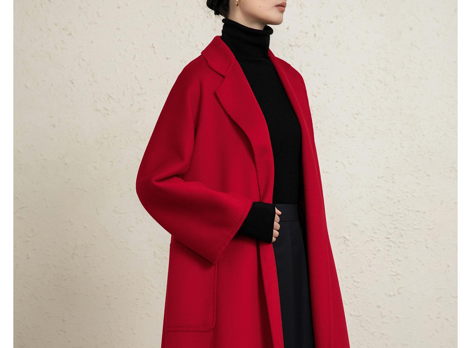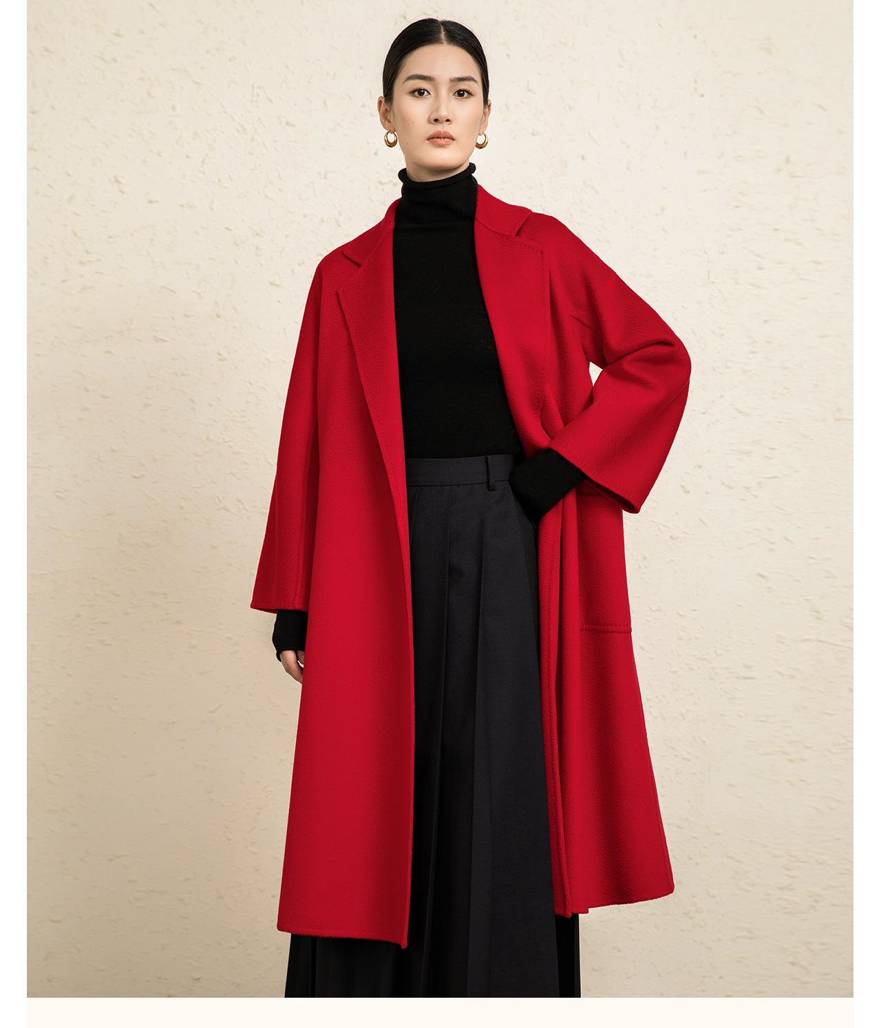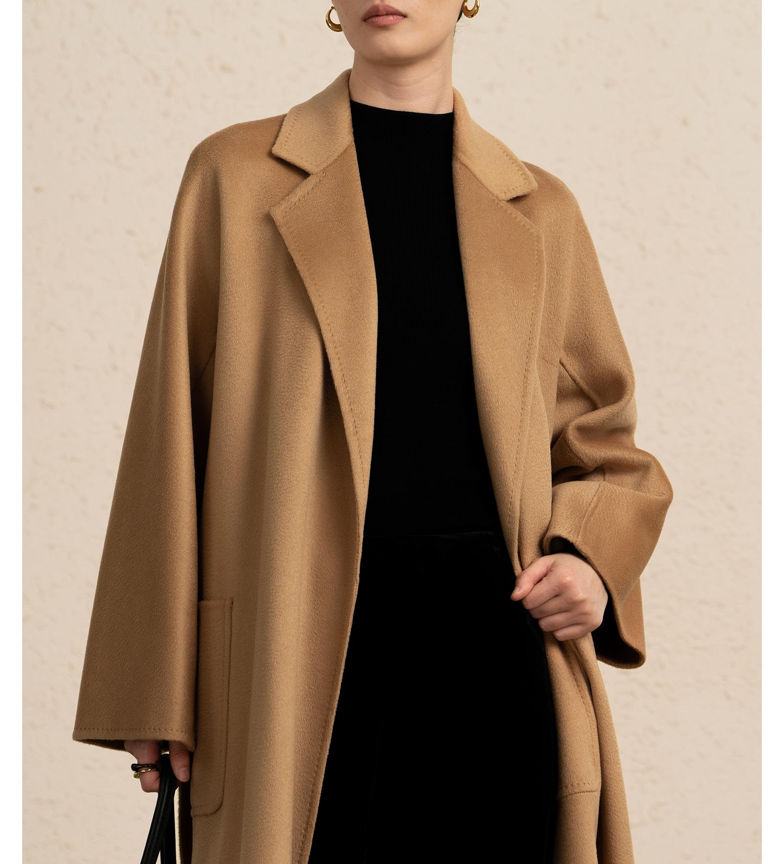 Personalizado~Abrigo nuevo de otoño/invierno de lujo de cachemira con ondas de agua familiar M 25 para mujer, abrigo largo de lana de cachemira de doble cara