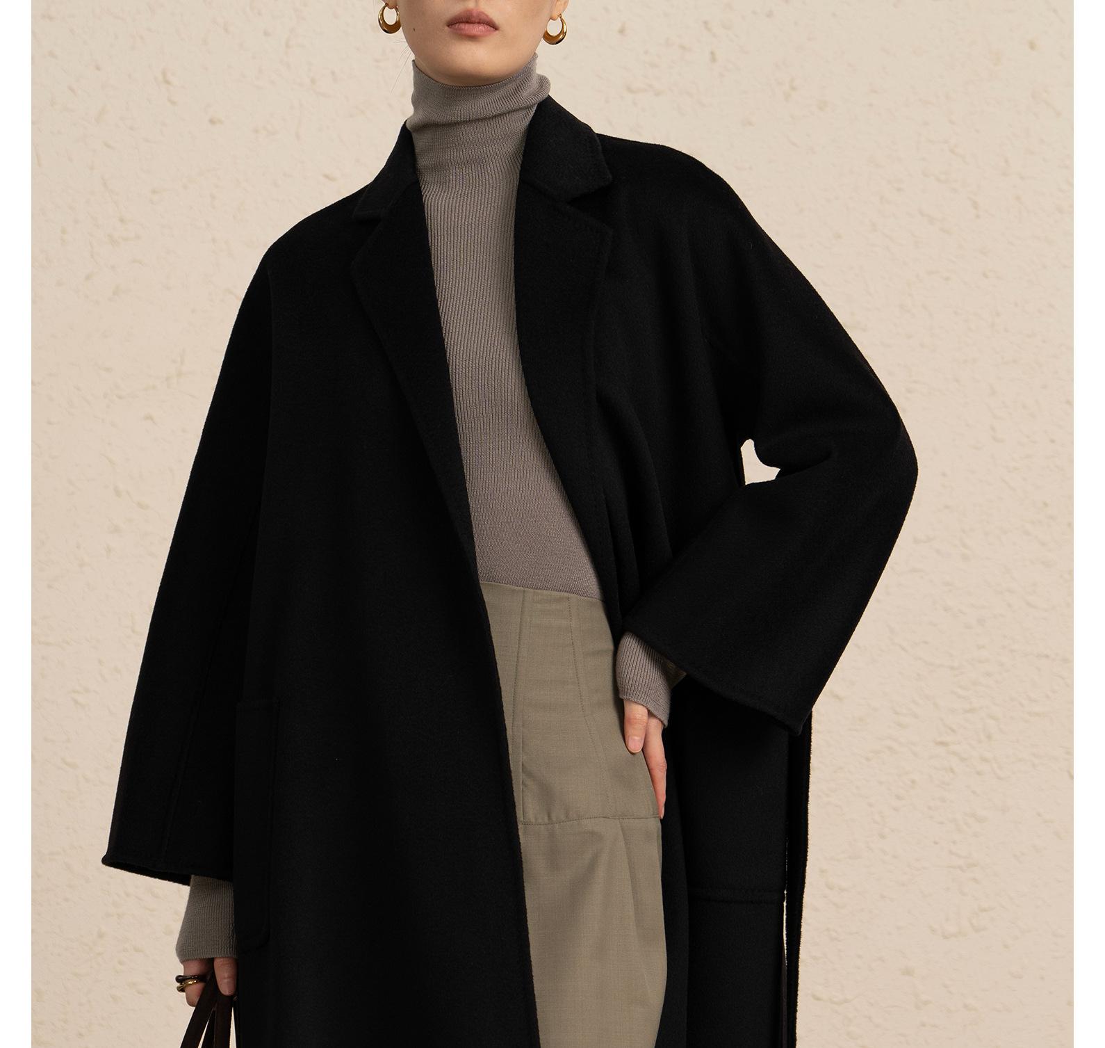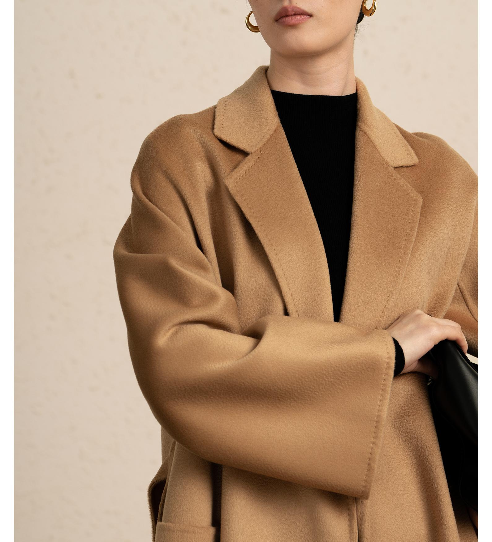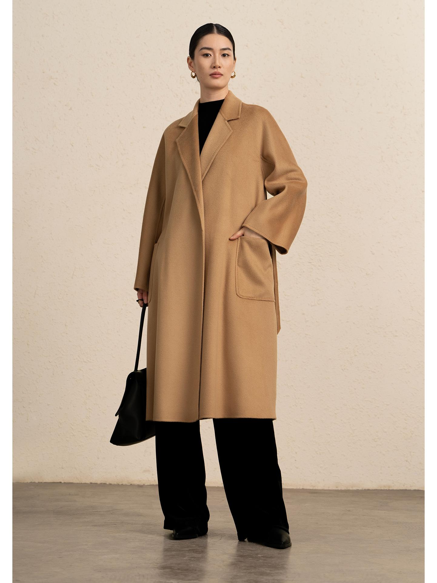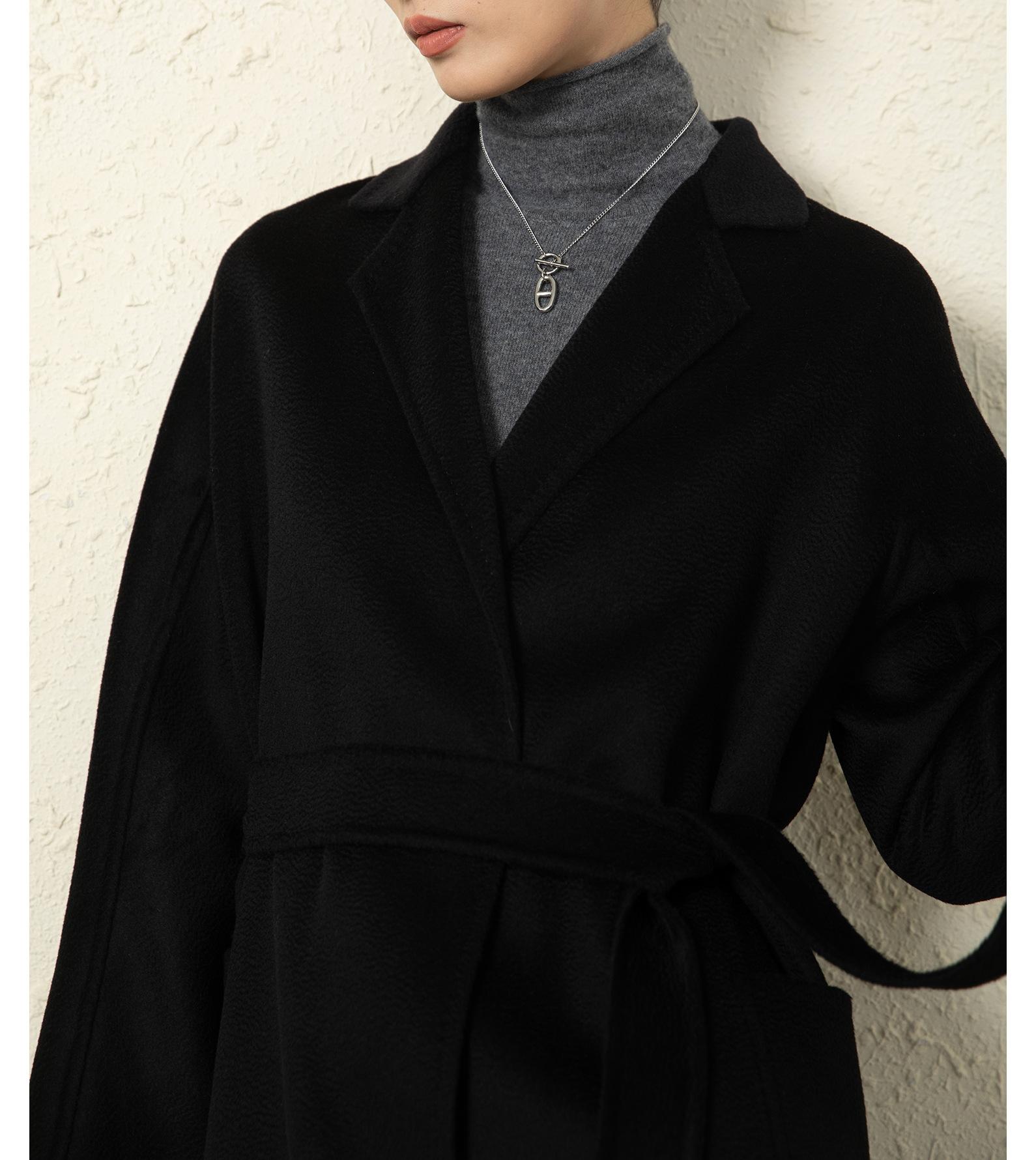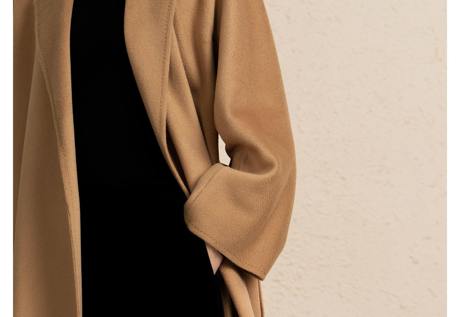 Personalizado~Abrigo nuevo de otoño/invierno de lujo de cachemira con ondas de agua familiar M 25 para mujer, abrigo largo de lana de cachemira de doble cara