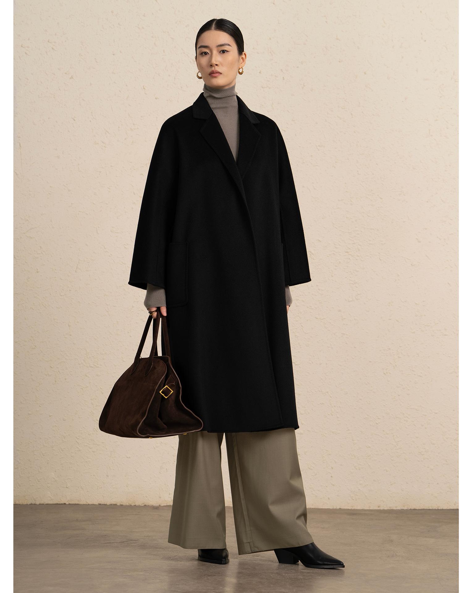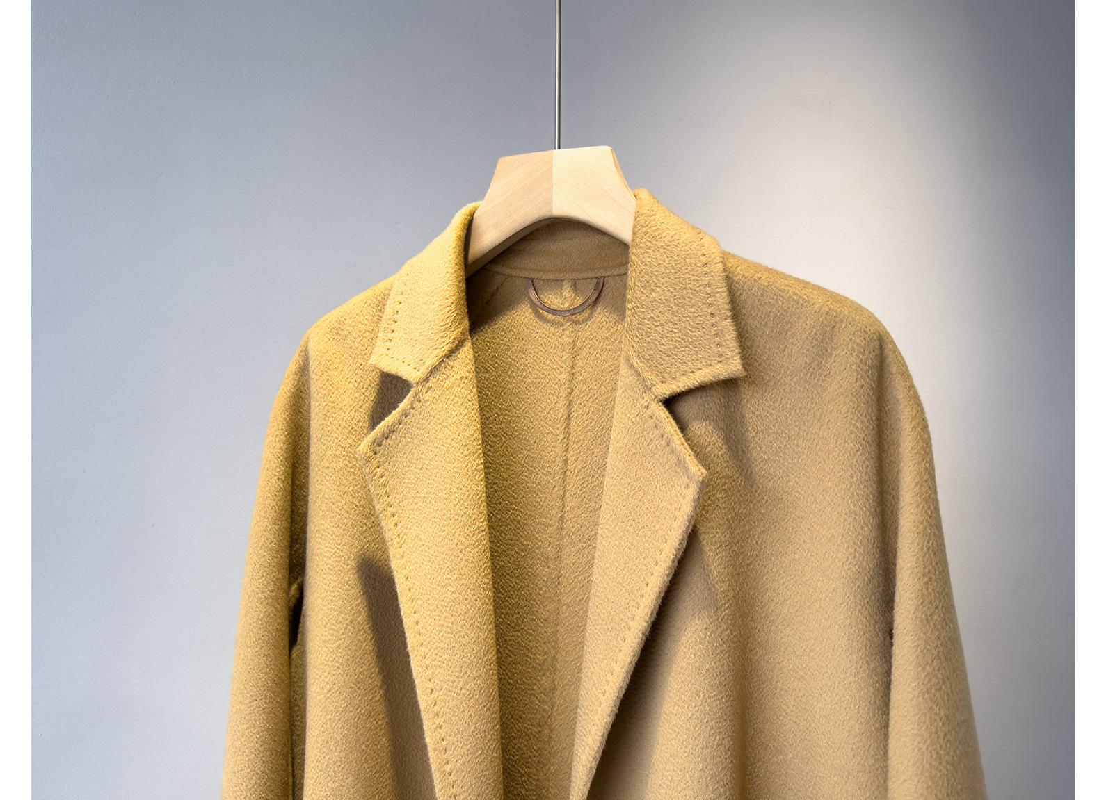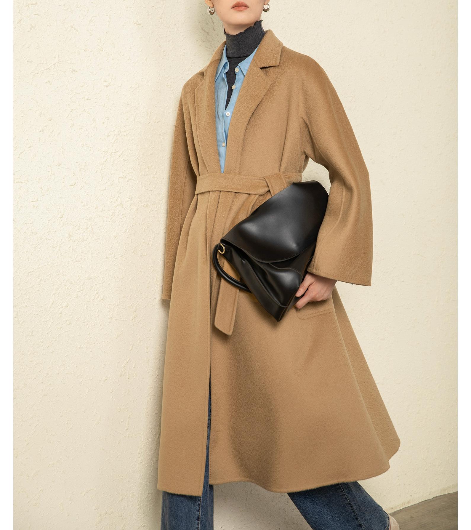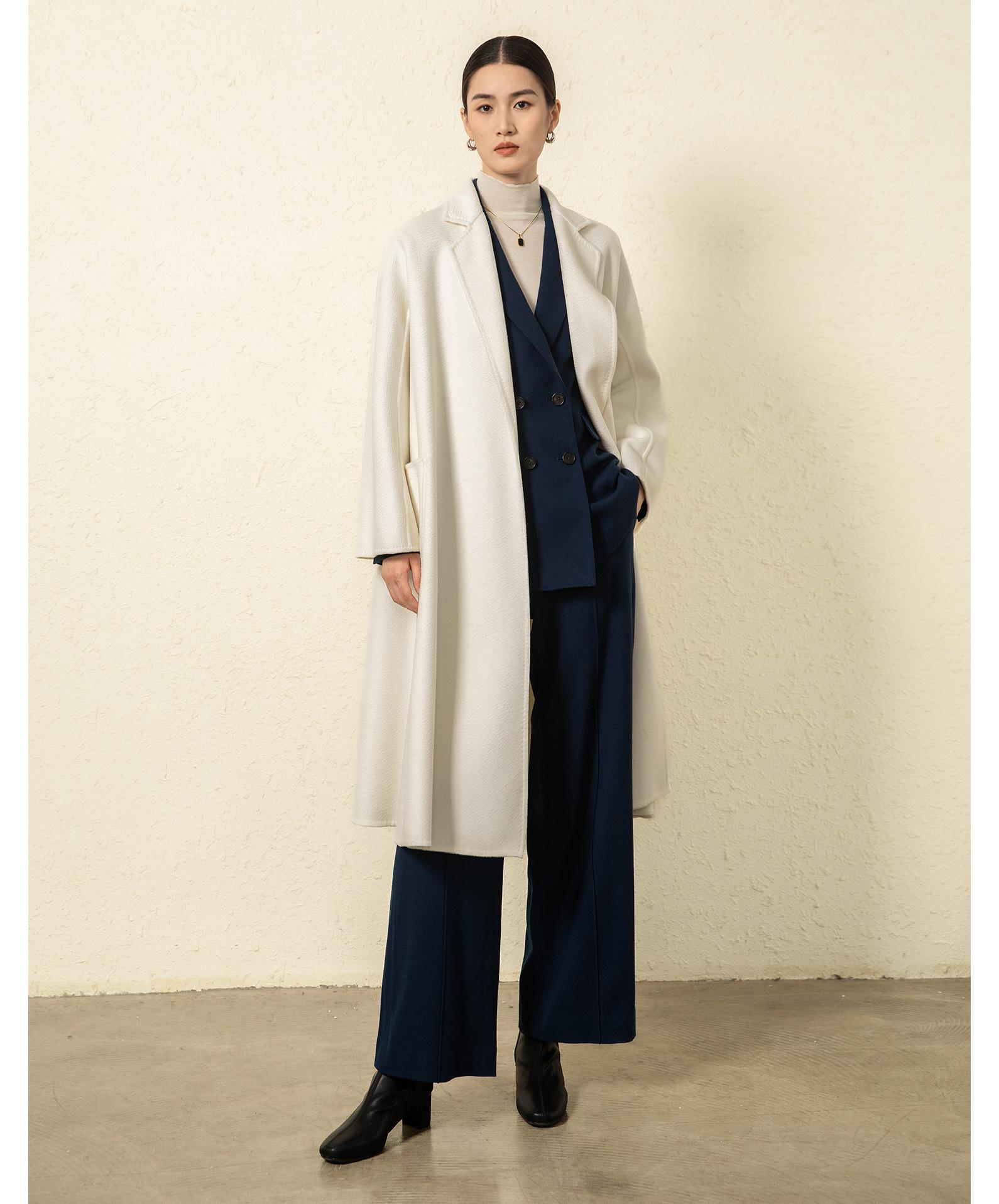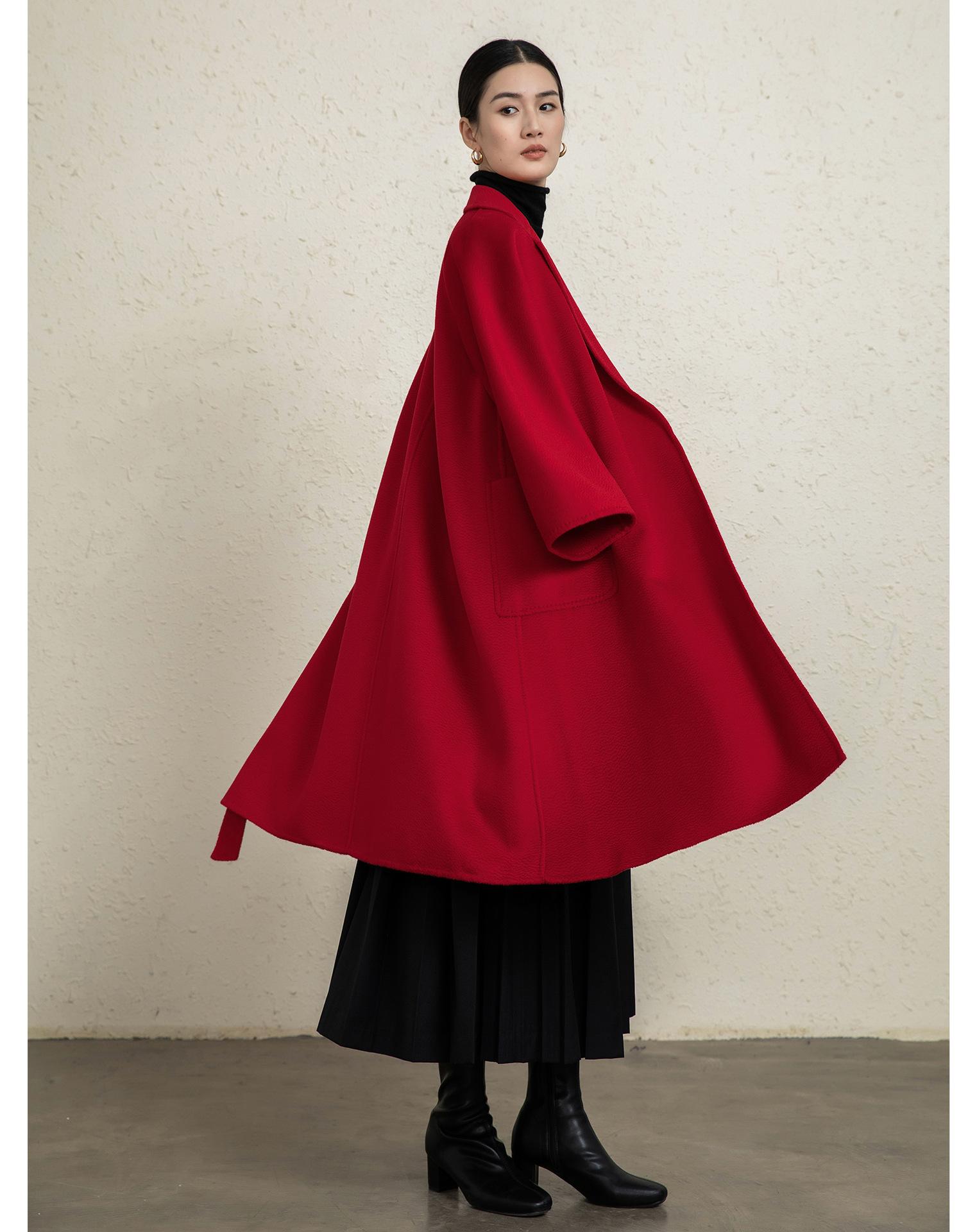 Personalizado~Abrigo nuevo de otoño/invierno de lujo de cachemira con ondas de agua familiar M 25 para mujer, abrigo largo de lana de cachemira de doble cara