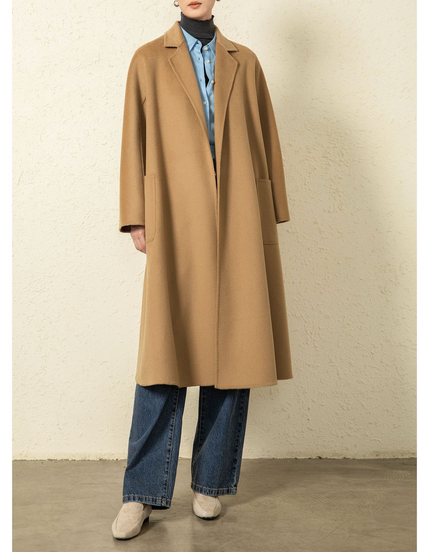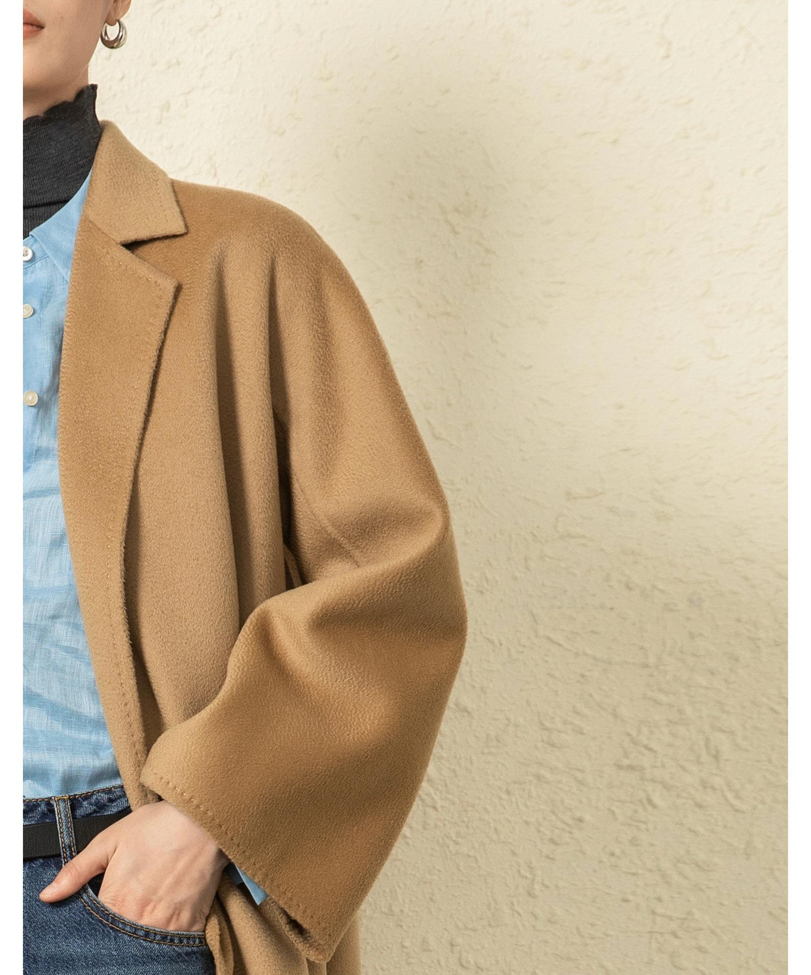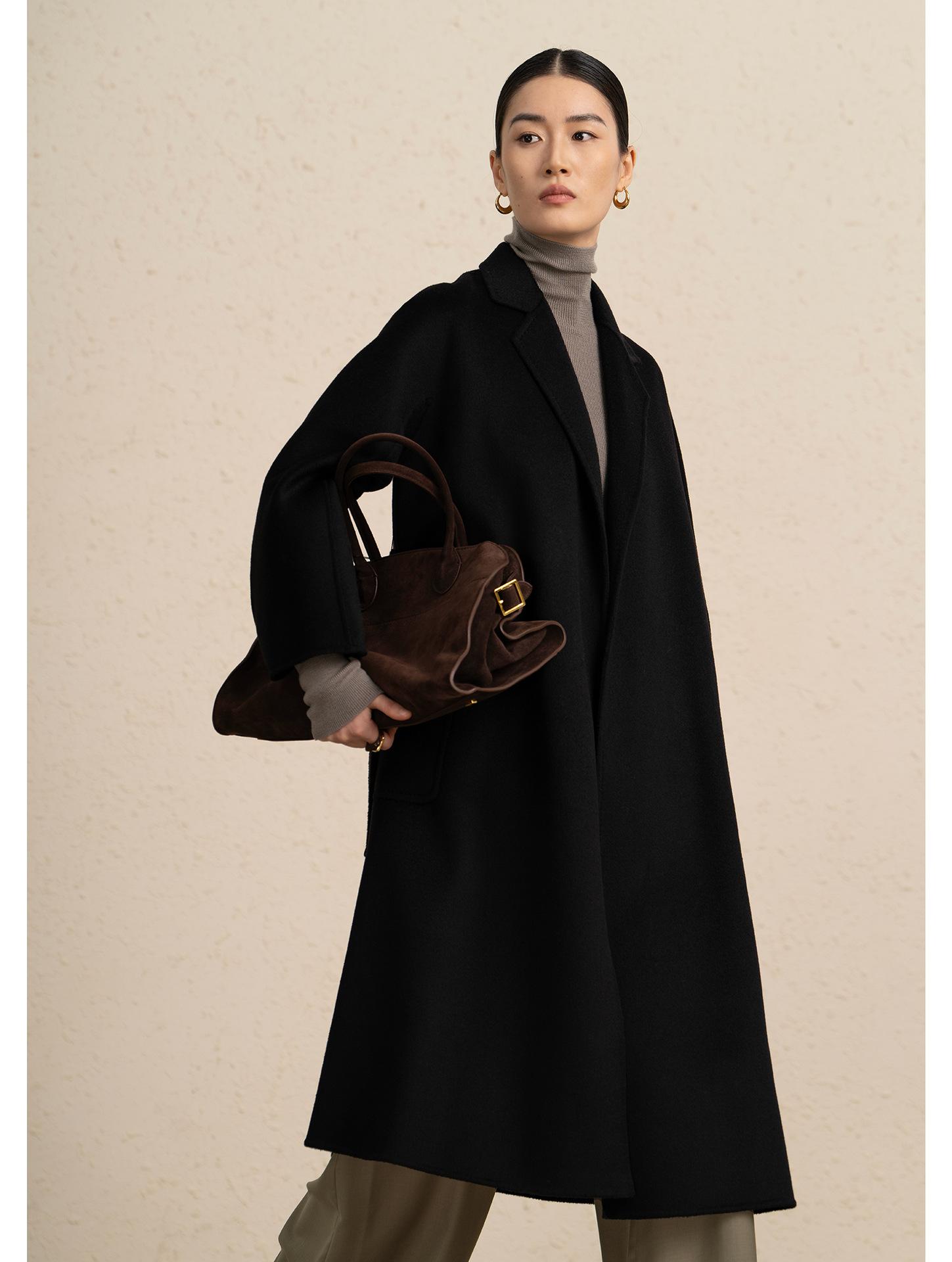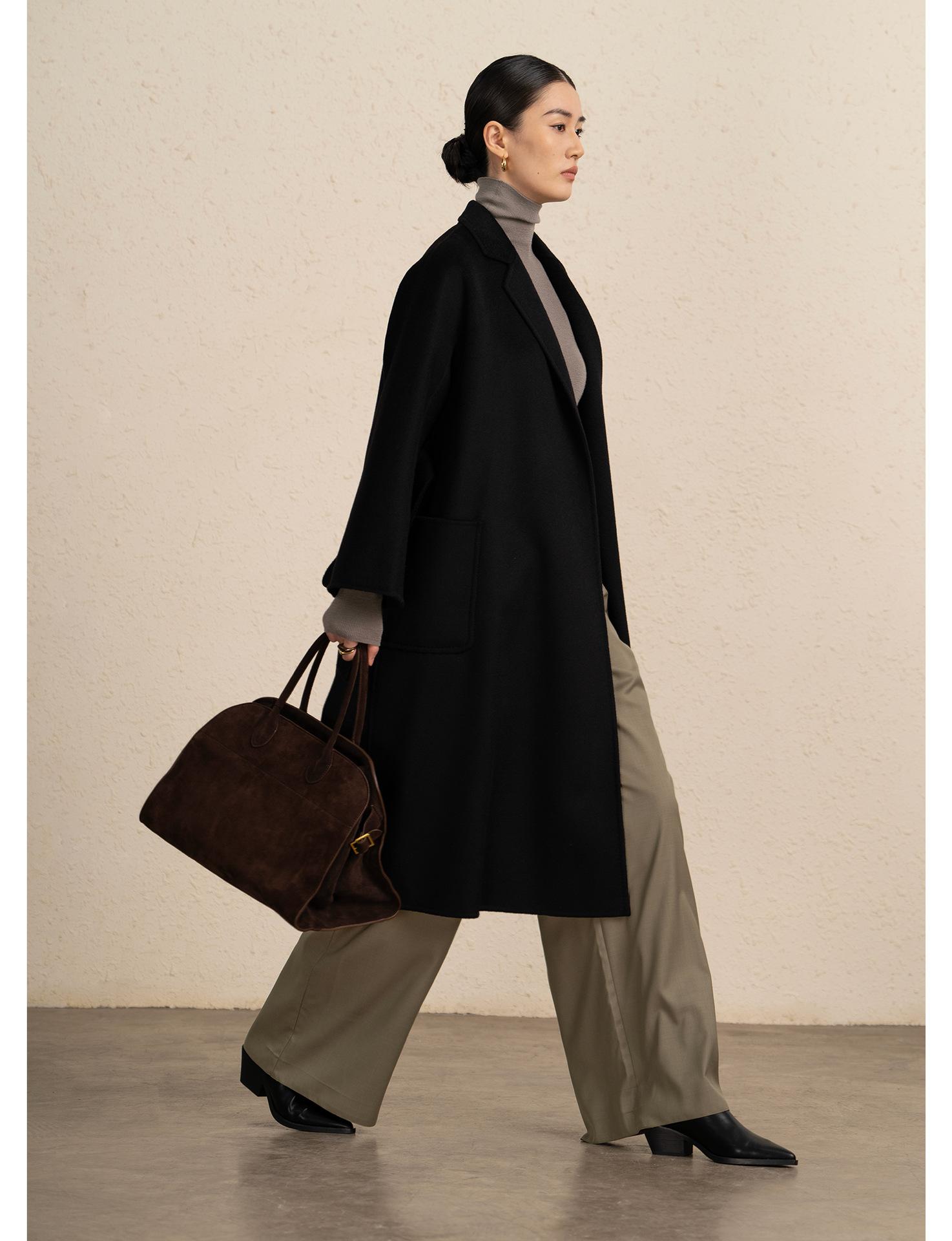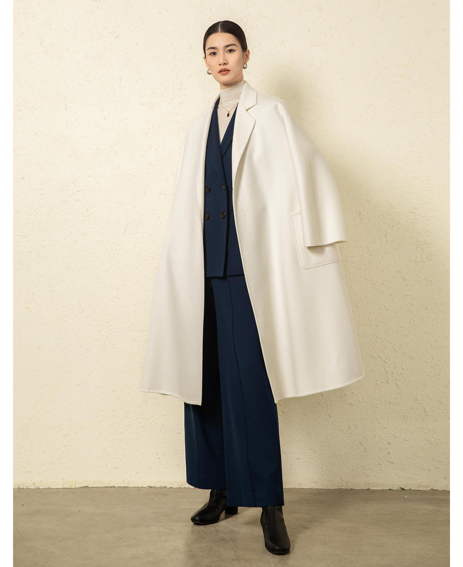 Personalizado~Abrigo nuevo de otoño/invierno de lujo de cachemira con ondas de agua familiar M 25 para mujer, abrigo largo de lana de cachemira de doble cara