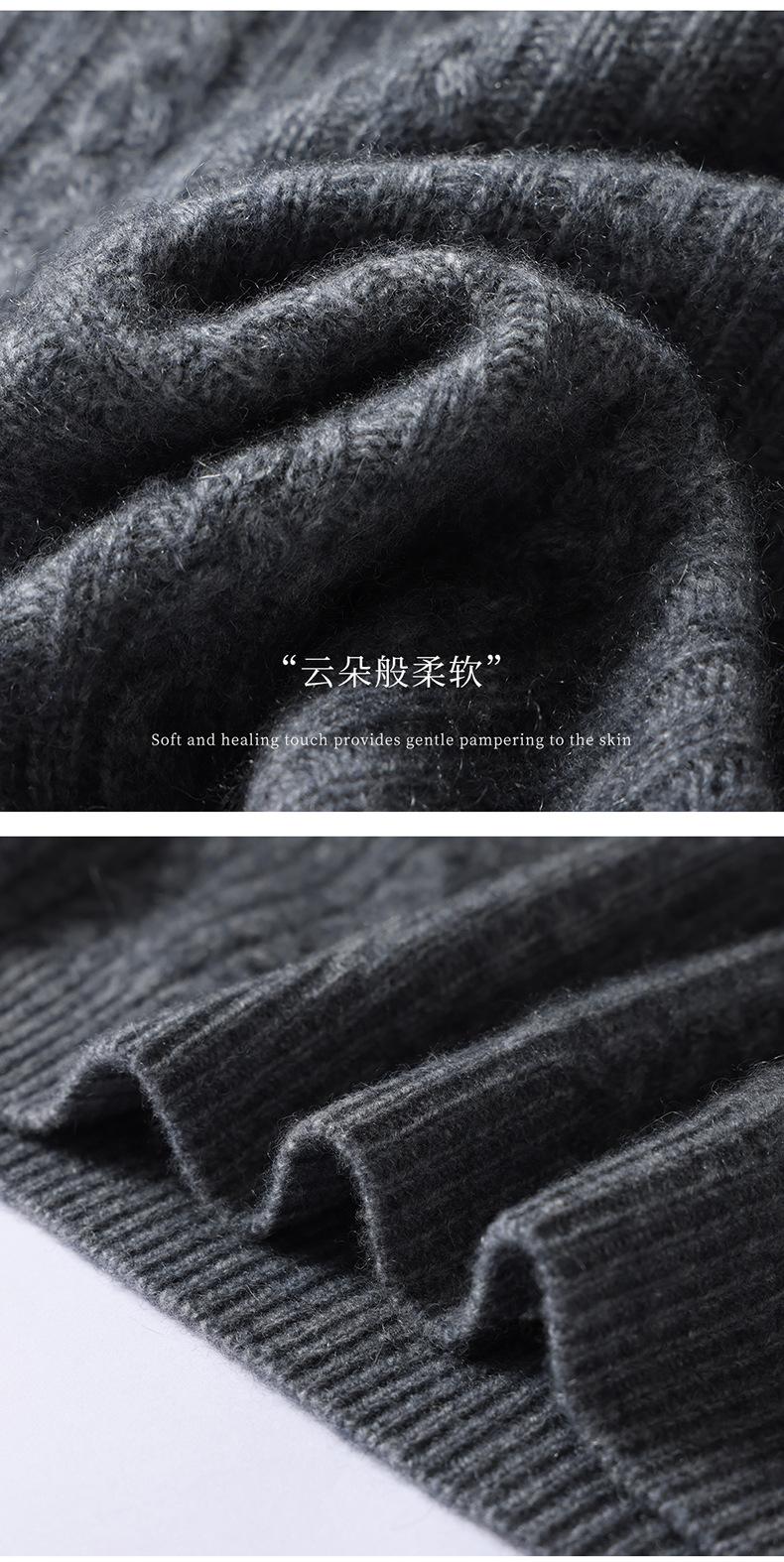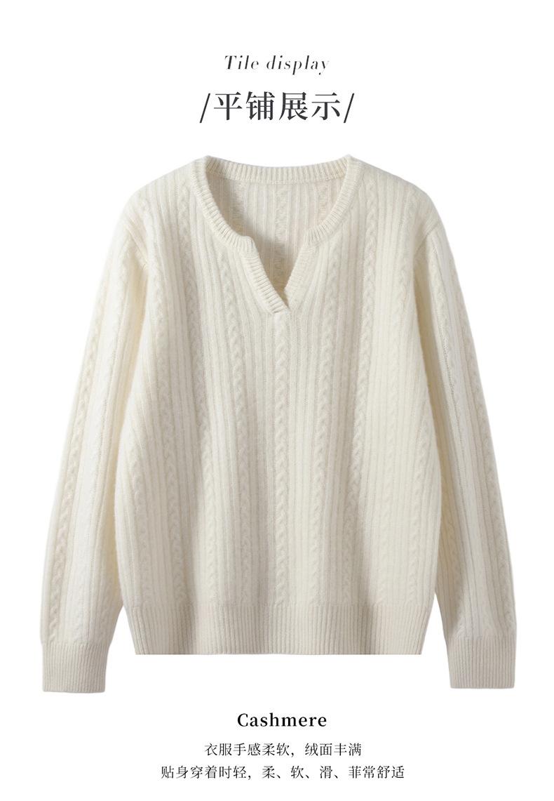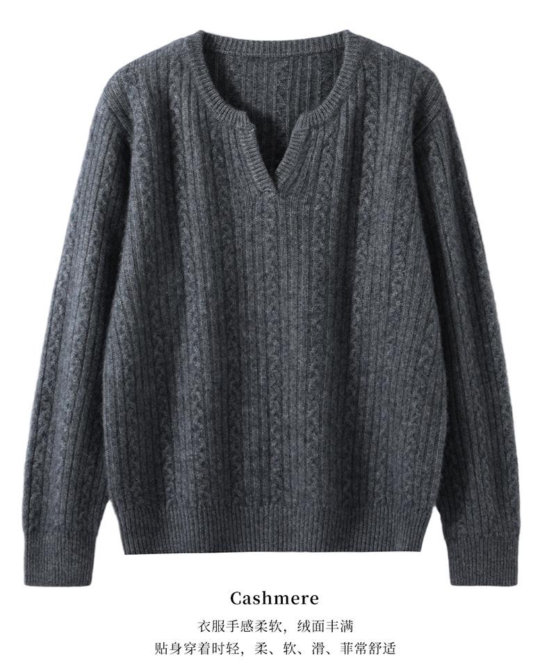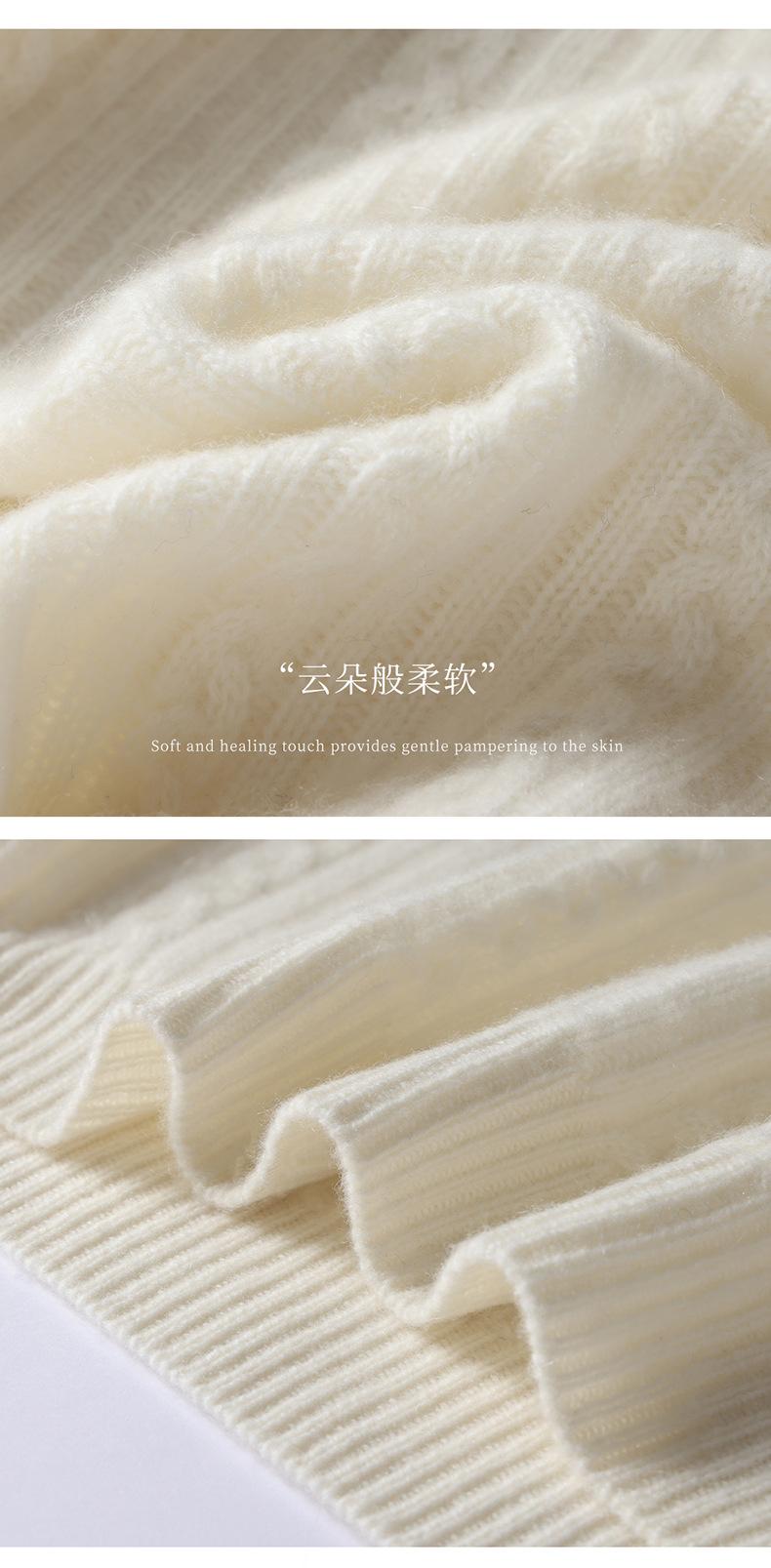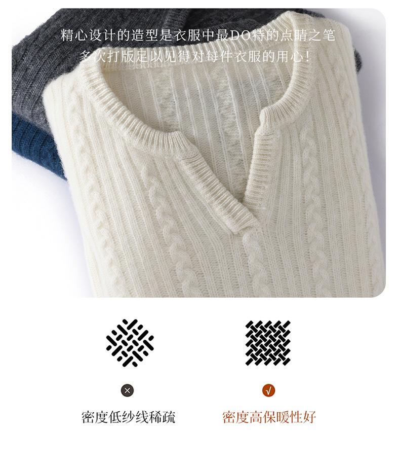Suéter de punto de cable retro de color sólido de cachemira, capa base, cuello de punta, estilo holgado, adelgazante, grueso para mujer, ropa interior