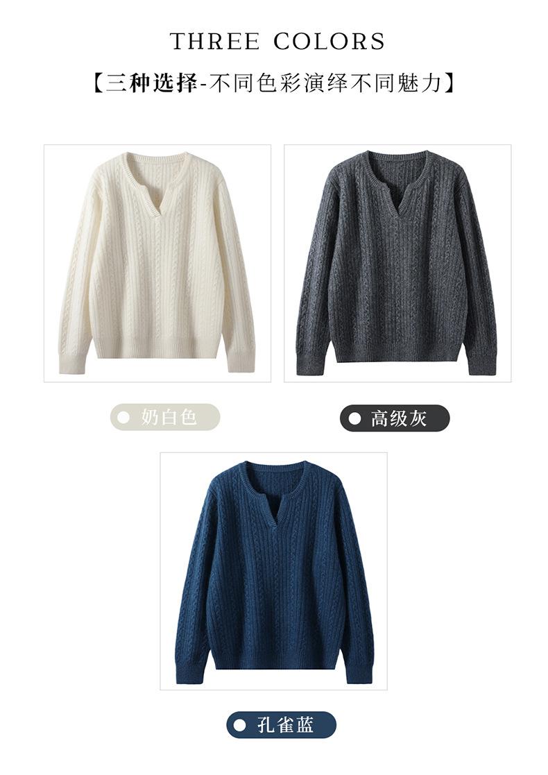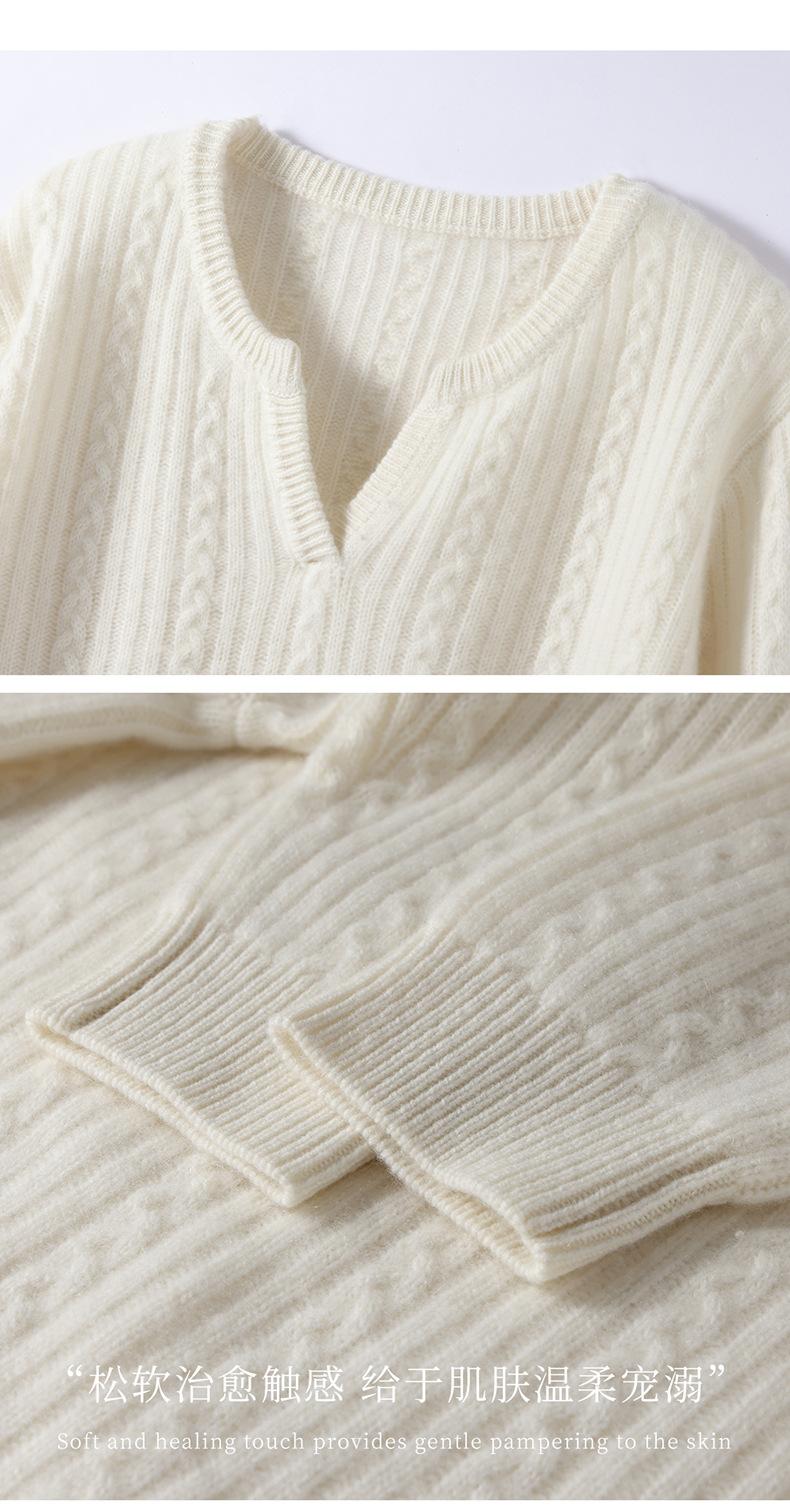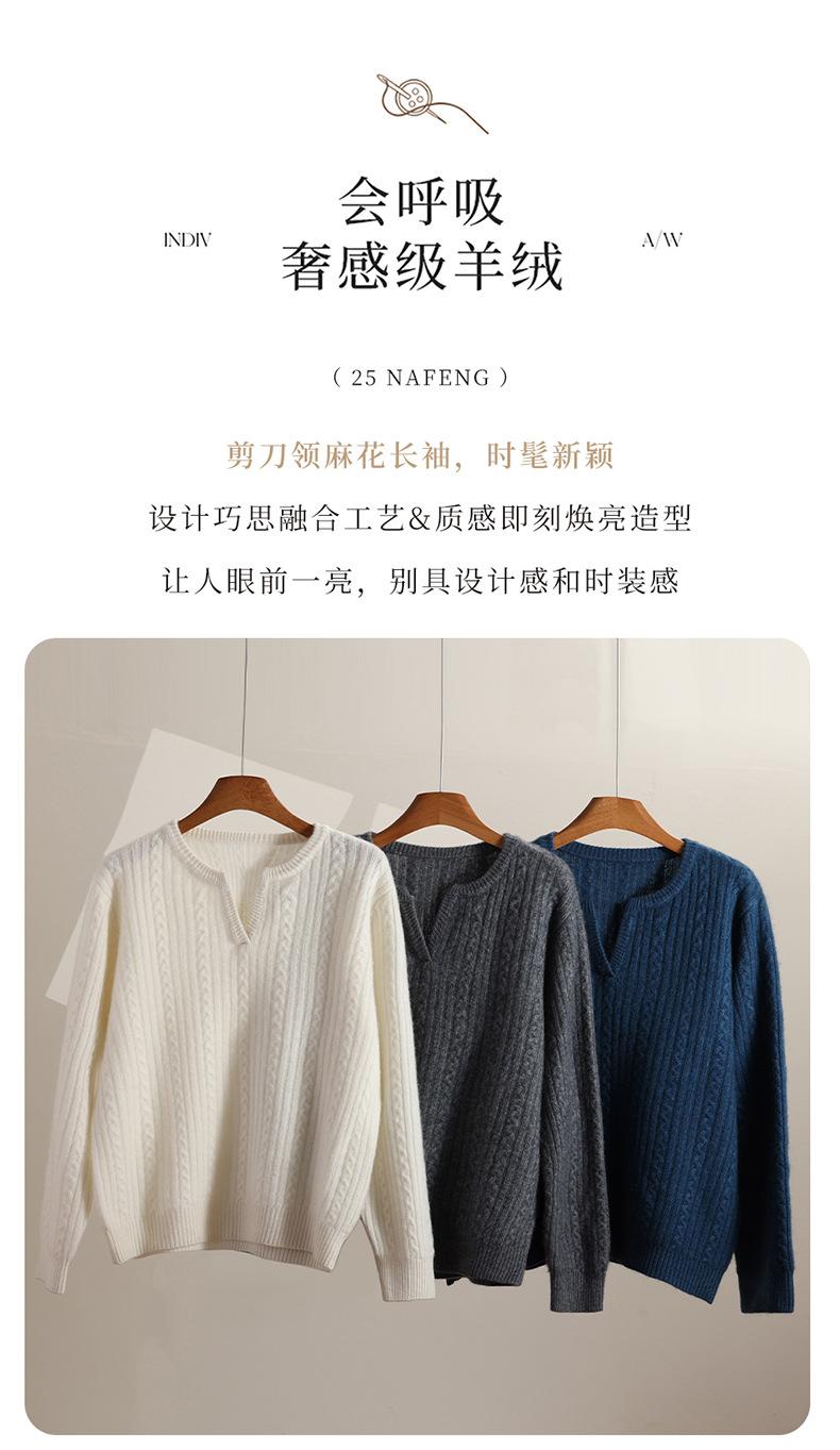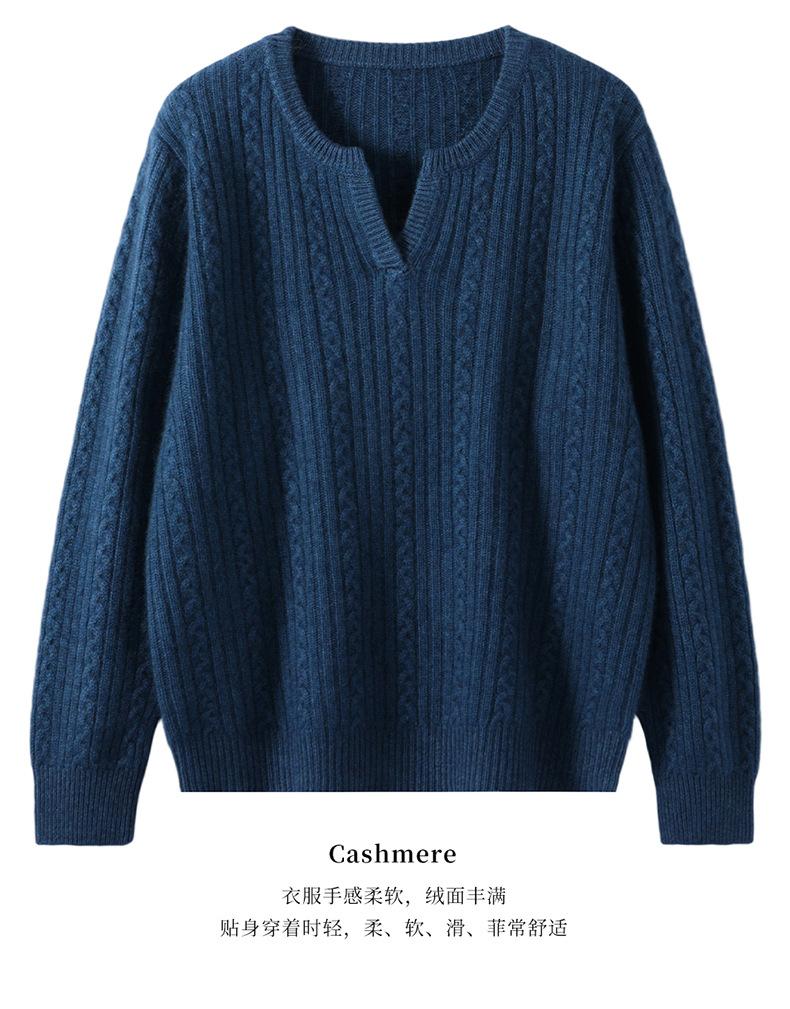 Suéter de punto de cable retro de color sólido de cachemira, capa base, cuello de punta, estilo holgado, adelgazante, grueso para mujer, ropa interior