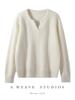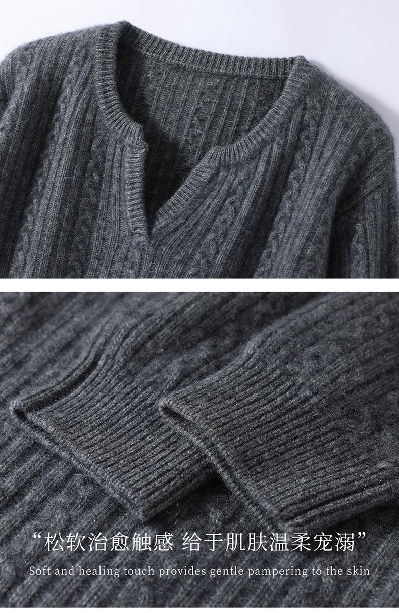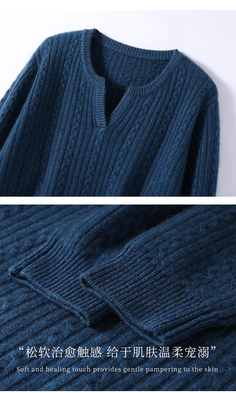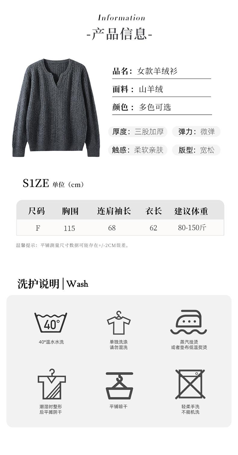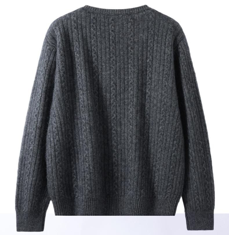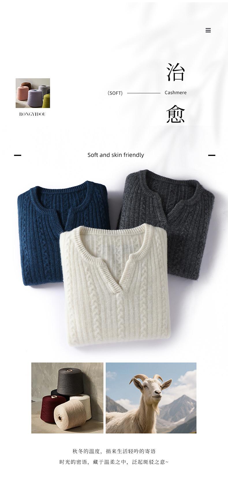 Suéter de punto de cable retro de color sólido de cachemira, capa base, cuello de punta, estilo holgado, adelgazante, grueso para mujer, ropa interior