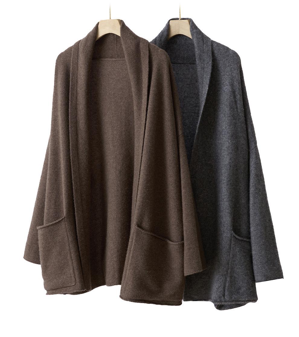 Cárdigan de Cachemira de Moda de Otoño e Invierno para Mujer Suéter Holgado Estilo Lazy Abrigo de Punto Chal Capa Top Grueso