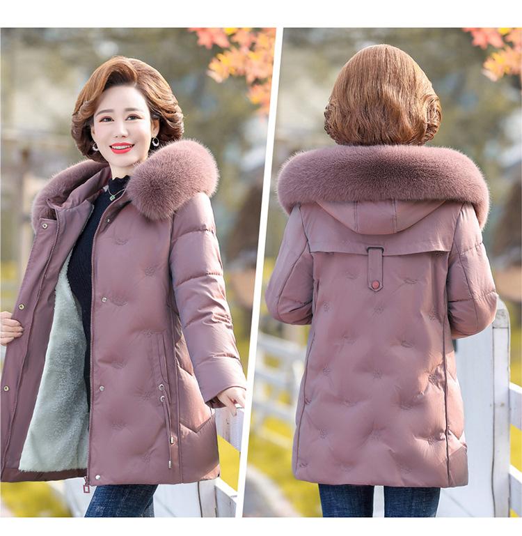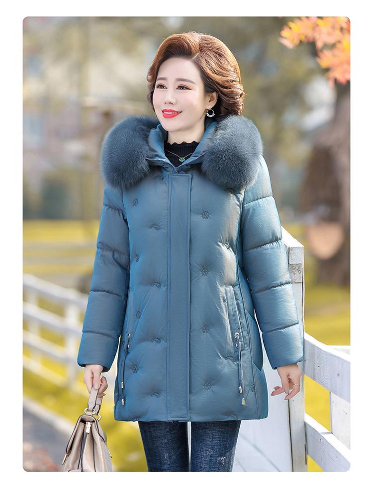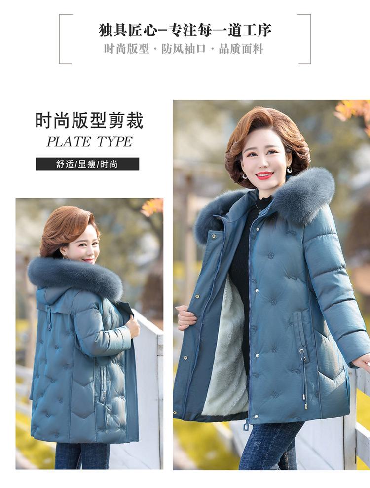 Abrigo de invierno para madre 2021, nueva chaqueta acolchada de algodón para mujeres de mediana edad y mayores, chaqueta larga acolchada de algodón para mujer, además de chaqueta acolchada de algodón con terciopelo