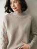 2025 Otoño/Invierno Nuevo Suéter de Cachemira para Mujer de Color Sólido Suelto Grueso Punto Cable Cuello Alto Suéter Jersey Capa Base Interior