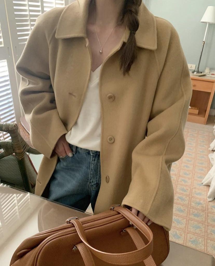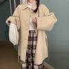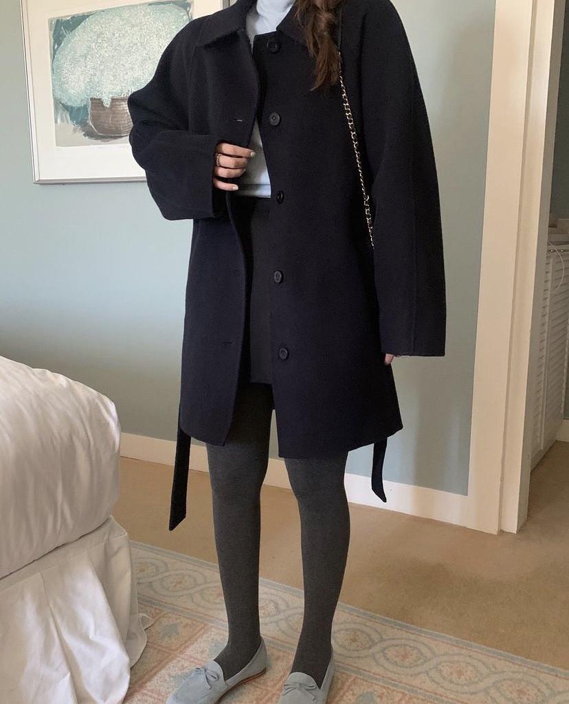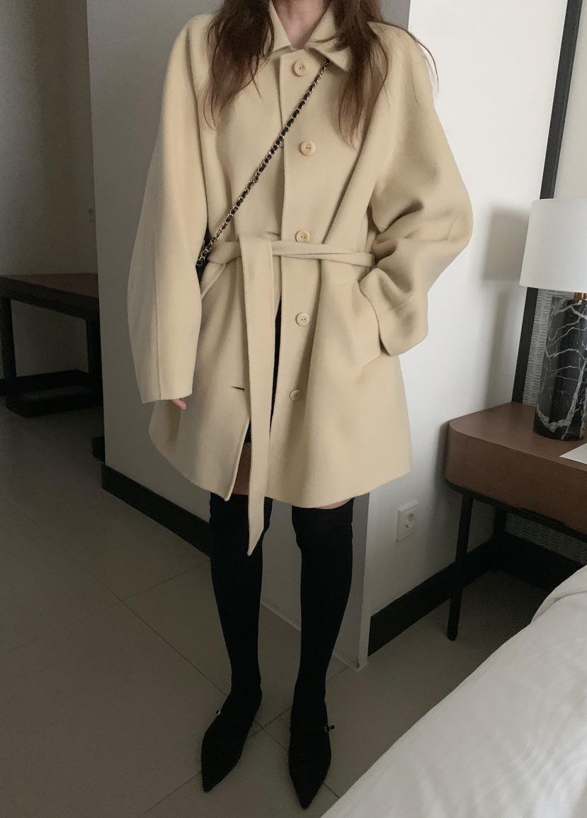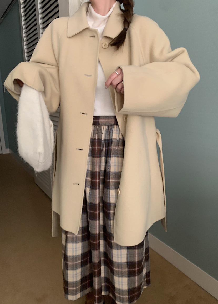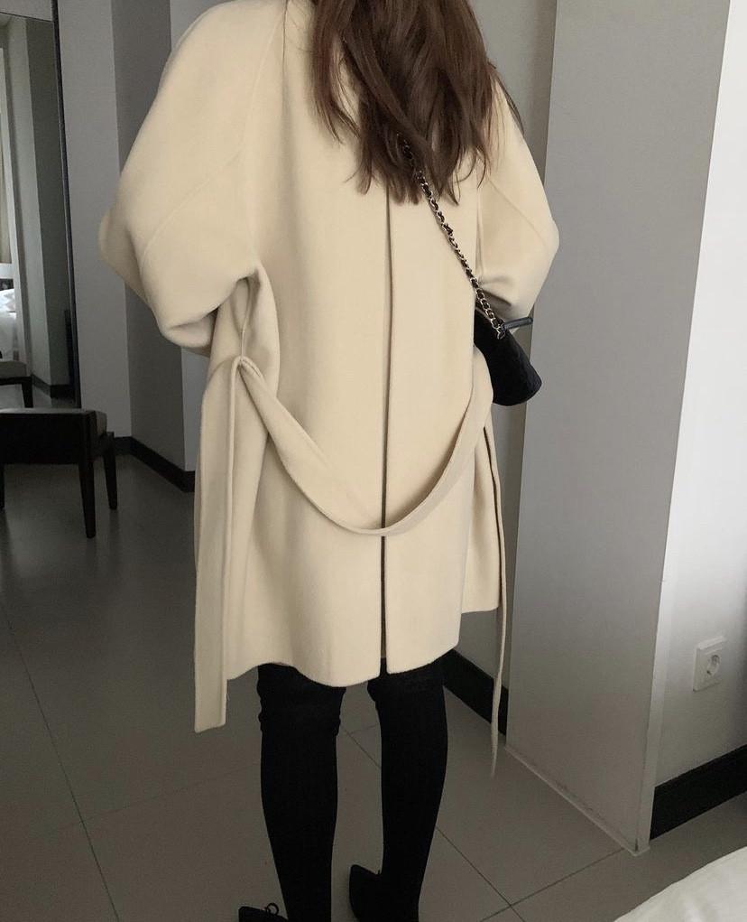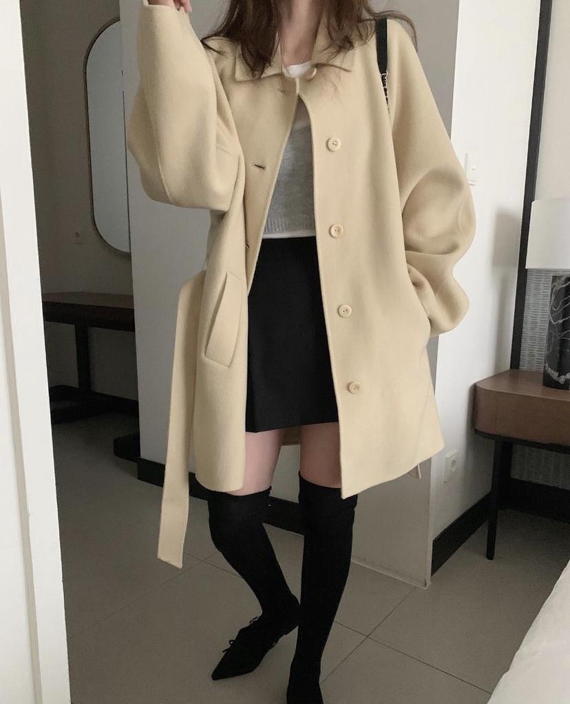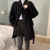 Talla actualizada Chic coreano Estilo coreano Minimalista Versátil Abrigo commuter con lazo en la cintura y solapa Mezcla de lana