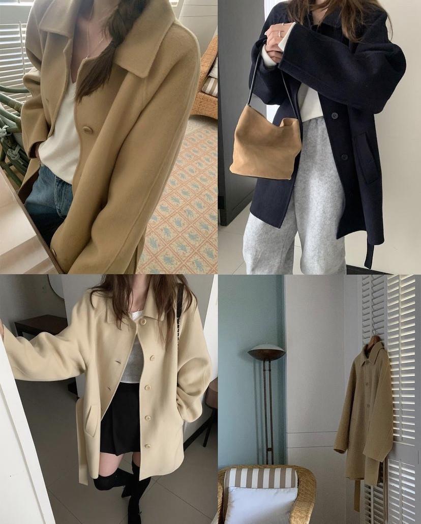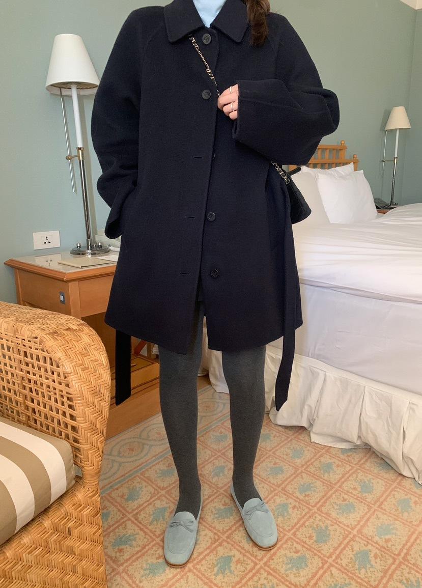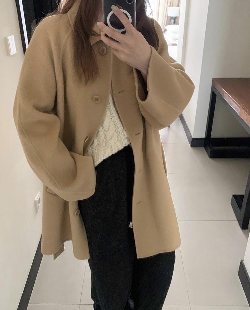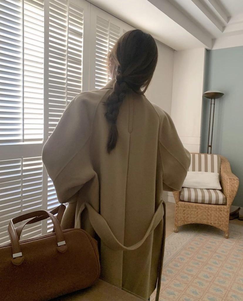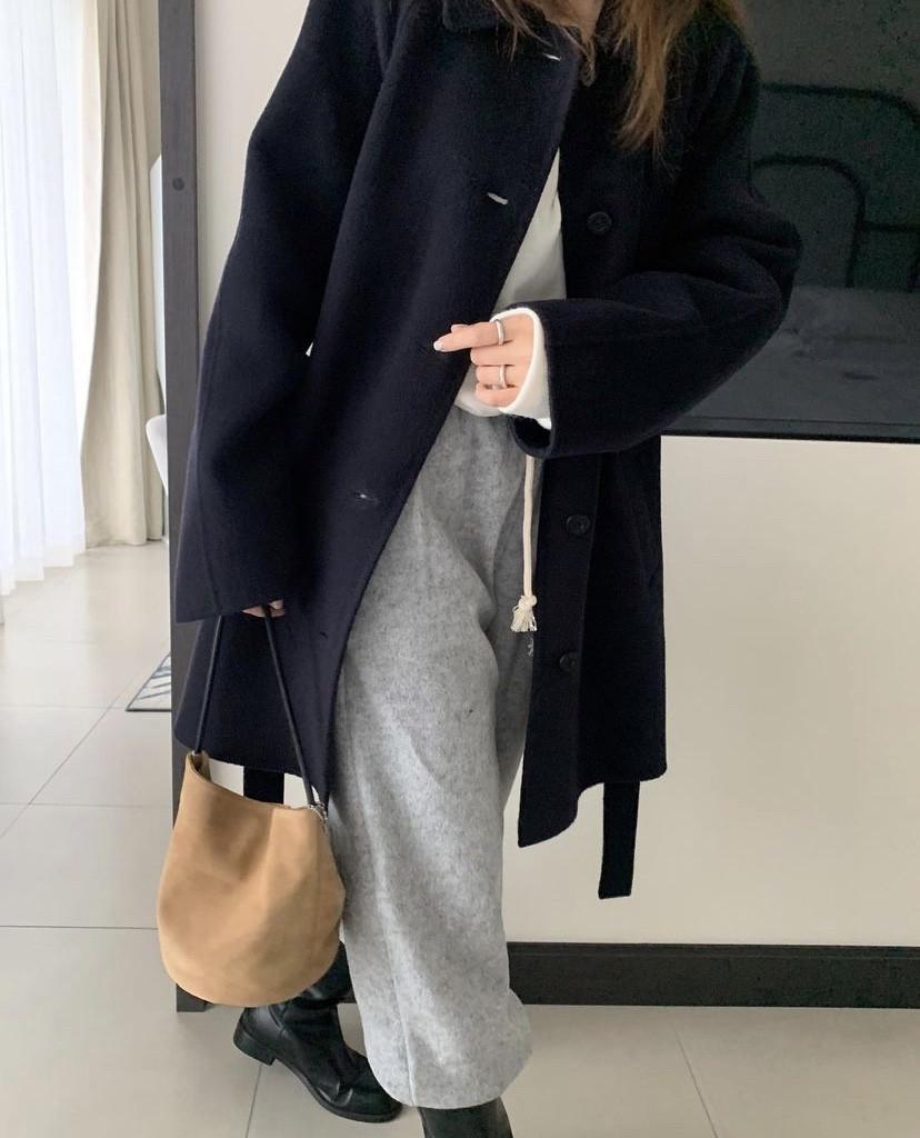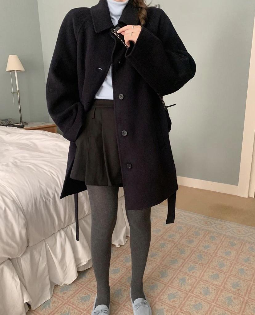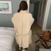 Talla actualizada Chic coreano Estilo coreano Minimalista Versátil Abrigo commuter con lazo en la cintura y solapa Mezcla de lana