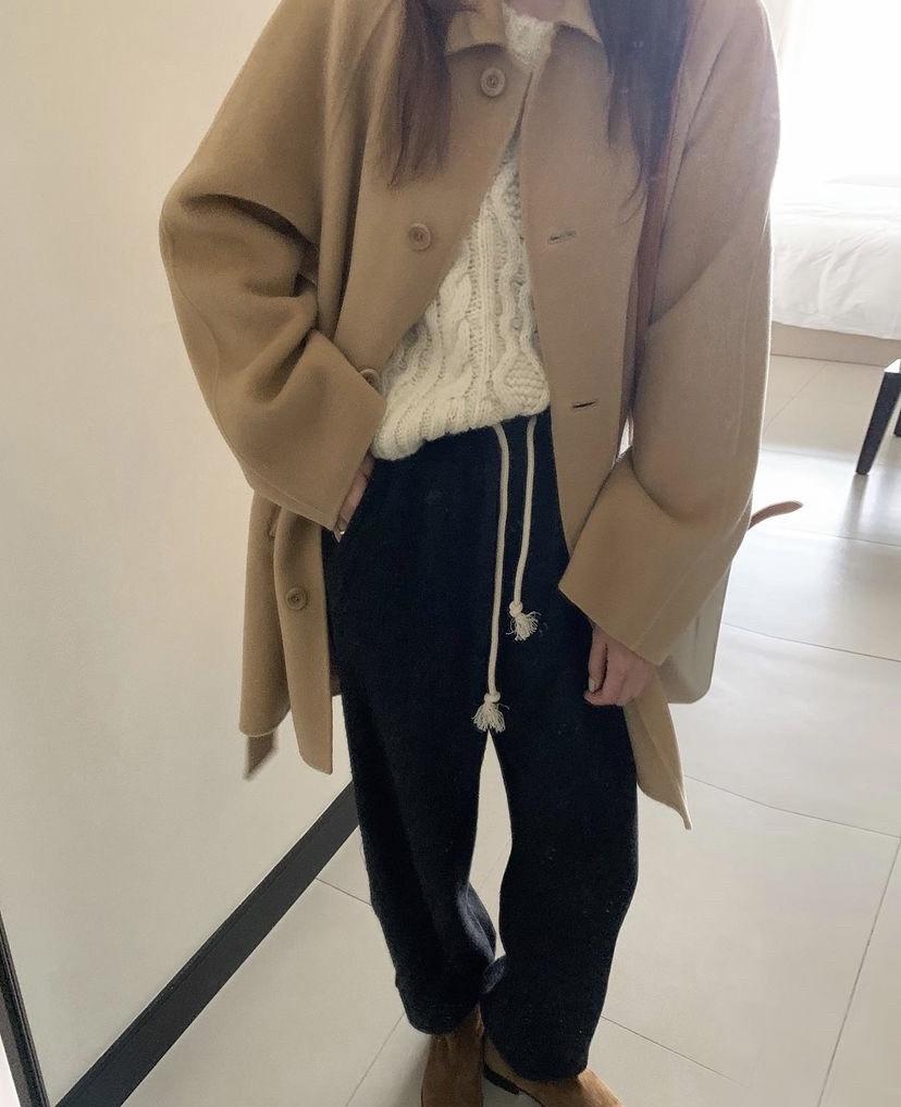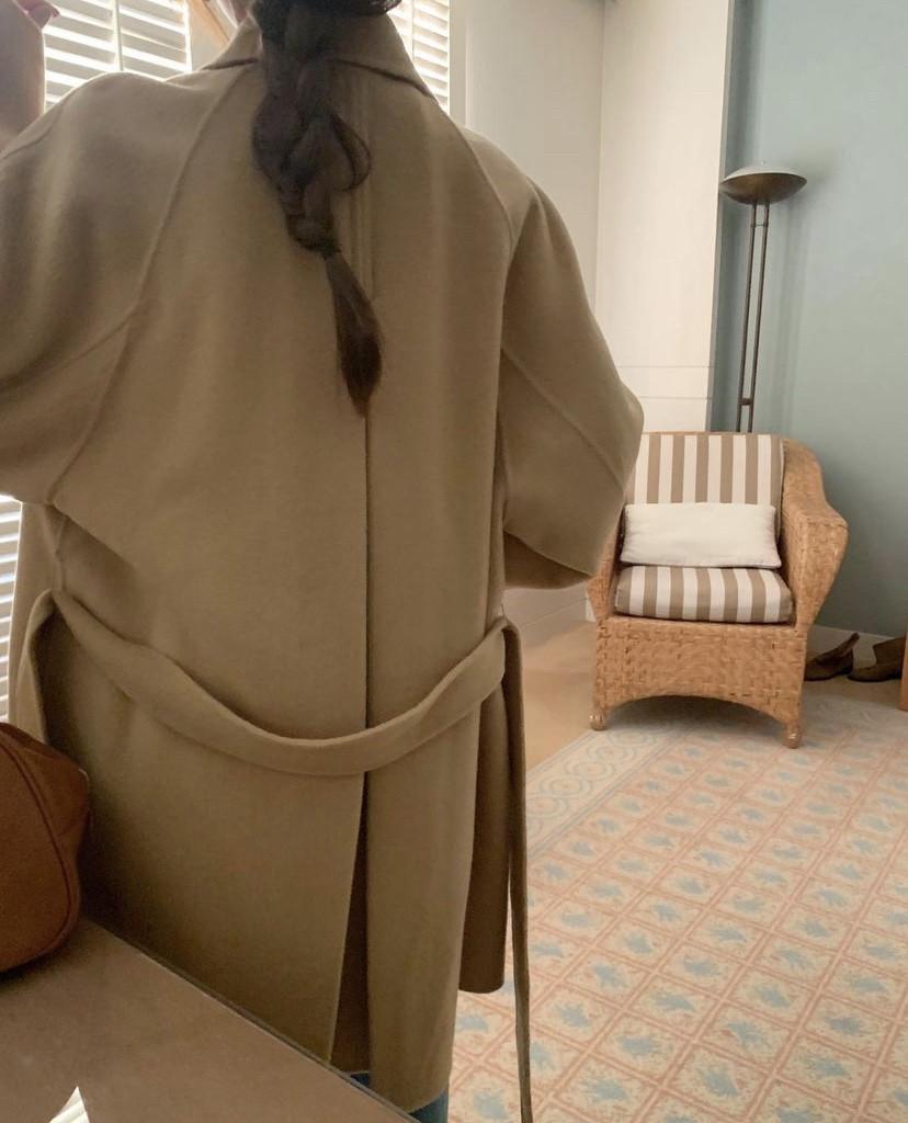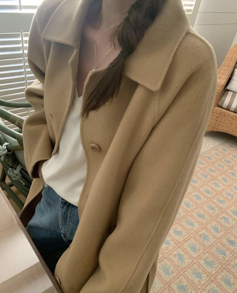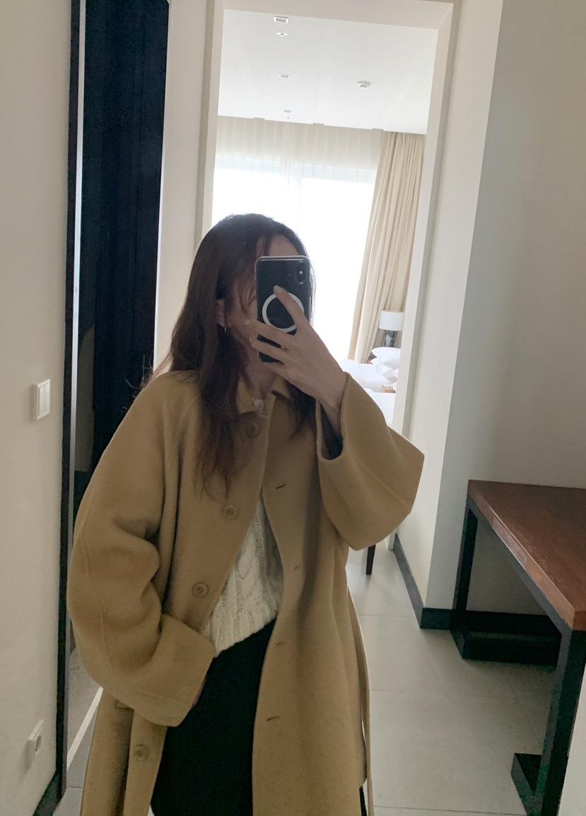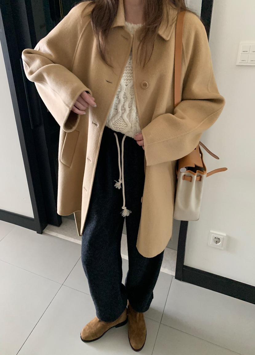 Talla actualizada Chic coreano Estilo coreano Minimalista Versátil Abrigo commuter con lazo en la cintura y solapa Mezcla de lana