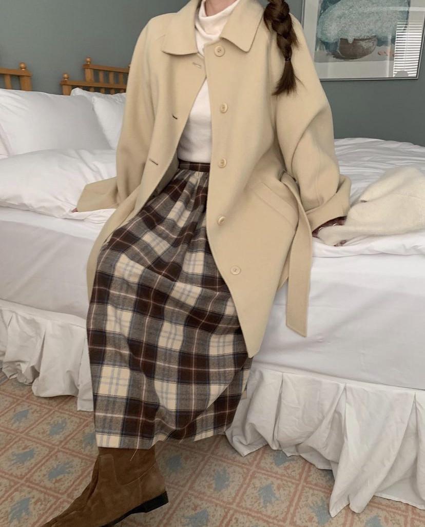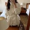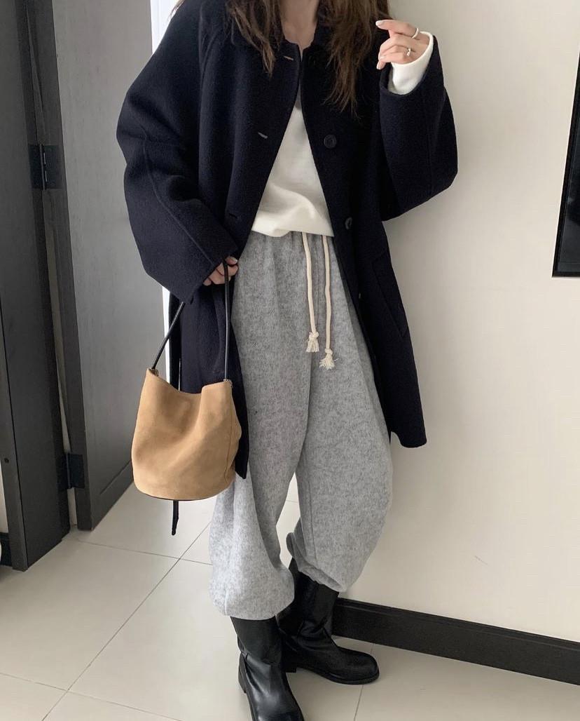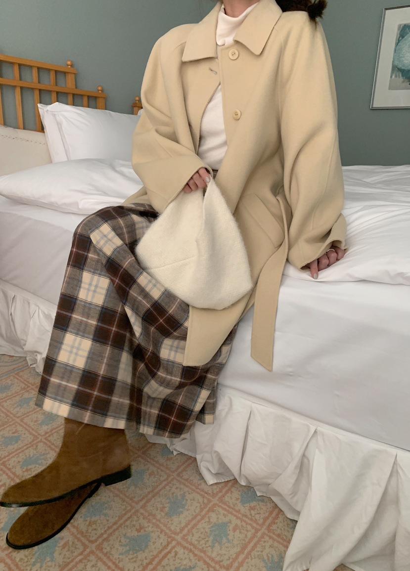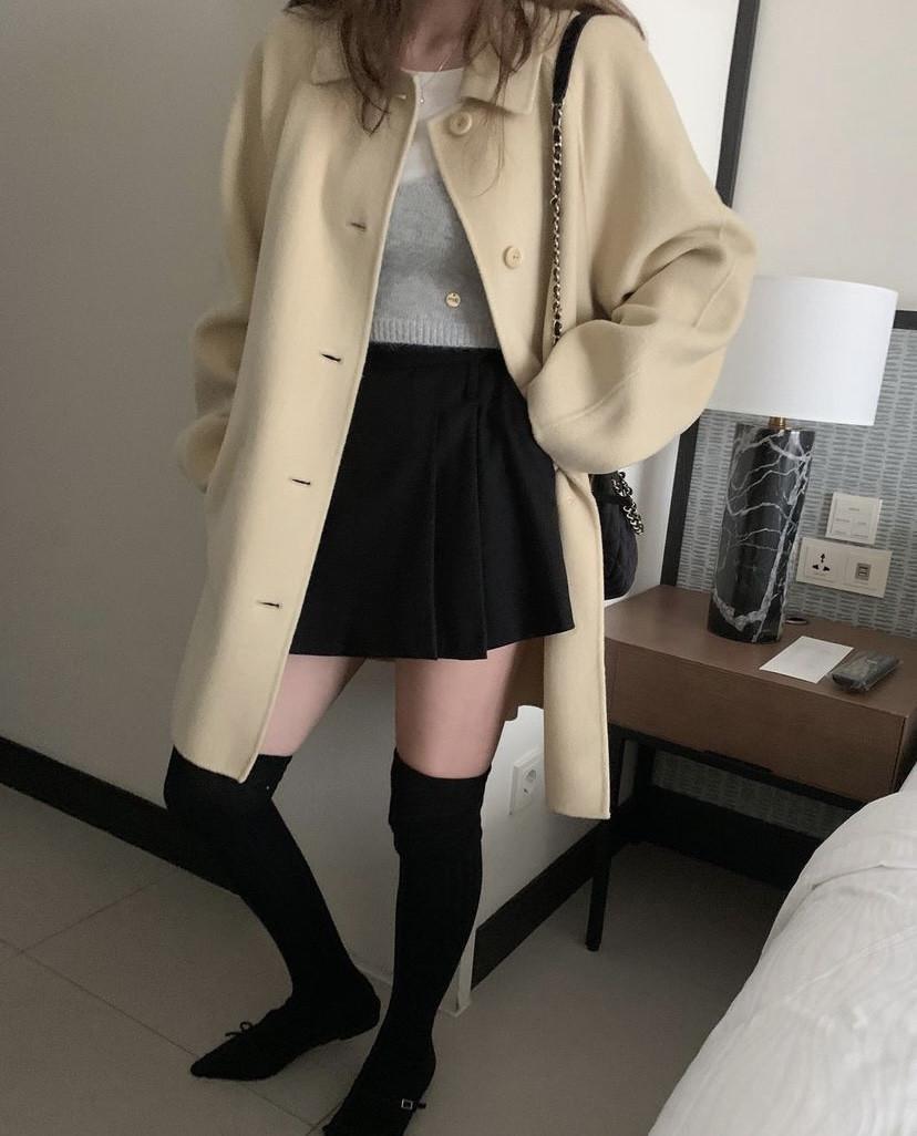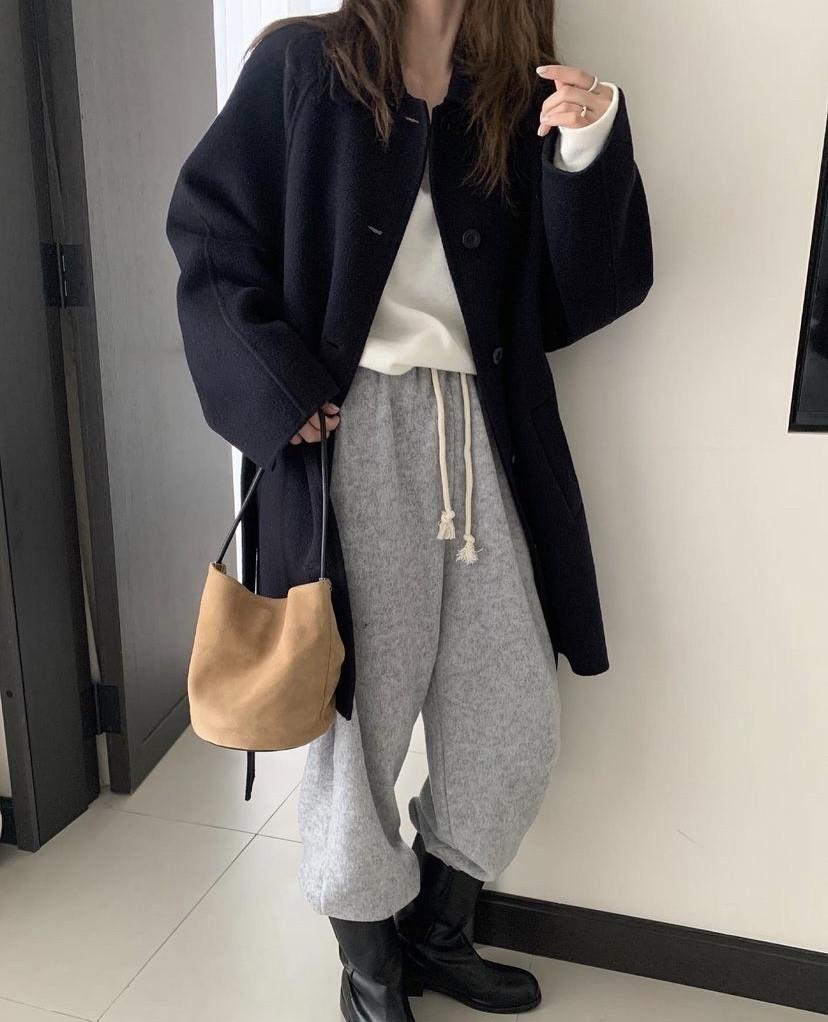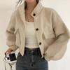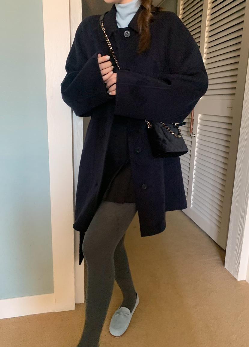 Talla actualizada Chic coreano Estilo coreano Minimalista Versátil Abrigo commuter con lazo en la cintura y solapa Mezcla de lana